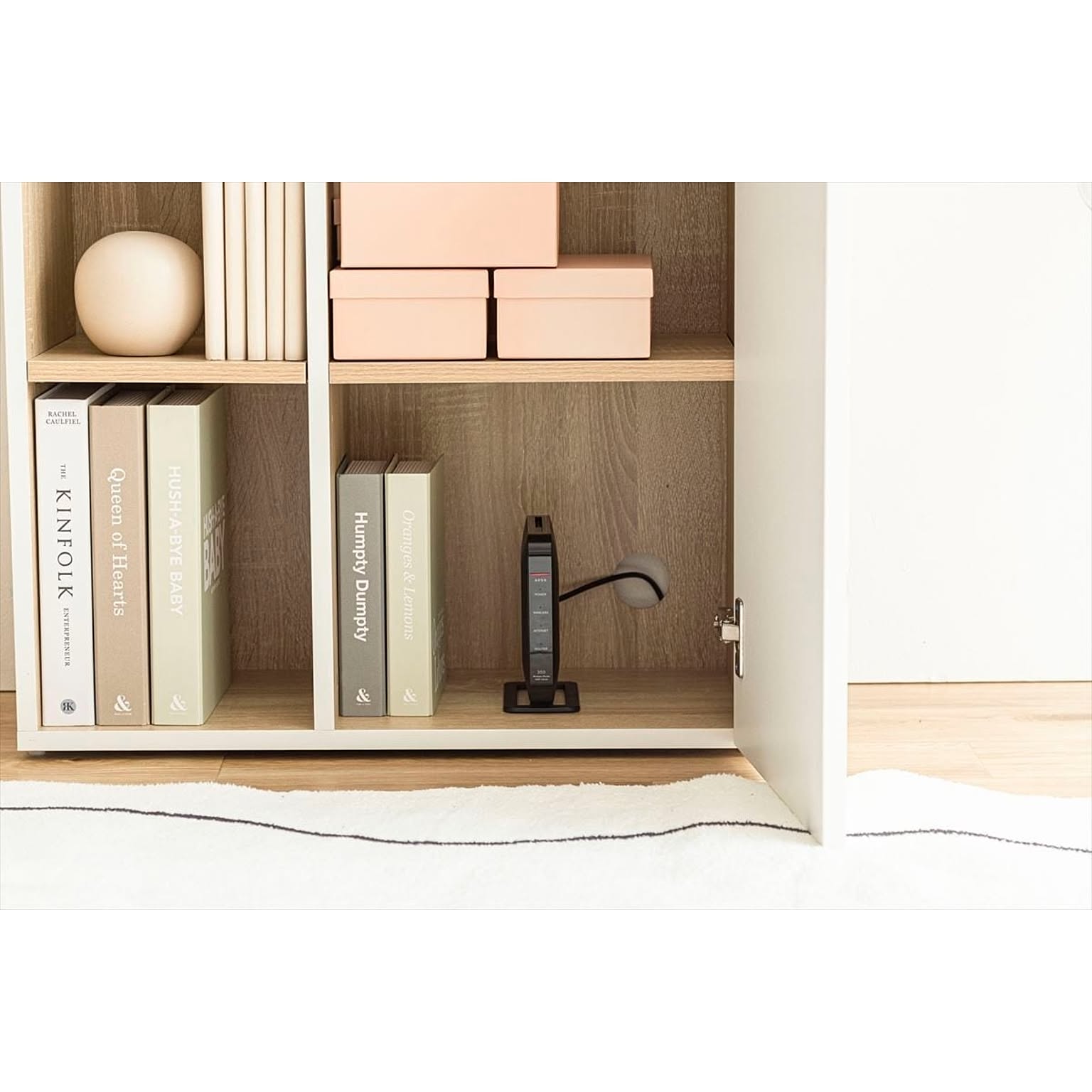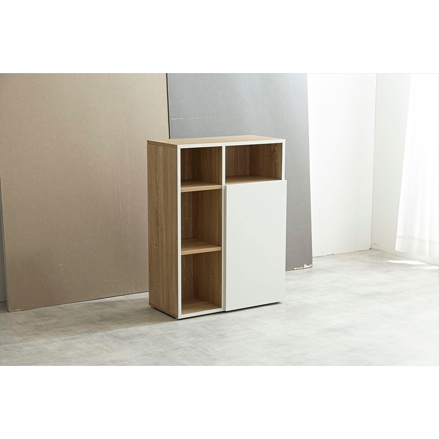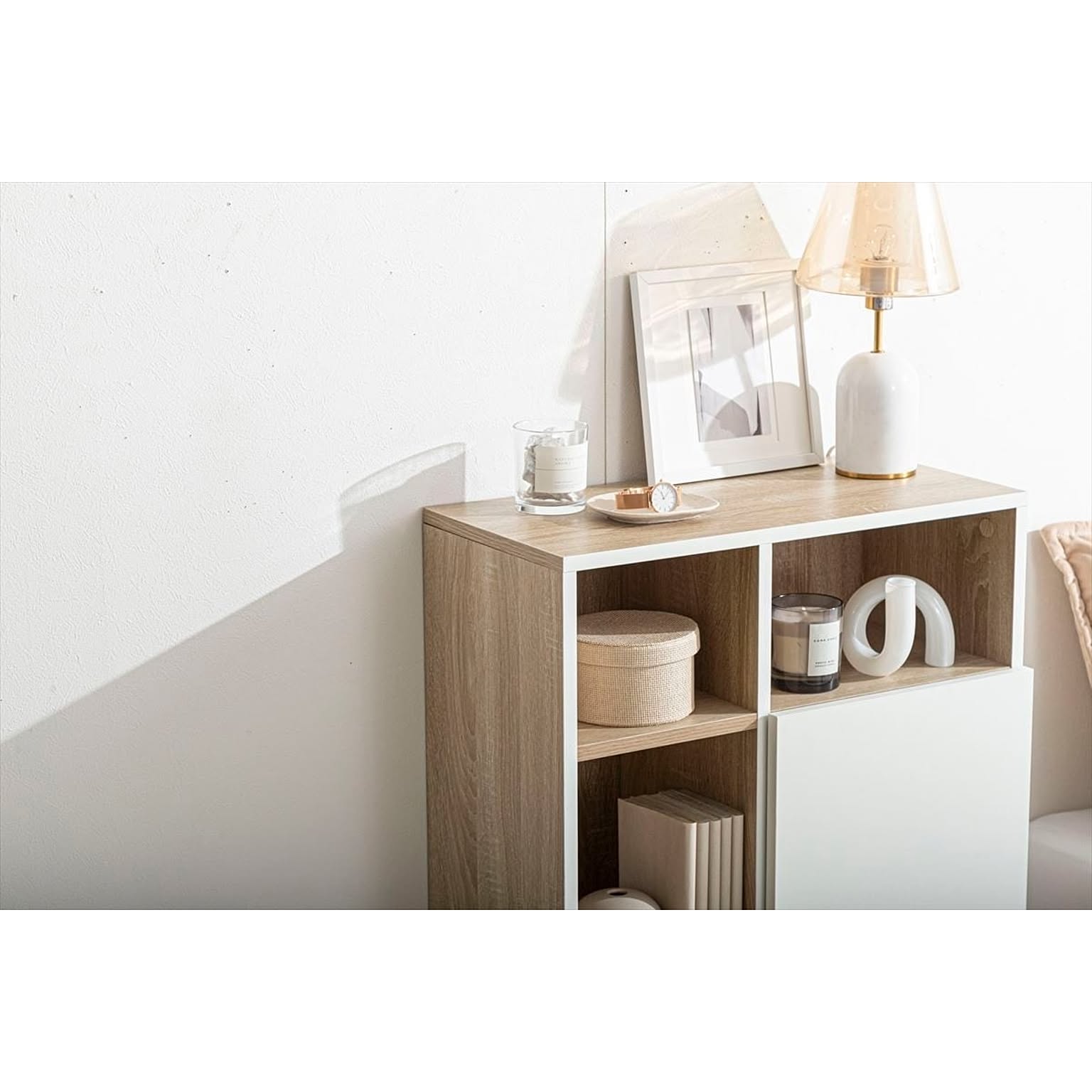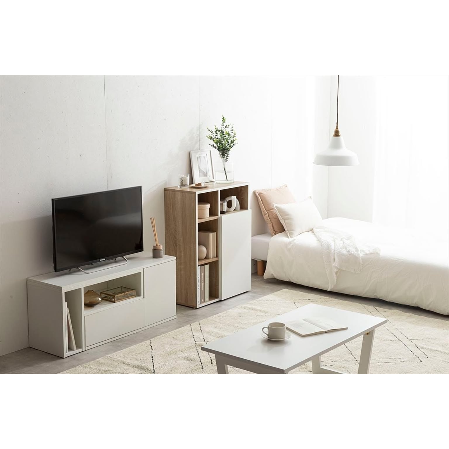 バイカラーとノイズレスデザインが印象的なキャビネット。置くだけで感度の高い、すっきりした空間を演出します。また、オープン収納と扉収納の両方を兼ね揃えているので、見せる収納と隠す収納の両方が1台で実現。サイズはコンパクトで置きやすく、ワンルームや一人暮らしの方にもおすすめです。