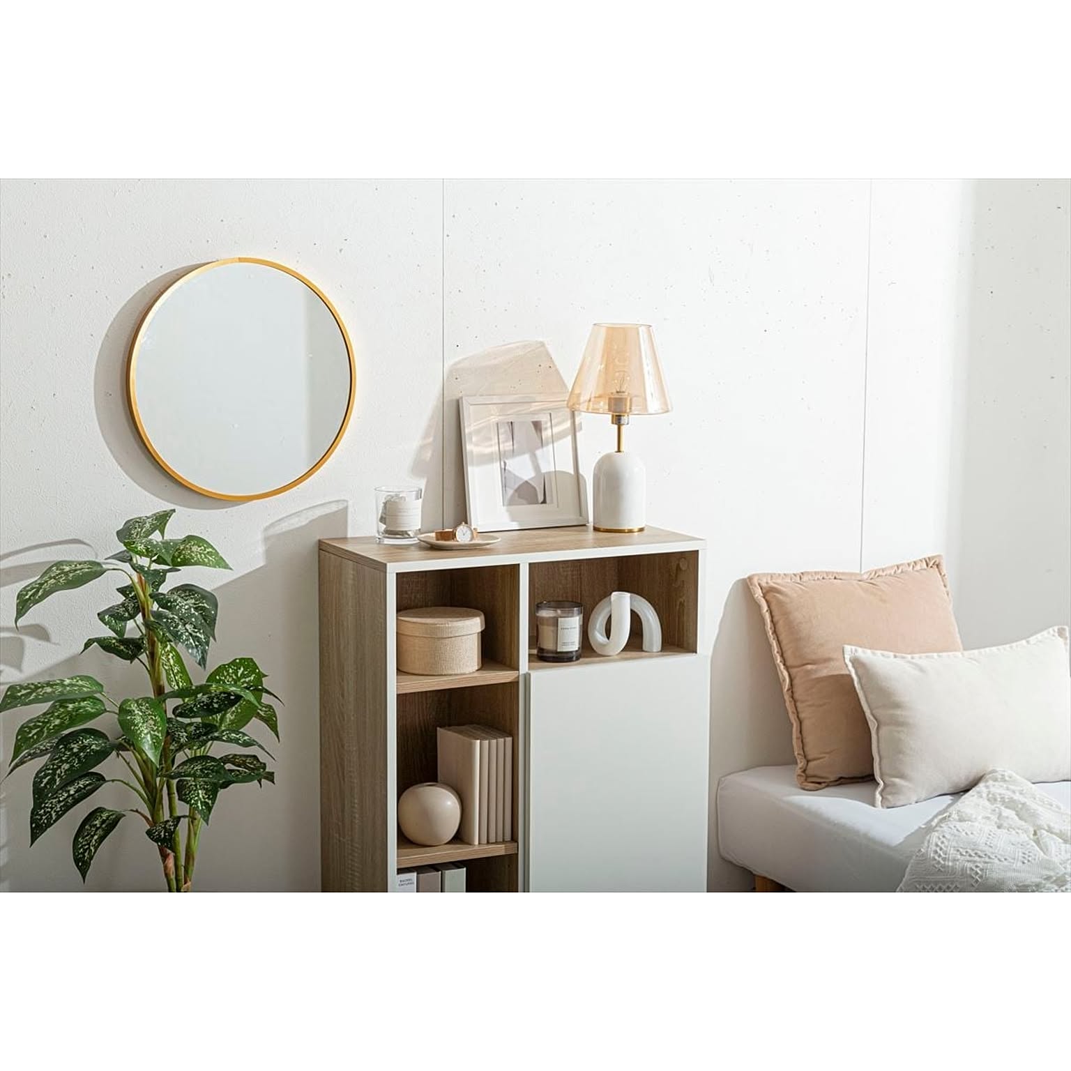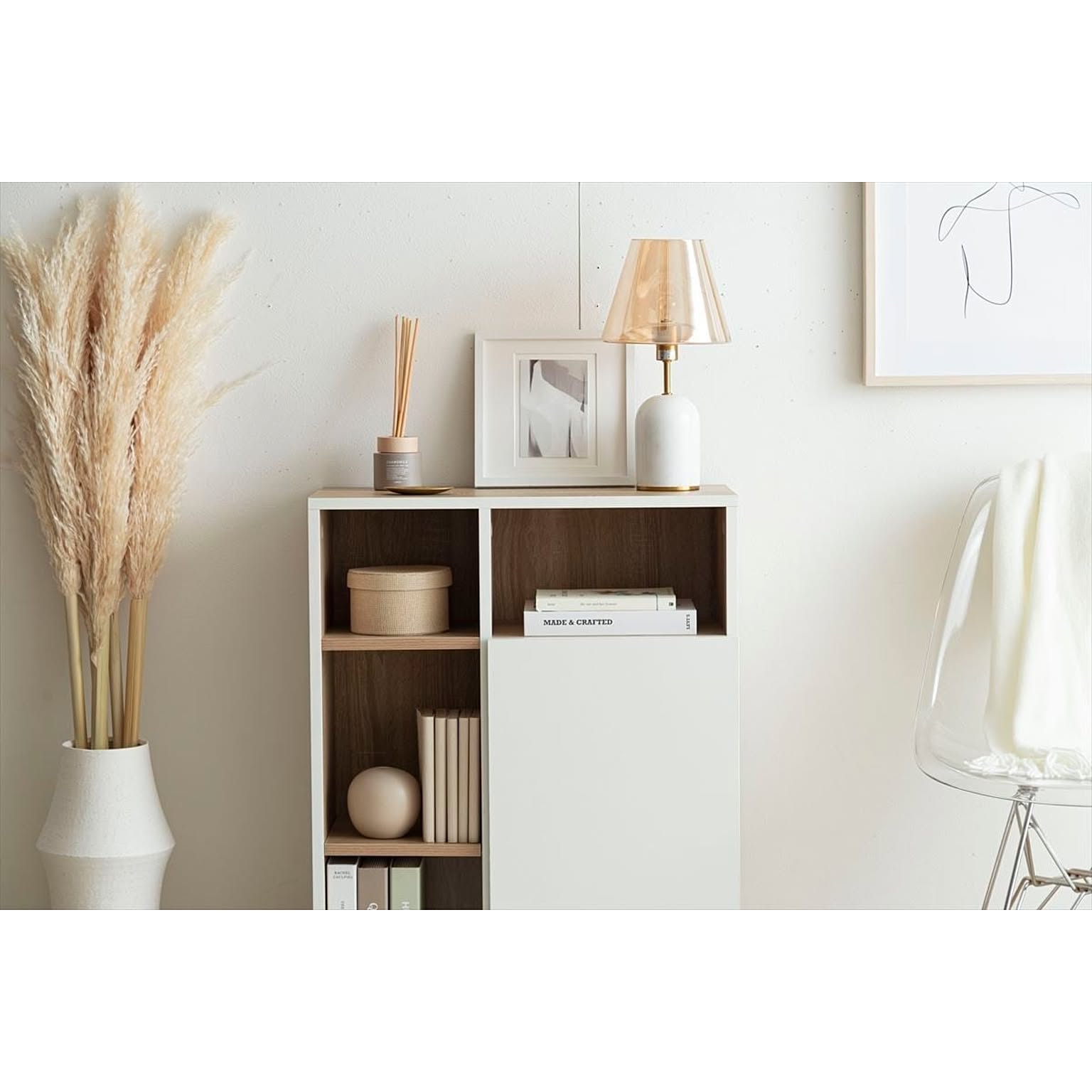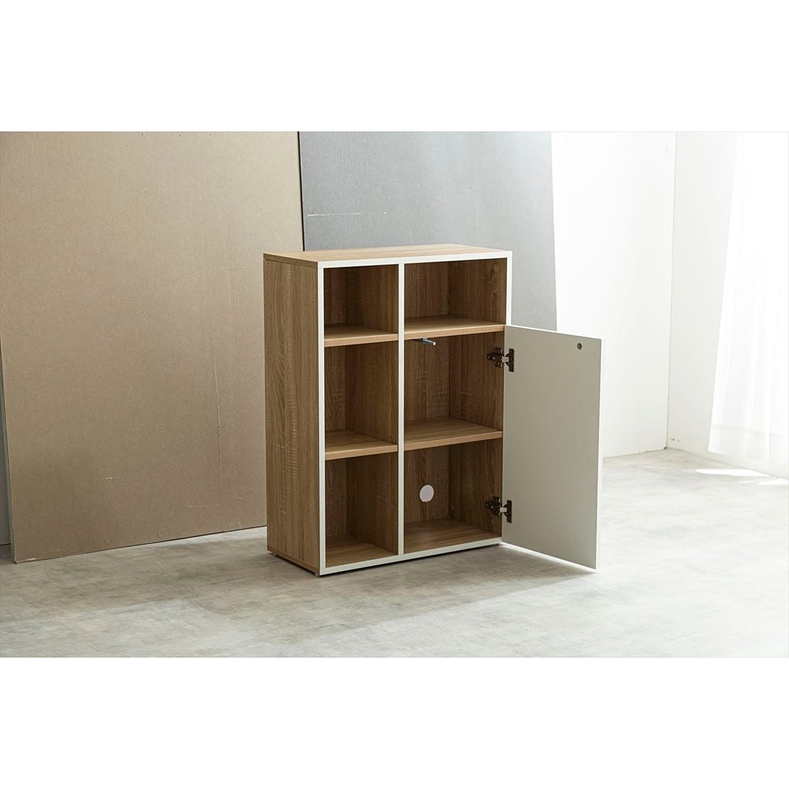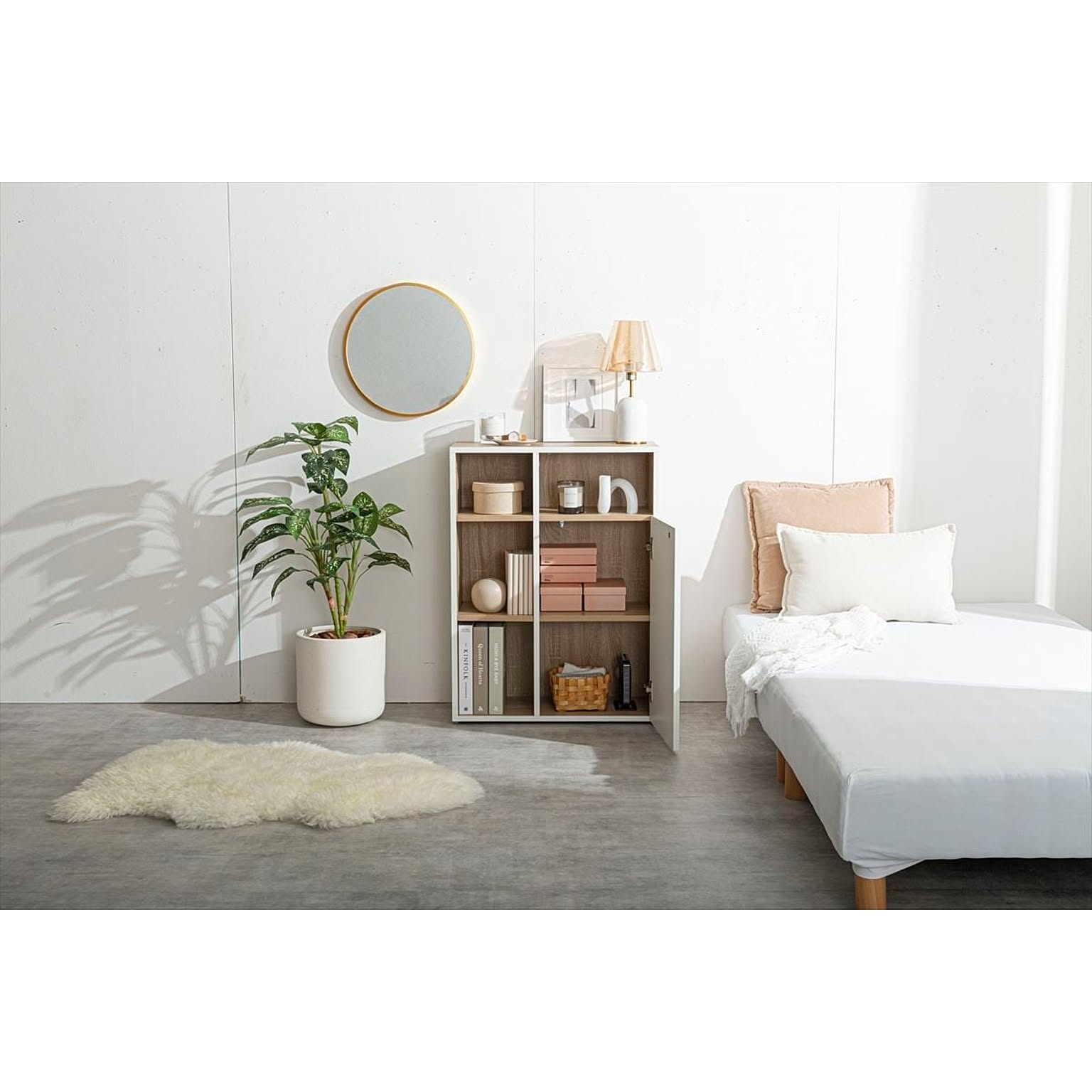 バイカラーとノイズレスデザインが印象的なキャビネット。置くだけで感度の高い、すっきりした空間を演出します。また、オープン収納と扉収納の両方を兼ね揃えているので、見せる収納と隠す収納の両方が1台で実現。サイズはコンパクトで置きやすく、ワンルームや一人暮らしの方にもおすすめです。