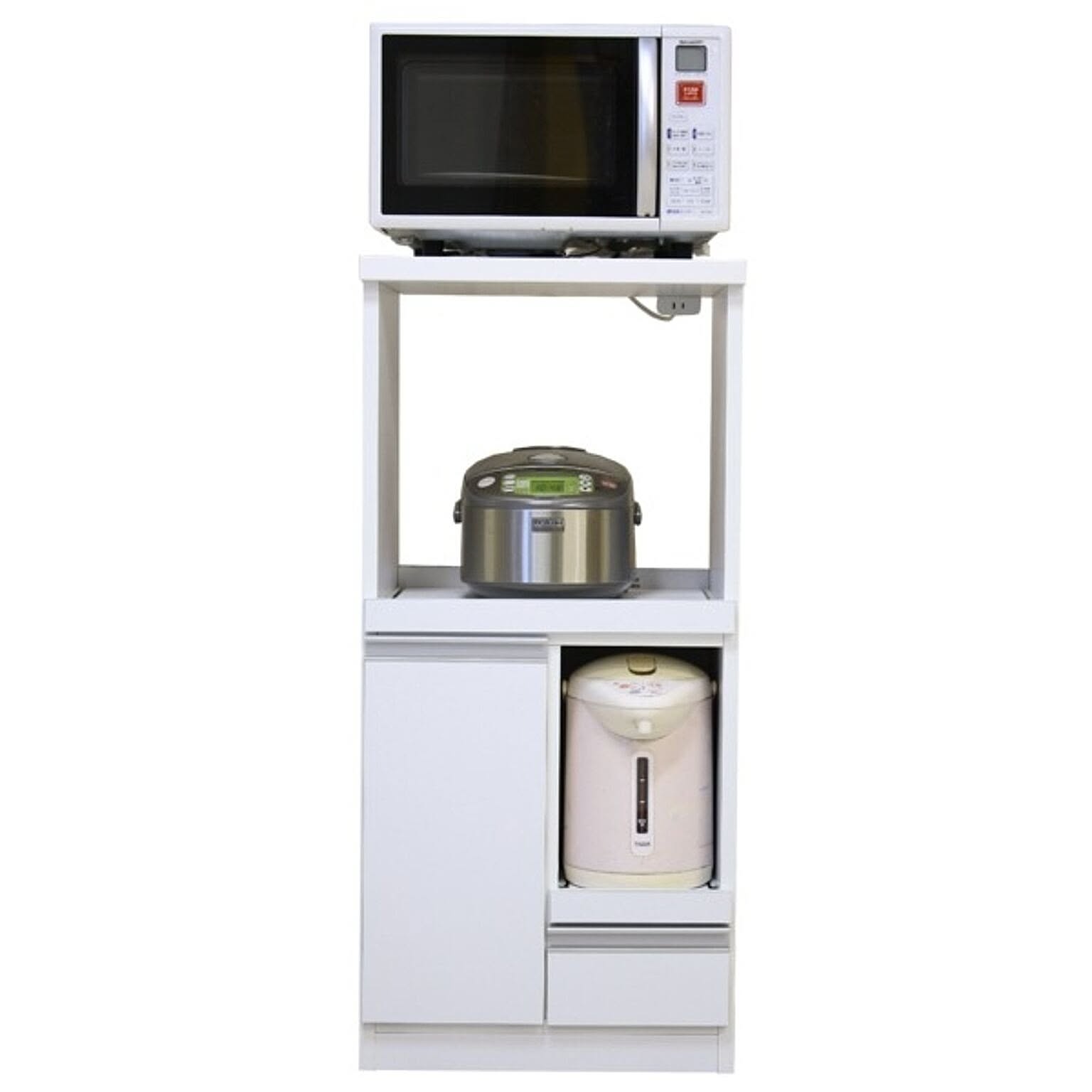 レンジ台 幅48cm スライドカウンター 1口コンセント 可動棚付き 木目柄 日本製 コンパクト キッチン収納 完成品【代引不可】