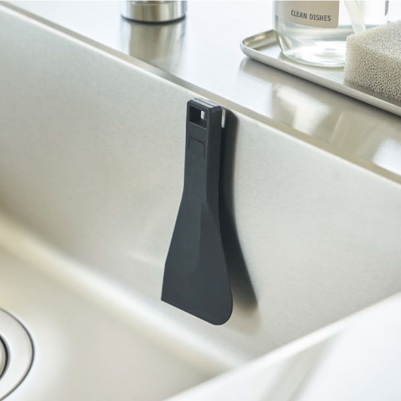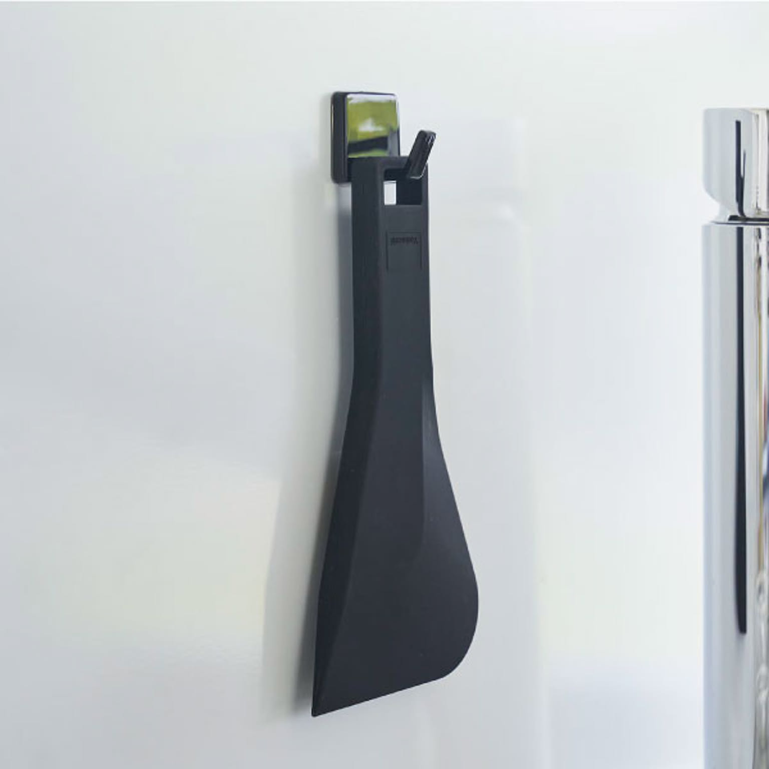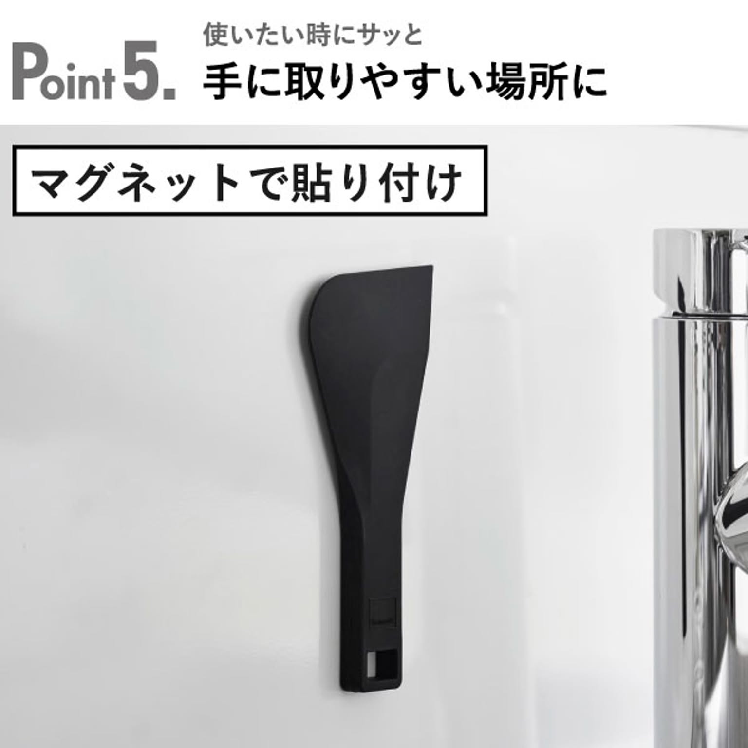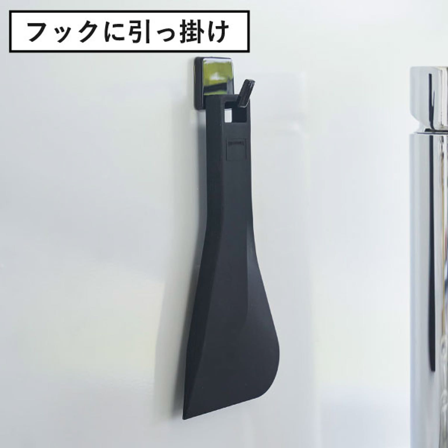 ヘラの収納方法は、マグネットで貼り付ける方法とフックに引っ掛ける方法があり、