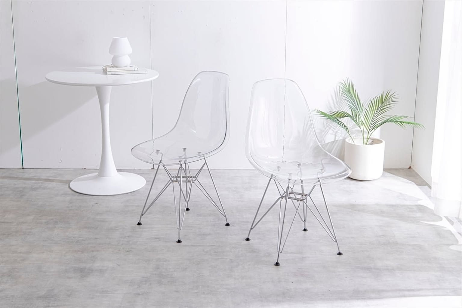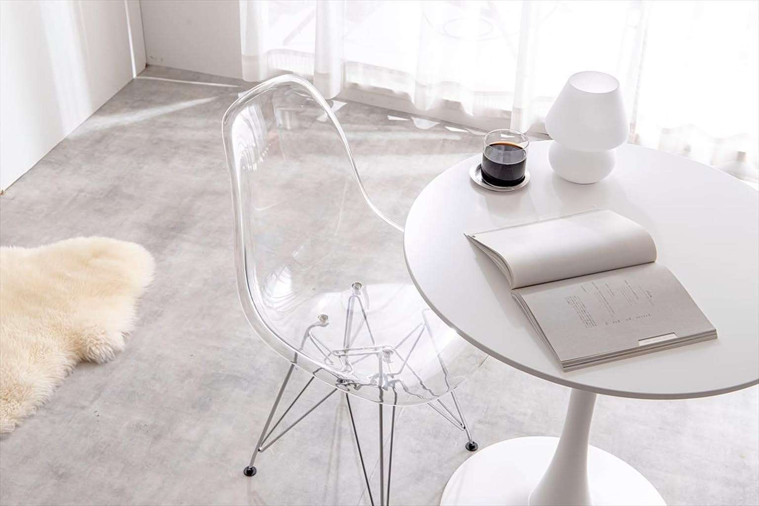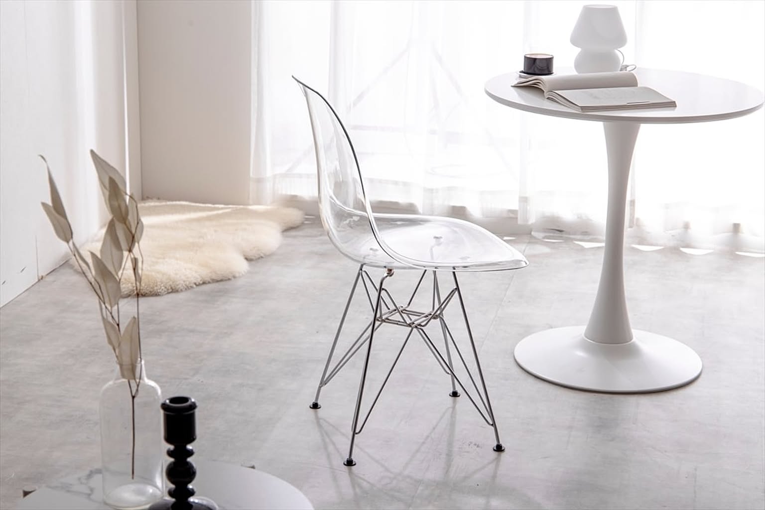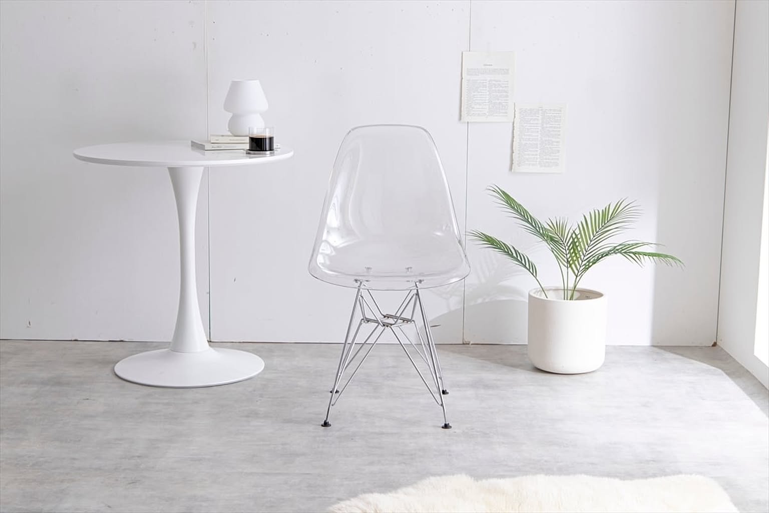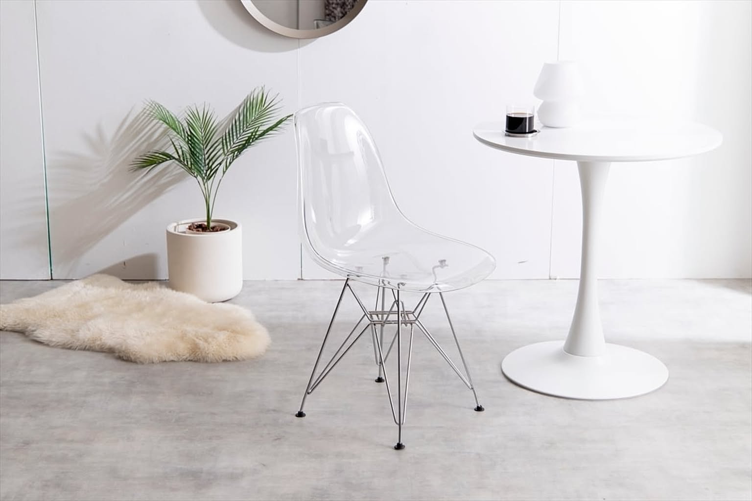 透明度が高く美しい座面と線の細い脚部の組み合わせが印象的な、イームズサイドシェルチェア。透明感あふれるデザインがお部屋に抜け感を生 み、開放的な印象に。身体に沿ってカーブを描く立体的な座面と背もたれは、身体にフィットし座り心地も抜群です。