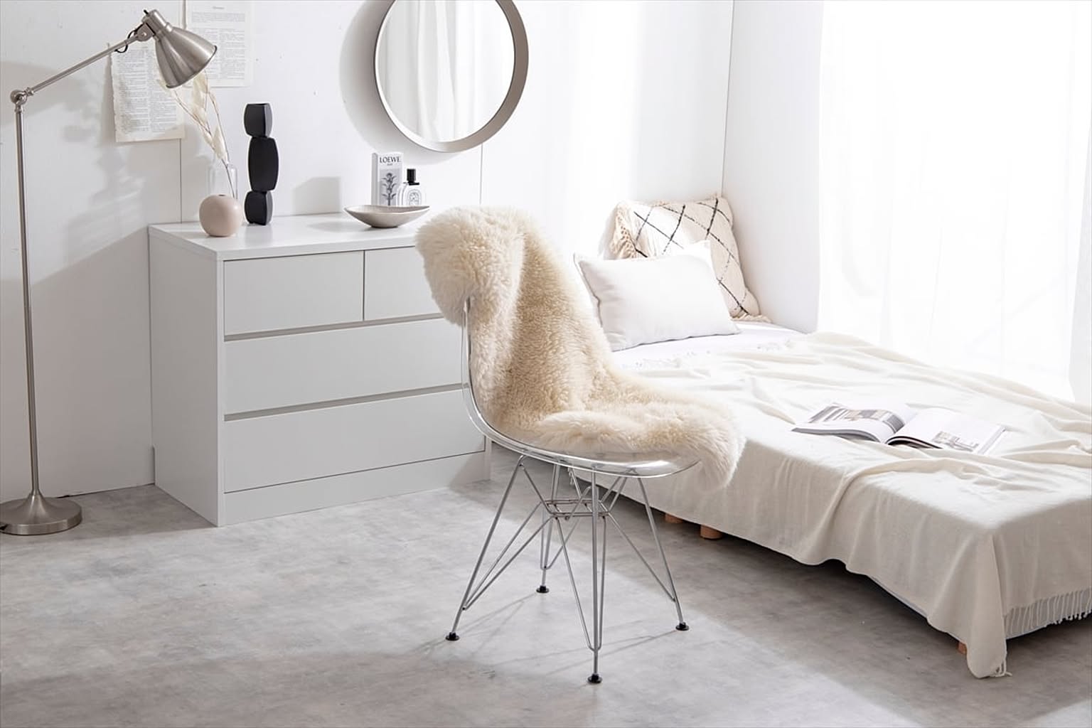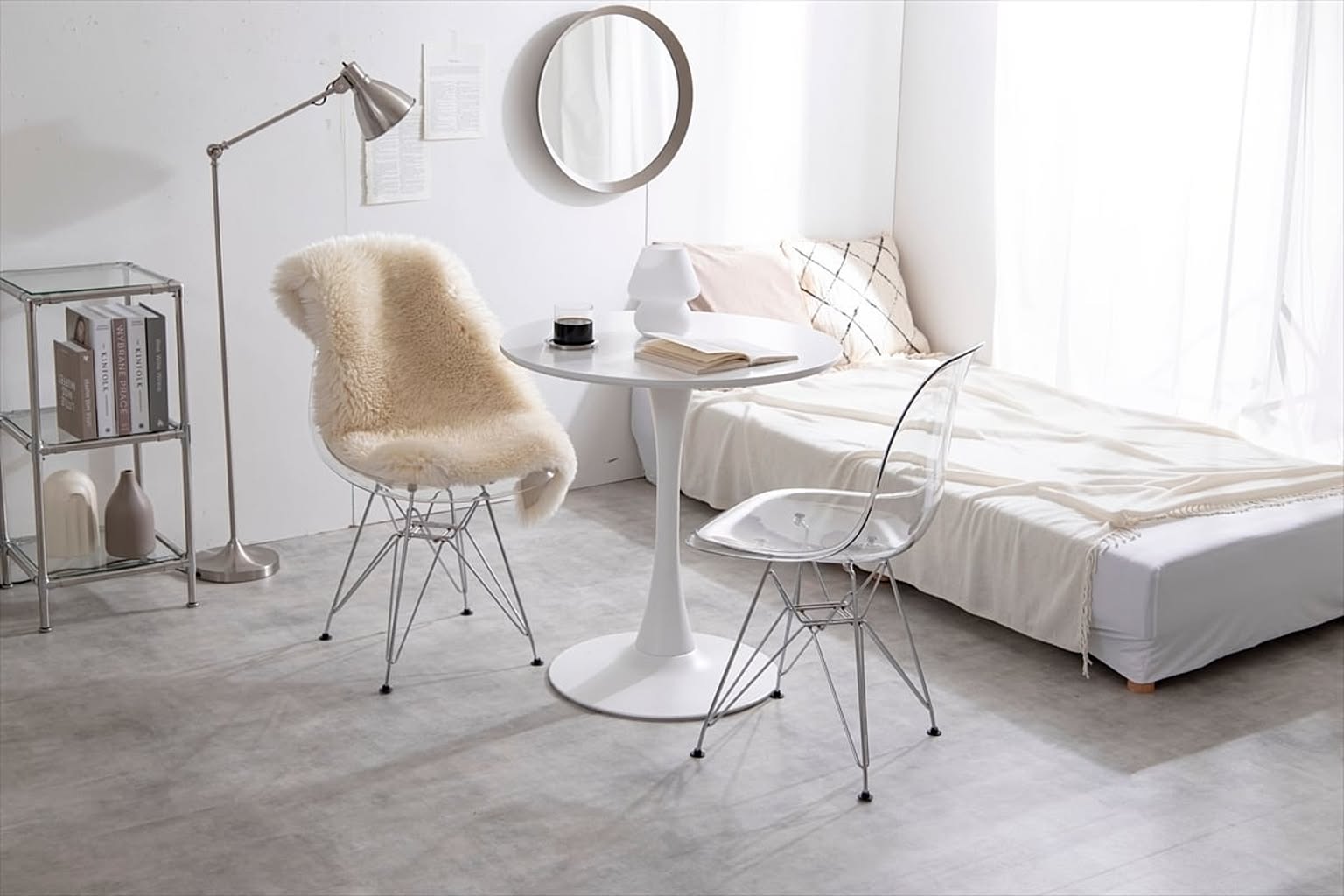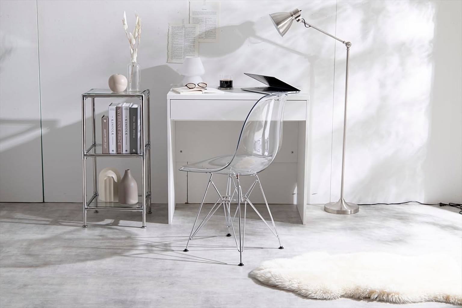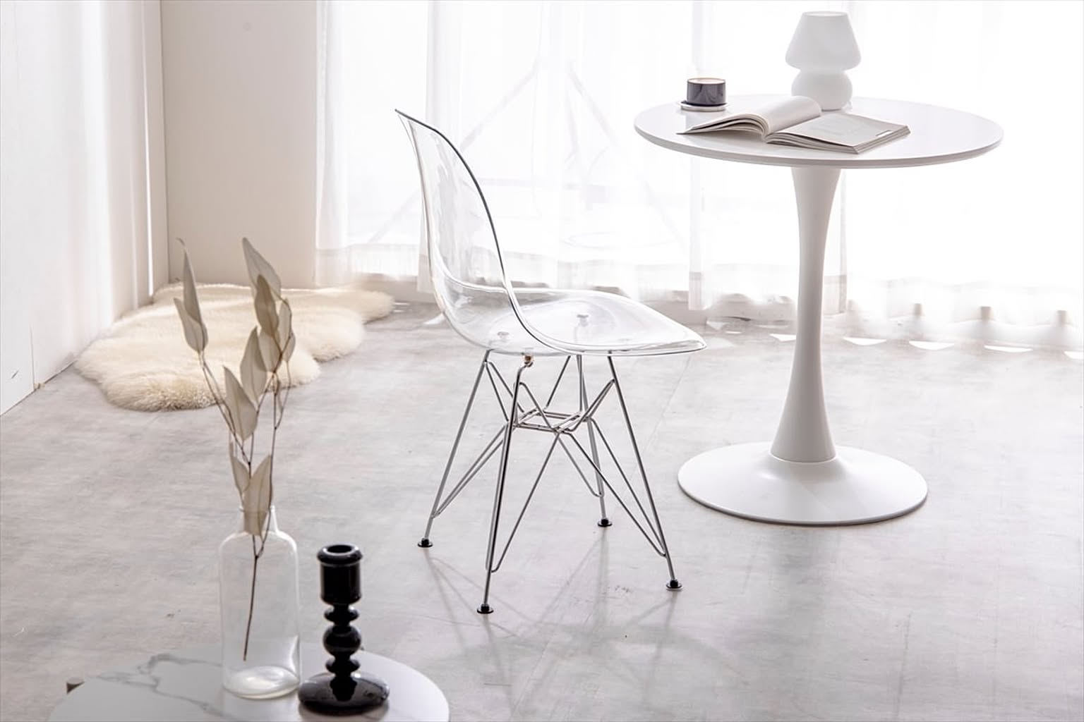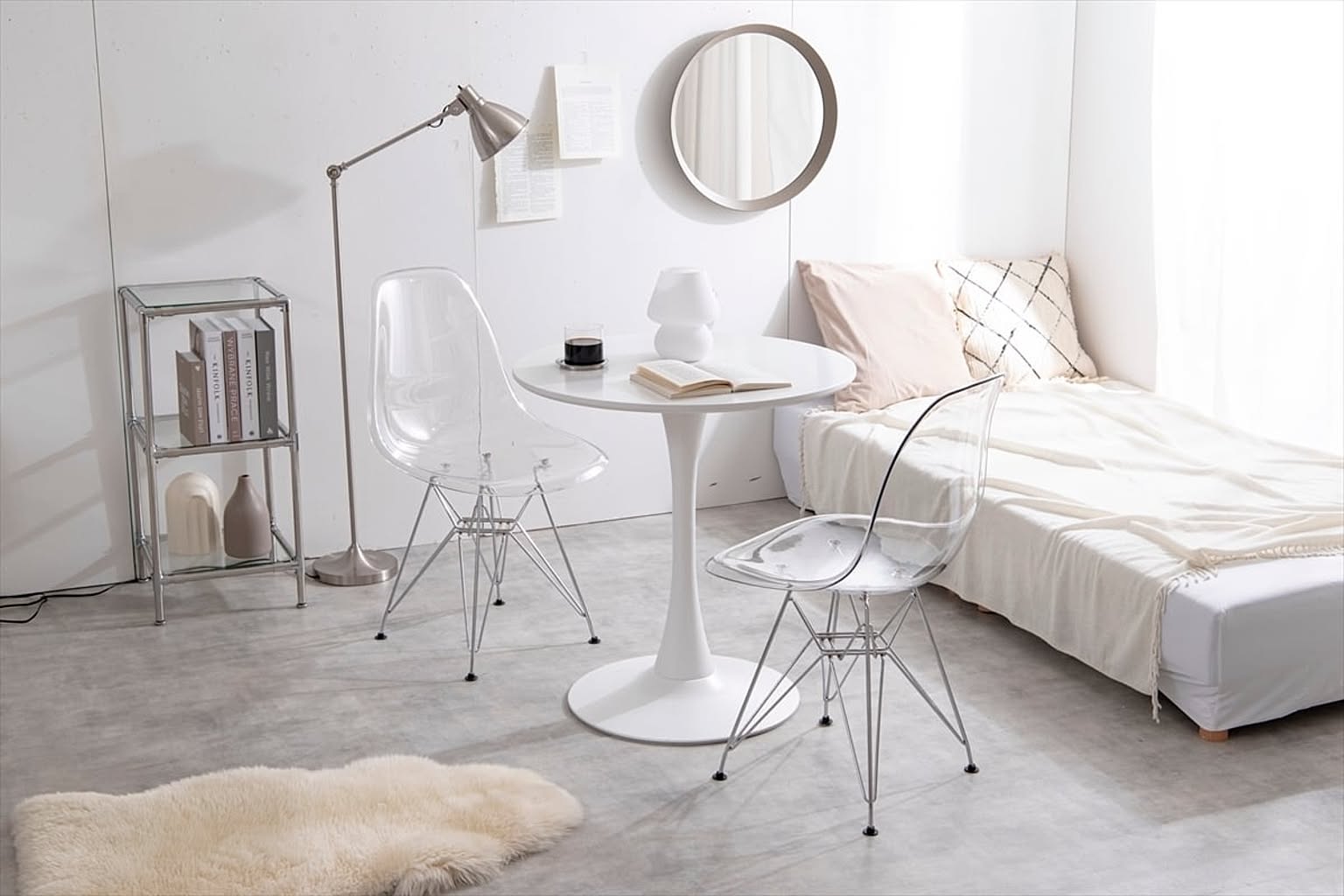 透明度が高く美しい座面と線の細い脚部の組み合わせが印象的な、イームズサイドシェルチェア。透明感あふれるデザインがお部屋に抜け感を生 み、開放的な印象に。身体に沿ってカーブを描く立体的な座面と背もたれは、身体にフィットし座り心地も抜群です。