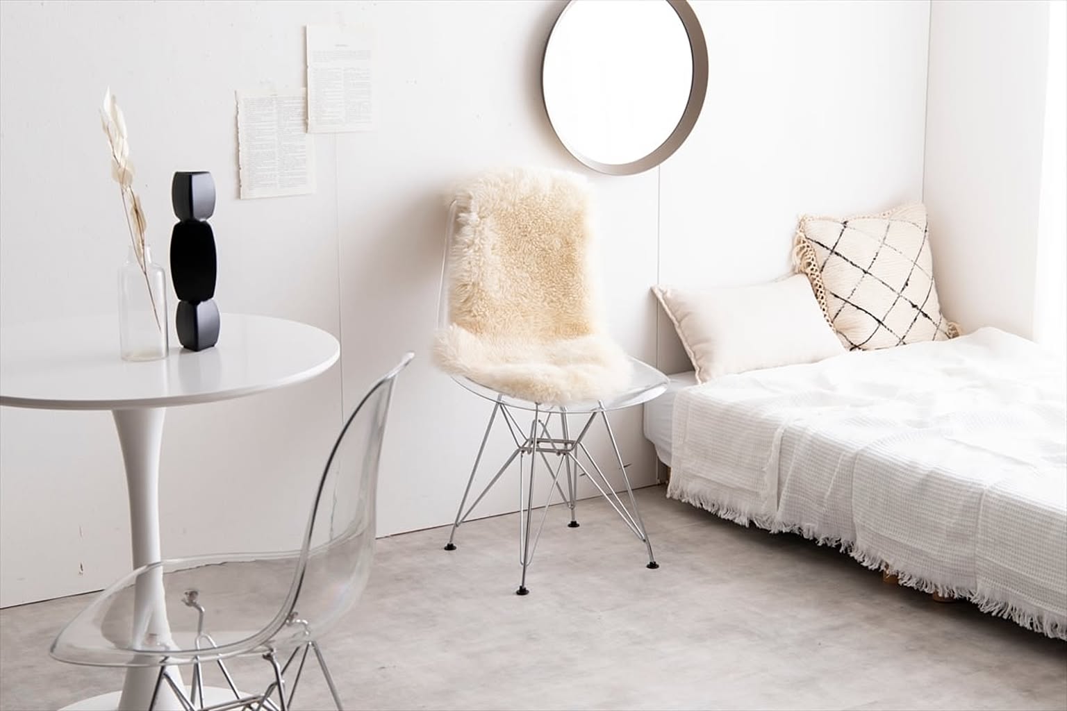 透明感あふれるガラスのような一体型の座面は、お部屋を洗練されたクリ アな印象に。また、光の反射で見え方が変わるので、様々な表情を楽しむことが出来ます。
