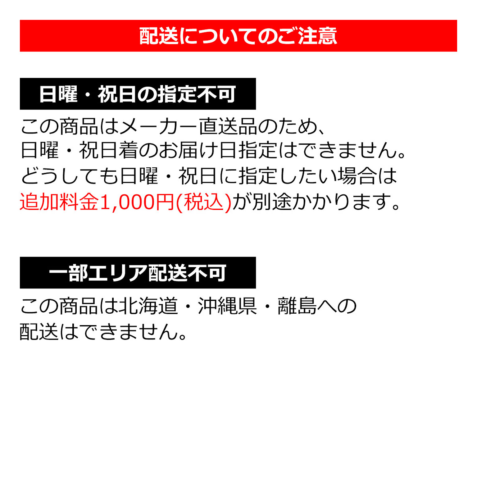 ■年末年始休業のお知らせ 平素はご愛顧賜り、ありがとうございます。 誠に勝手ながら下記の期間を年末年始休業とさせていただきます。 2025年12月27日(土)~2026年1月4日(日) ご注文は通常通り受けつけておりますが、お問い合わせへの対応、出荷業務などは 1月5日(月)より順次対応させていただきます。 大変、ご迷惑をおかけいたしますが、何卒ご了承いただきますようお願い致します。 【 商品の発送につきまして 】 平日11:00までにご注文いただいた場合は、翌~2営業日の出荷、 平日11:00以降の場合は2~3営業日の出荷です。 メーカー直送品については、ご注文から約10営業日の出荷です。 ※到着日は地域ごとに異なります。 ※運送会社の状況による遅れる場合ございます。予めご了承ください。 【 ご購入確定後の内容変更・キャンセルについて 】 ご注文確定後の変更・キャンセルについては原則、承りできません。 内容にお間違いないか再度ご確認いただき、ご注文確定をお願いいたします。 【 出荷後のキャンセル・再発送について 】 出荷後のキャンセルにつきましては承りできません。 お受け取り拒否・宛所不明・長期ご不在などで不着返送の場合もご負担分のご請求がございますので、 ご注文の際にご登録内容にお間違いないか、再度ご確認いただき、ご注文をお願いいたします。 【 ご注文時のご注意 】 ■ 送料:無料 ※北海道・沖縄への配送は別途追加料金が発生します。 ※離島への配送は、別途お見積もりの上ご連絡いたします。ご購入前に、当店にお問い合わせくださいませ。