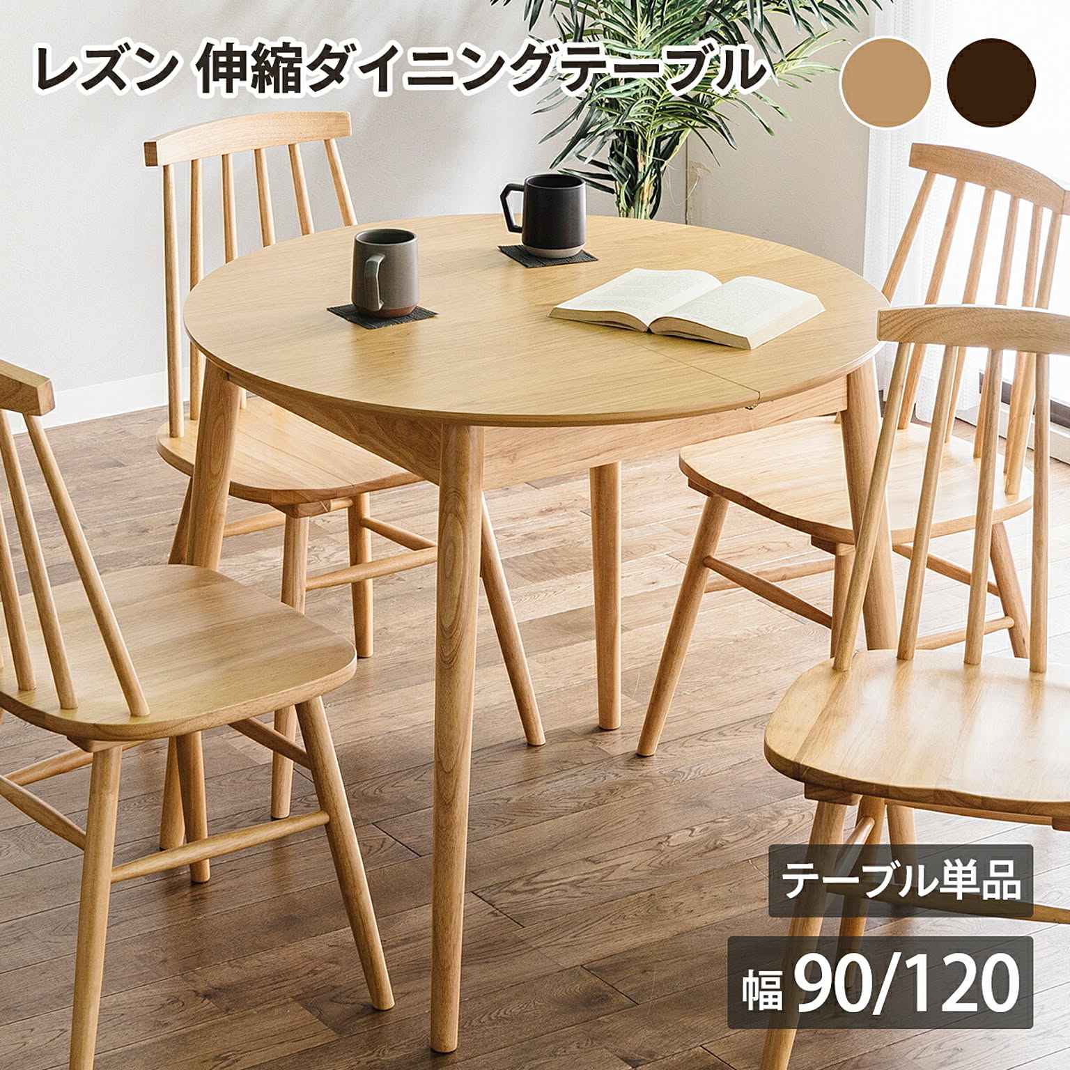 レズン 伸縮ダイニングテーブル 【ブラウン】BR レズン 伸縮ダイニングテーブル テーブル単品 伸長式 ダイニングテーブル 幅90〜120cm 木製 ラウンド