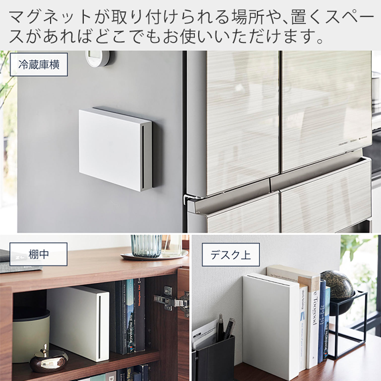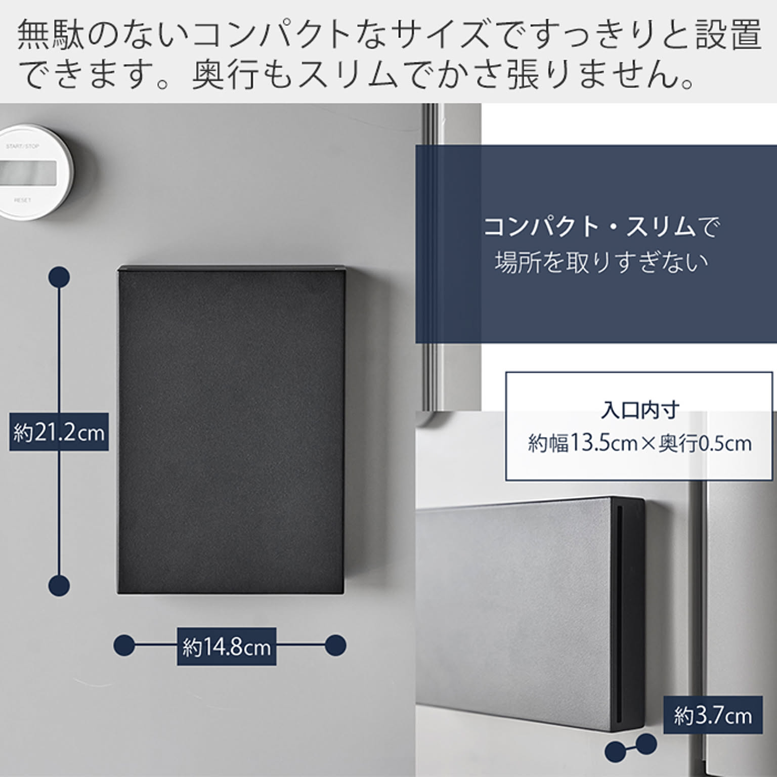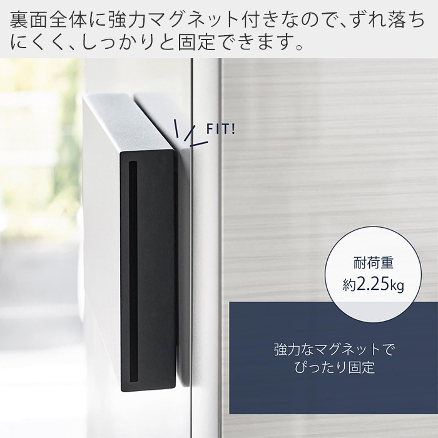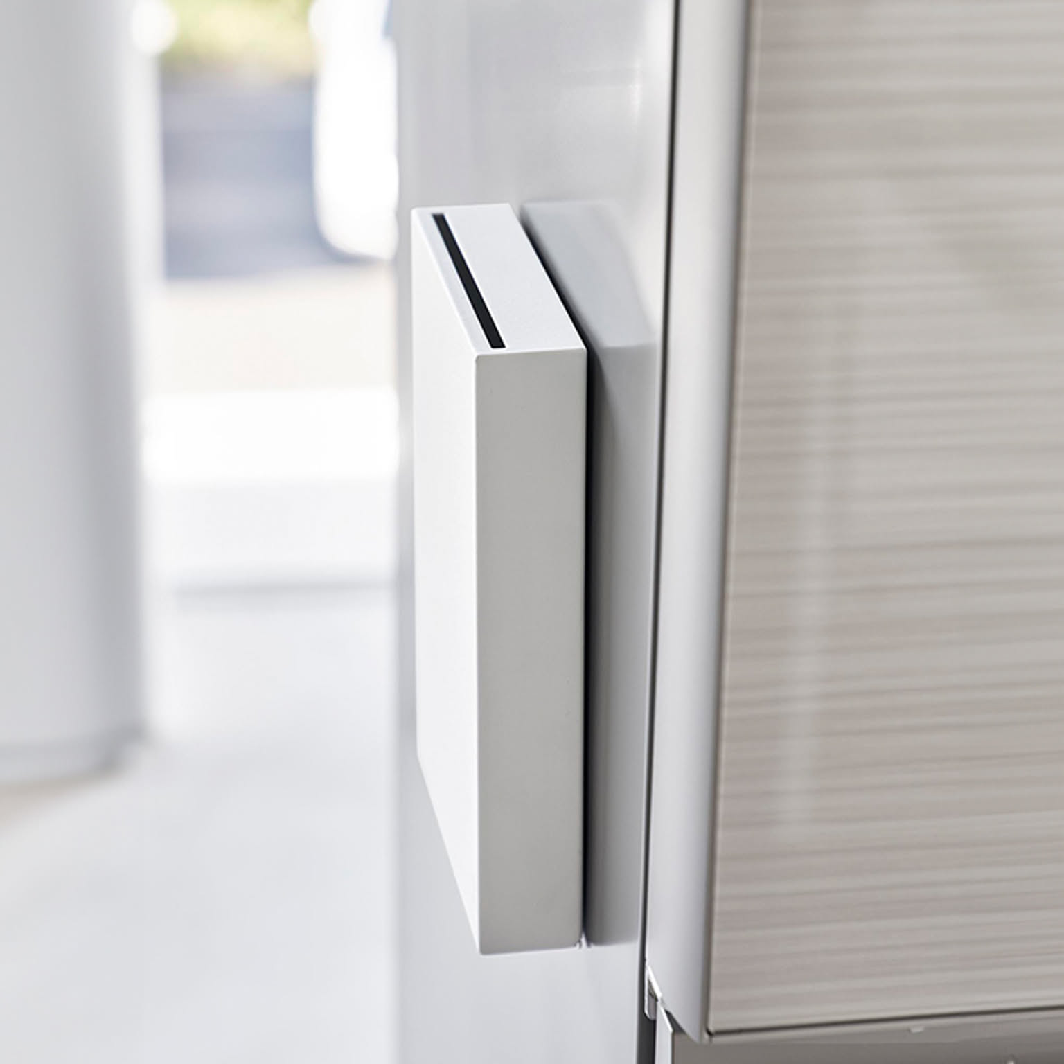 冷蔵庫横などのちょっとしたスペースに、マグネットで手軽に取り付けられます。