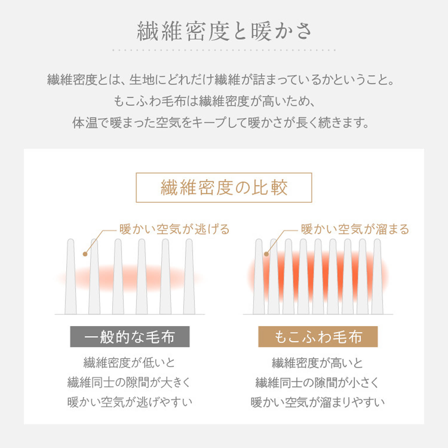2枚合わせの高い繊維密度は空気を溜め込む層が多く、ぬくもりをキープ。