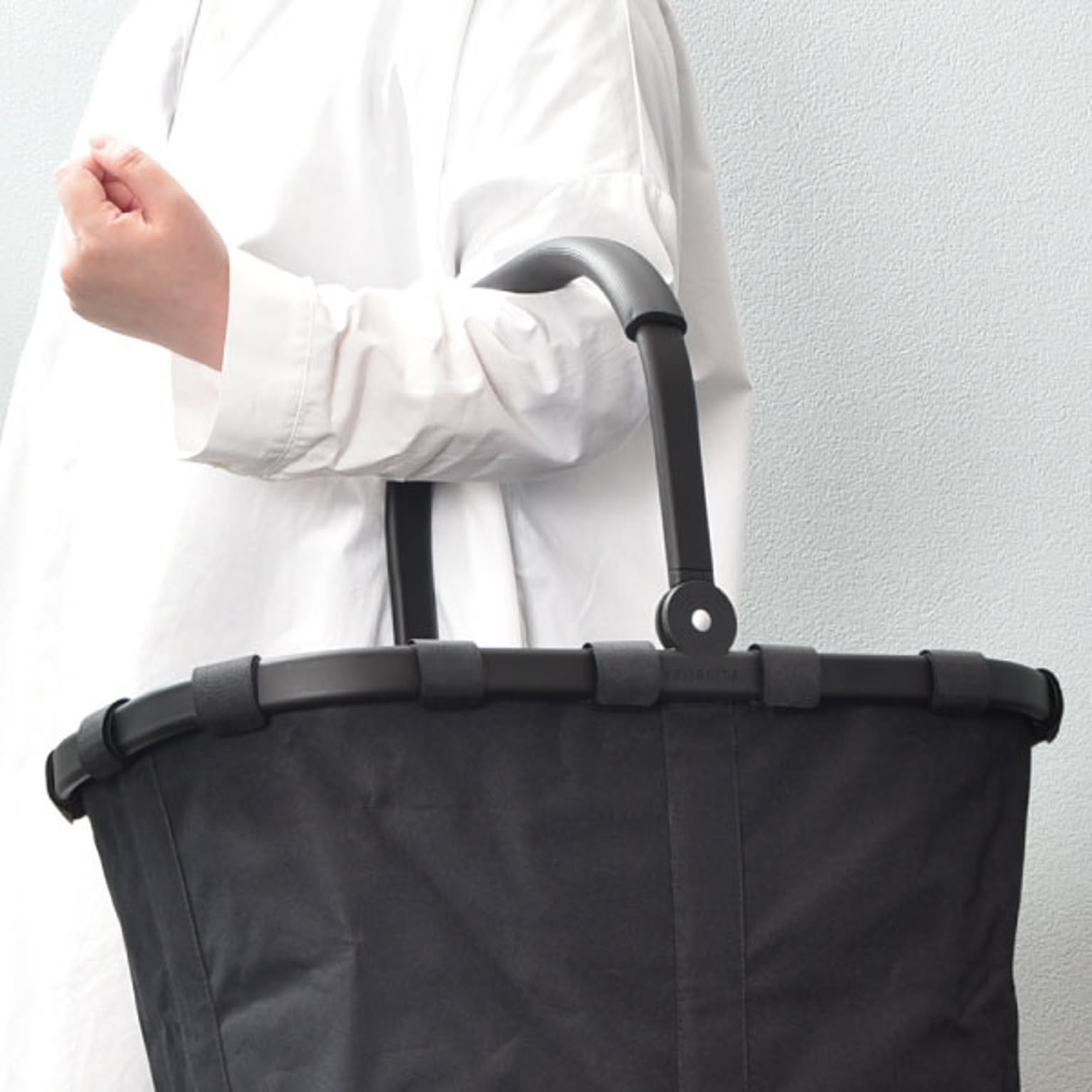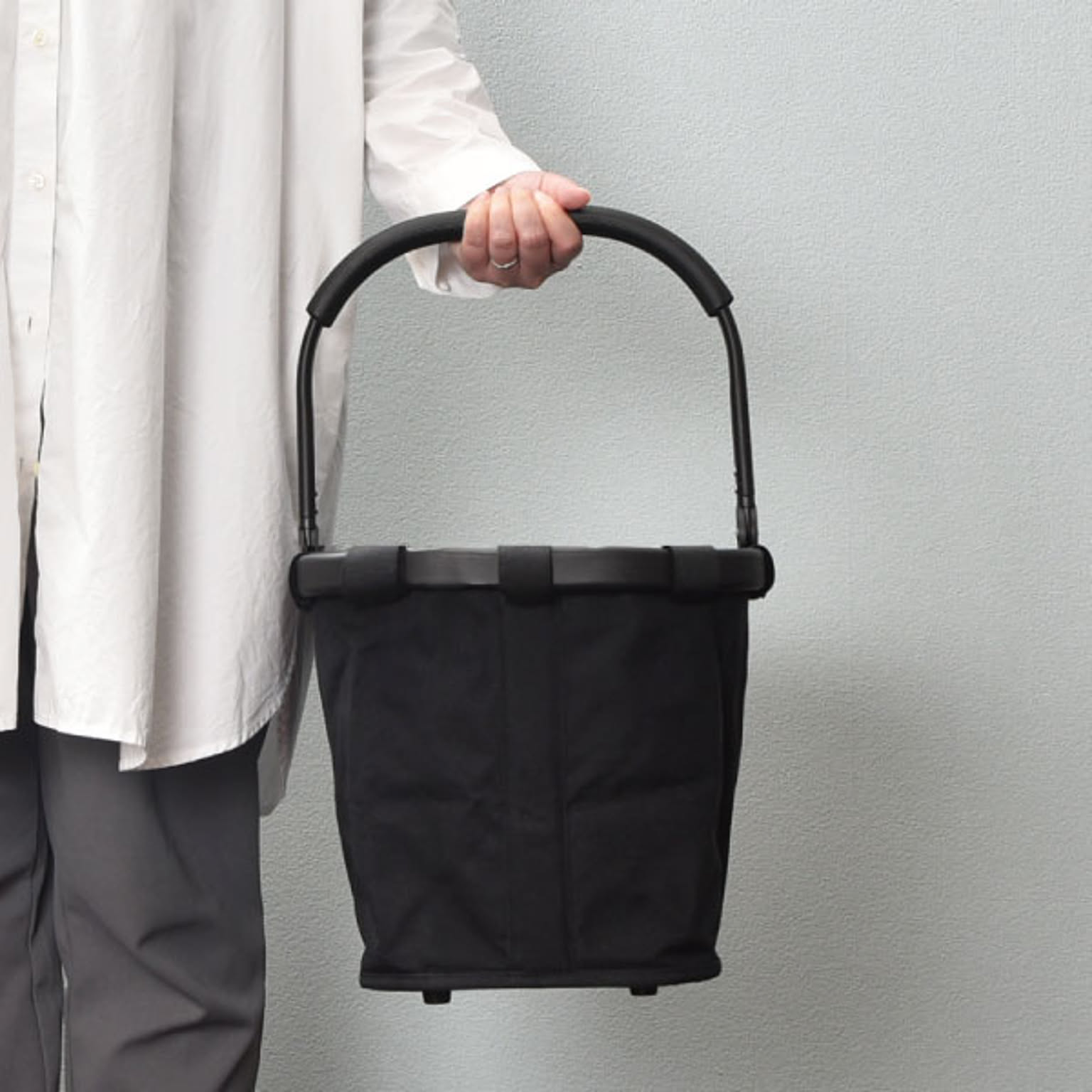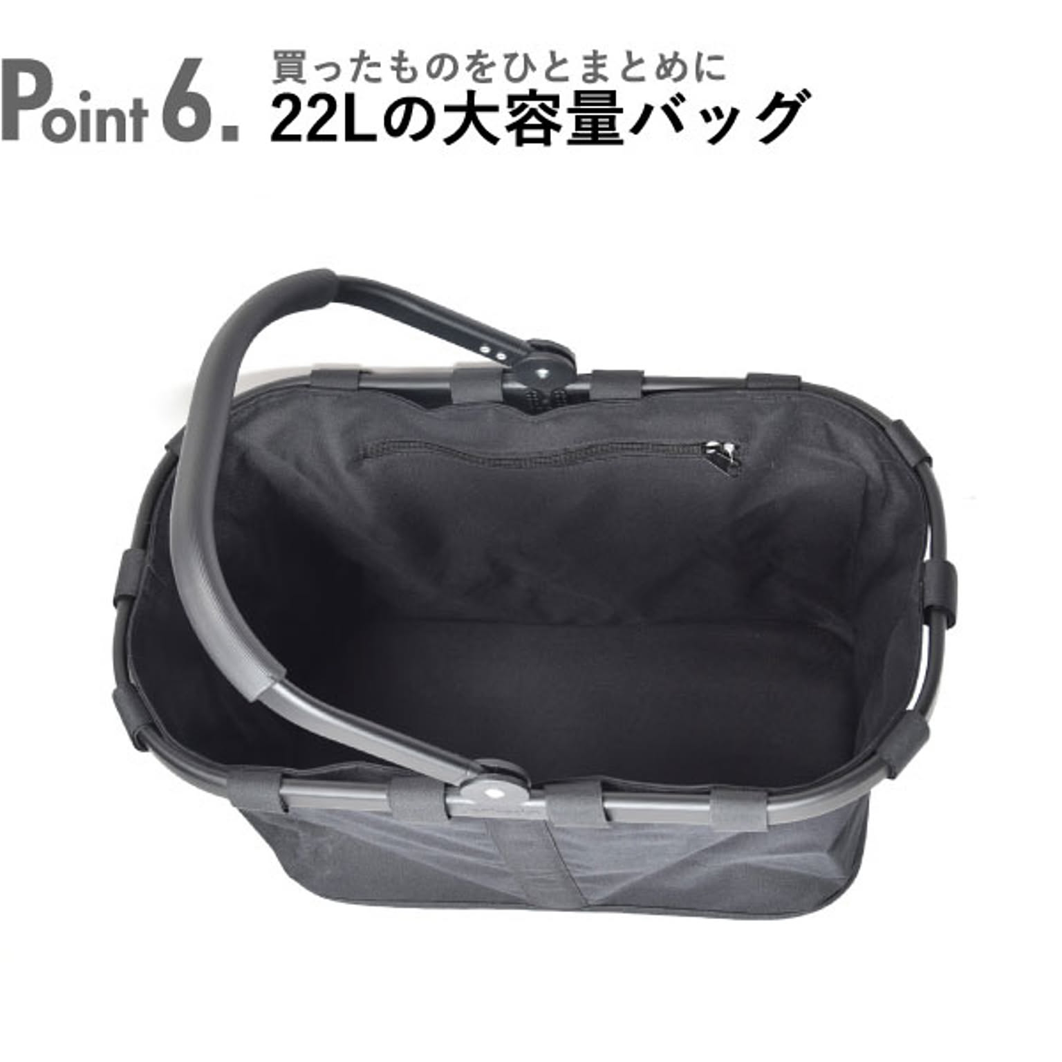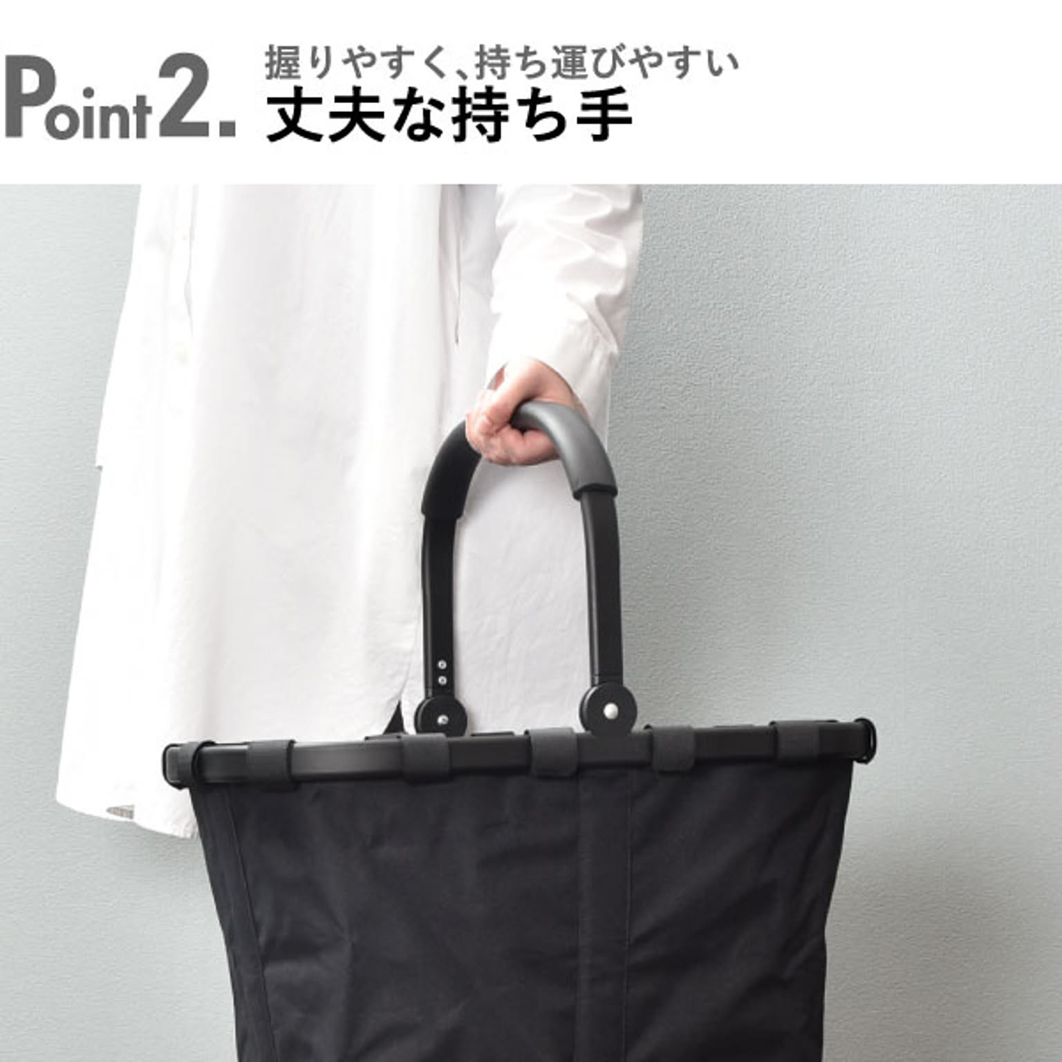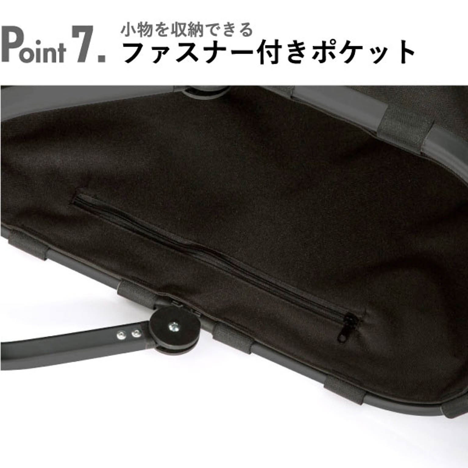 折り畳みが可能な大容量の買い物バッグです。お買い物はもちろん、車内やペットのお出掛け用、アウトドアシーンなどに活躍します。アルミフレームの持ち手は丈夫で、握る部分はソフトラバー製なので、腕にかけて持ち運んでも痛くなりにくいです。底板がしっかりしているので、重いものでも安心して収納できます。底鋲が5つ付いており、床に置いた際も安定します。補強用の芯でバッグが自立するので、物が入れやすいのが◎。芯を取り外せばコンパクトに折り畳めます。内側のポケットにはファスナーが付いているので、鍵などの貴重品の持ち運びに便利です。