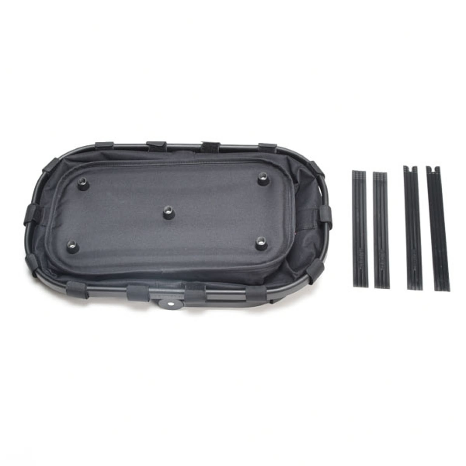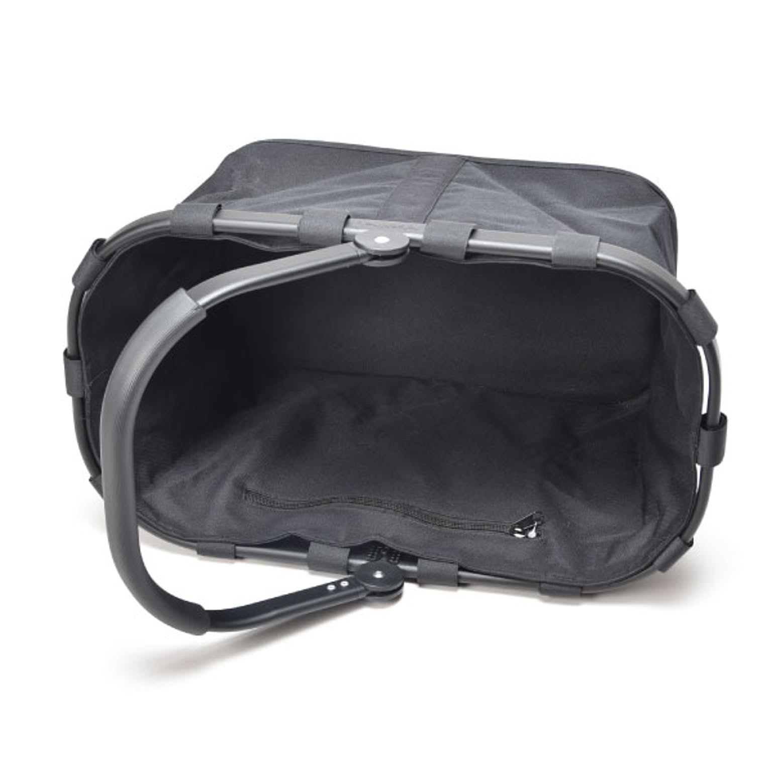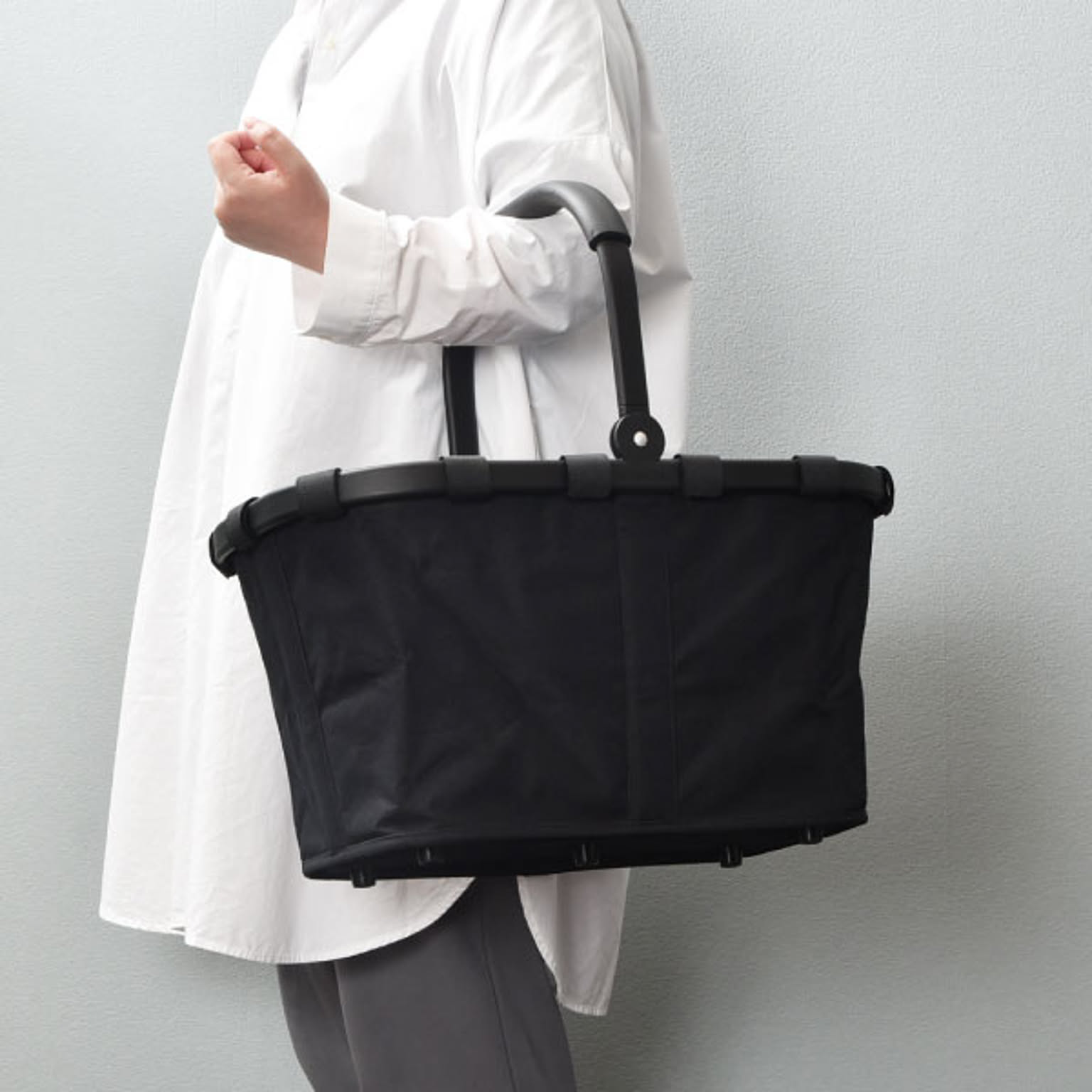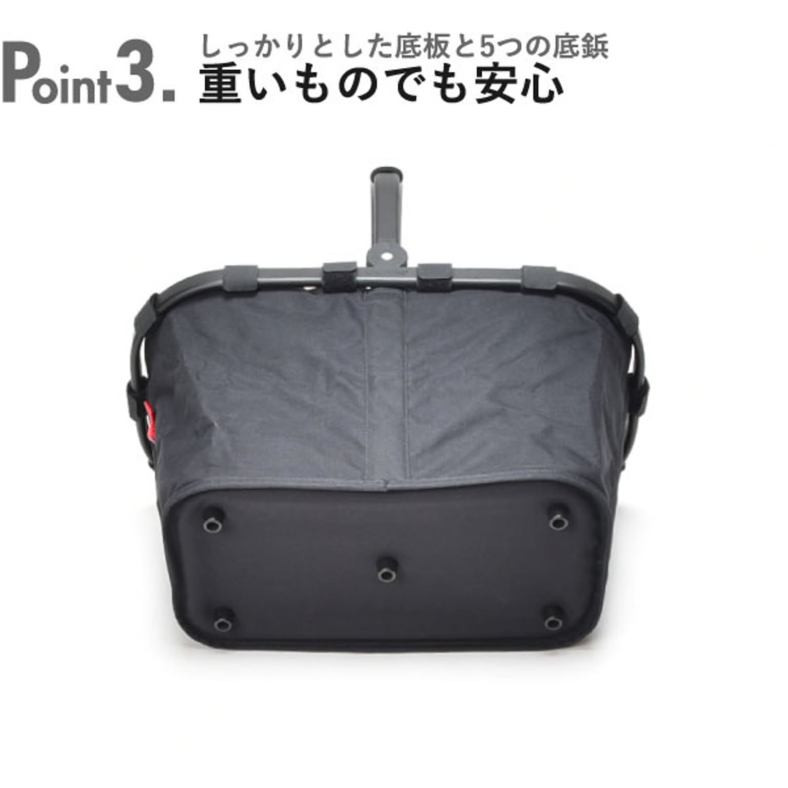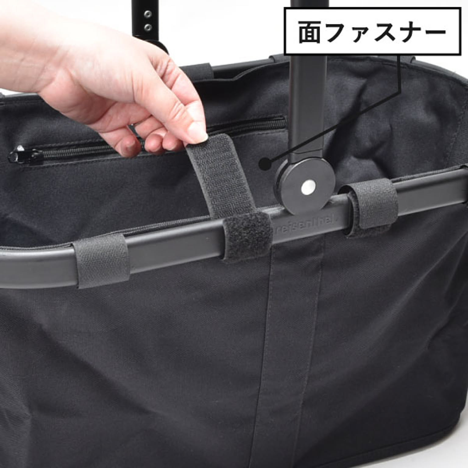 折り畳みが可能な大容量の買い物バッグです。お買い物はもちろん、車内やペットのお出掛け用、アウトドアシーンなどに活躍します。アルミフレームの持ち手は丈夫で、握る部分はソフトラバー製なので、腕にかけて持ち運んでも痛くなりにくいです。底板がしっかりしているので、重いものでも安心して収納できます。底鋲が5つ付いており、床に置いた際も安定します。補強用の芯でバッグが自立するので、物が入れやすいのが◎。芯を取り外せばコンパクトに折り畳めます。内側のポケットにはファスナーが付いているので、鍵などの貴重品の持ち運びに便利です。