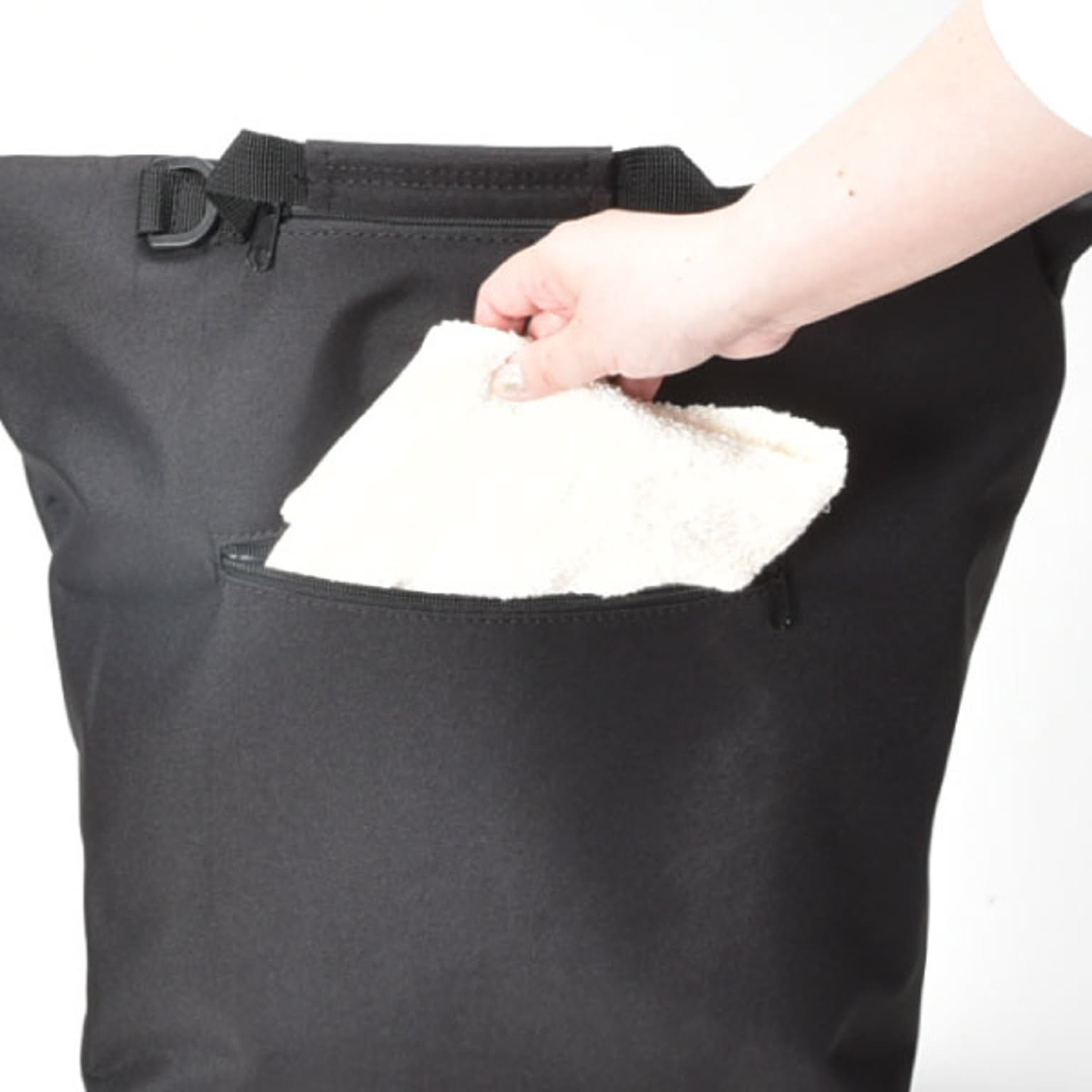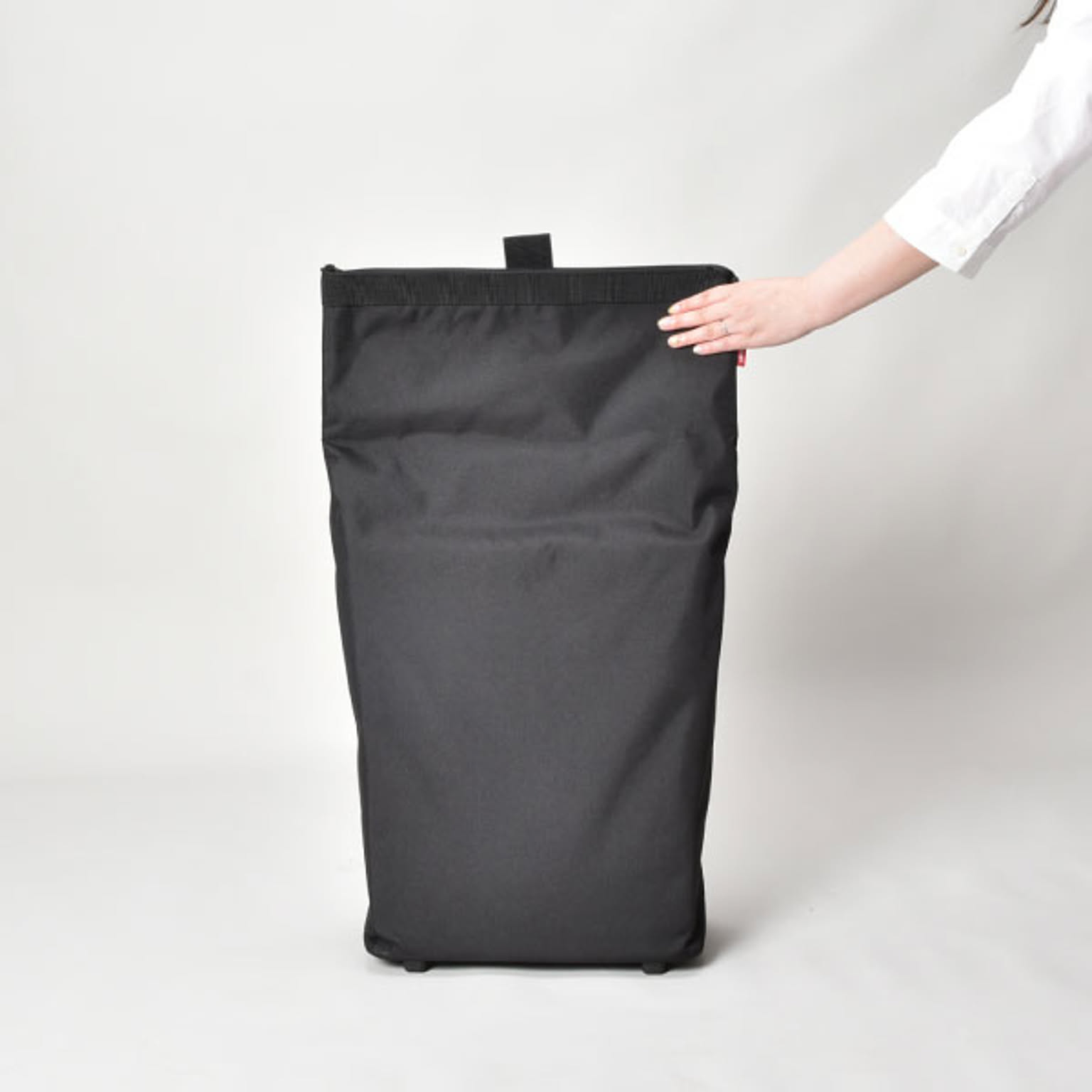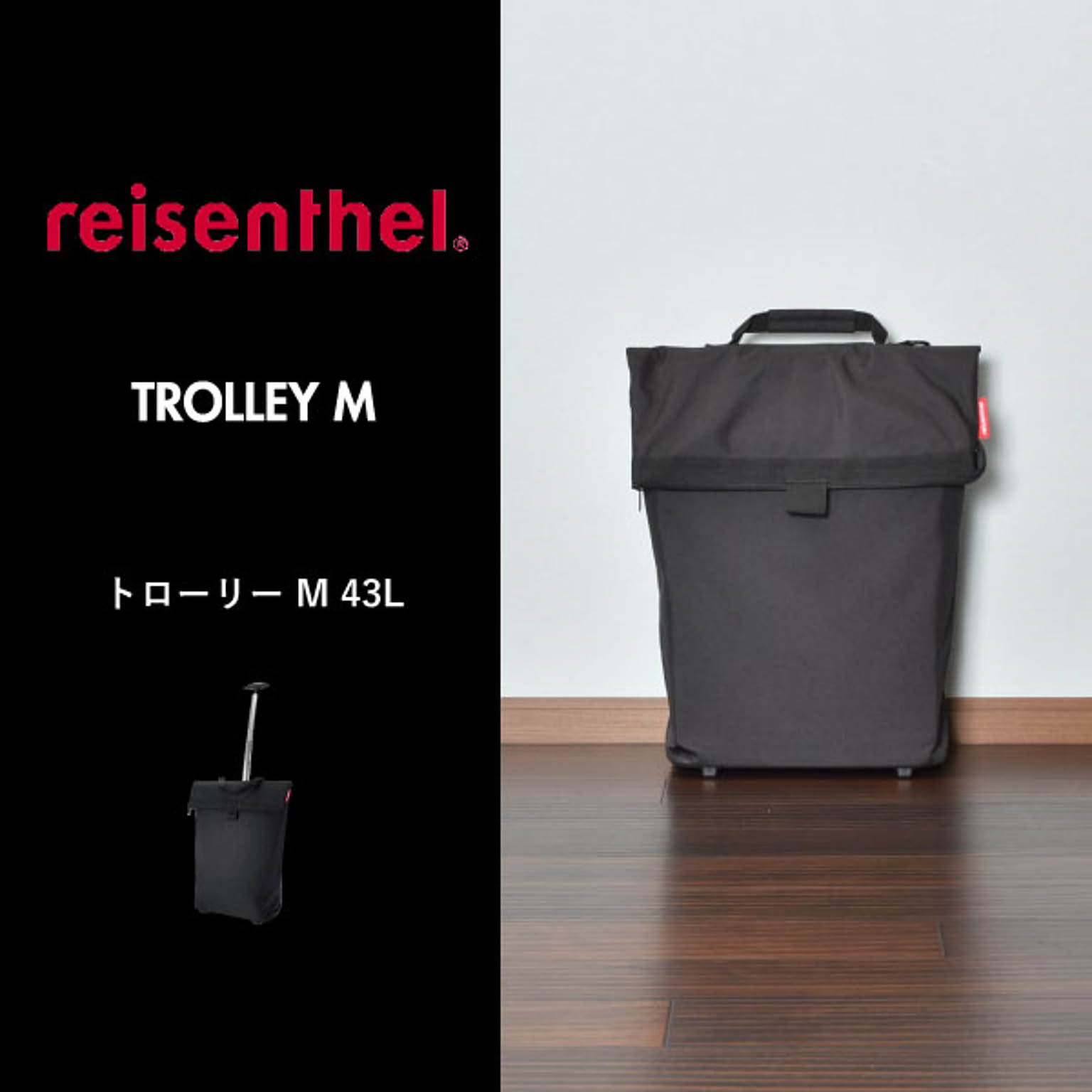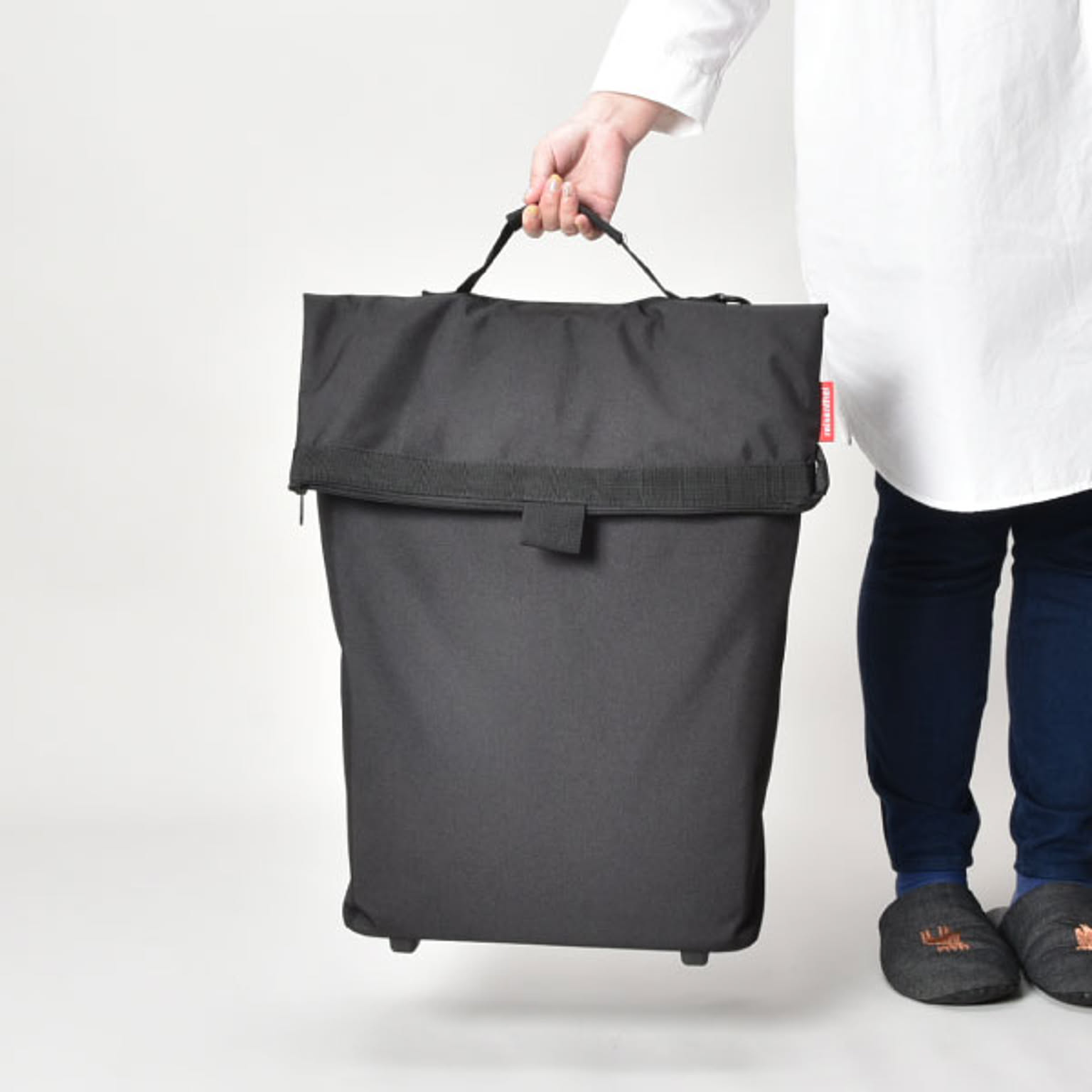 小回りのきく車輪付きのキャリーバッグです。狭い場所や人混みでも扱いやすいです。バッグを広げれば、約43Lと大容量です。たくさんの物を収納しても持ち運びやすいです。ハンドルは握りやすいT字型で、2段階に高さ調整が可能です。ハンドルはバッグの背面に収納できるので、バッグを手に持つこともできます。底鋲付きで置いた時も安定するので、荷物を出し入れしやすいです。大きく開く開口部で、安心のファスナー付き。背面にもファスナー付きの小物を入れられるポケットあります。買い物や旅行、アウトドアなど様々なシーンで活躍します。