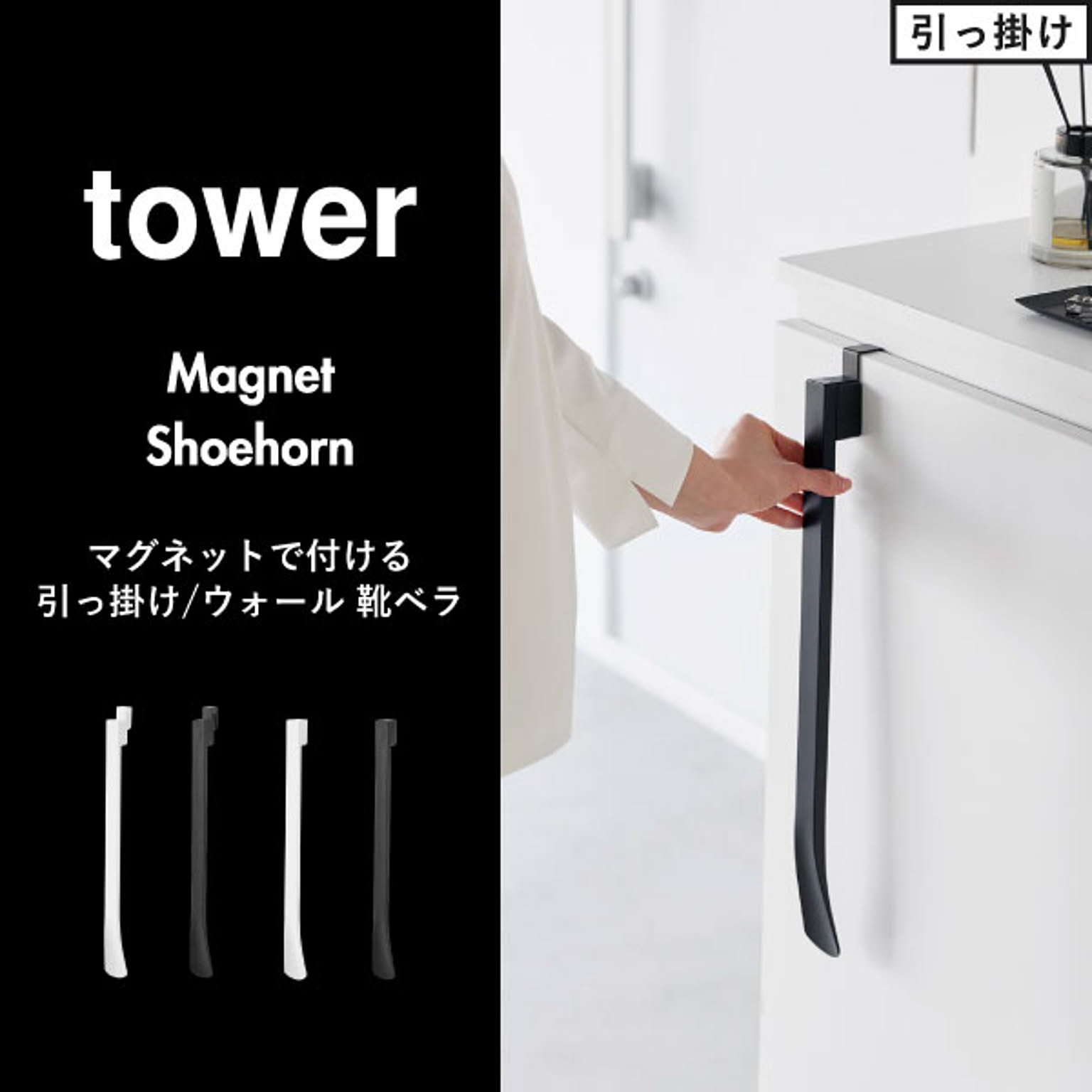 山崎実業 マグネットで付ける引っ掛け/ウォール靴ベラ タワー tower