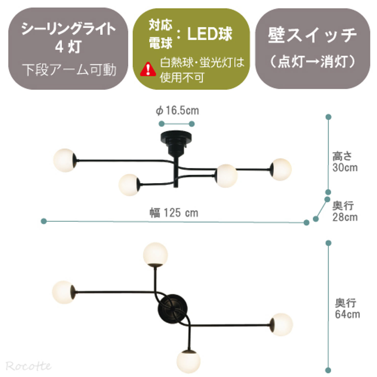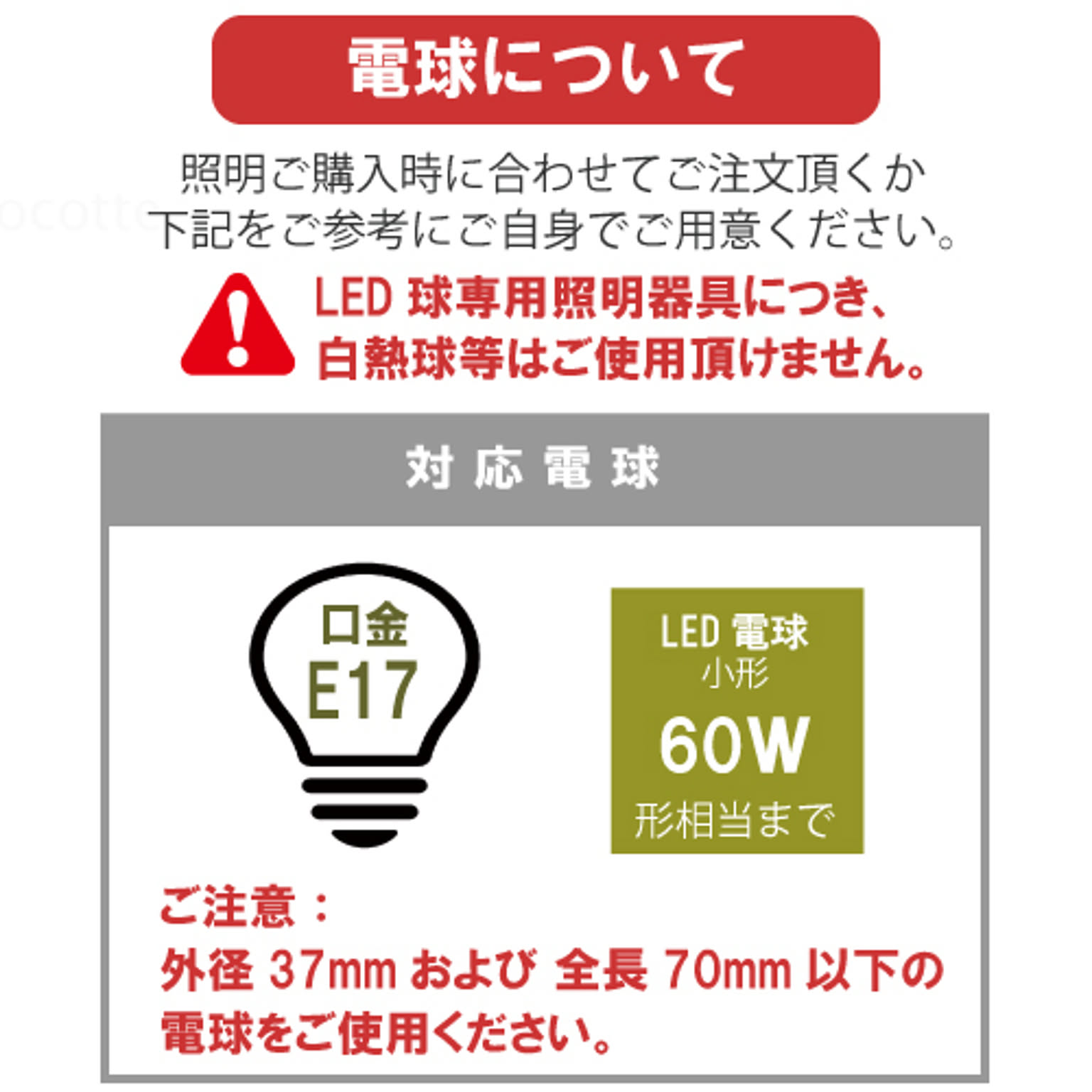 LED電球 ※白熱球、蛍光灯等は使用できません。