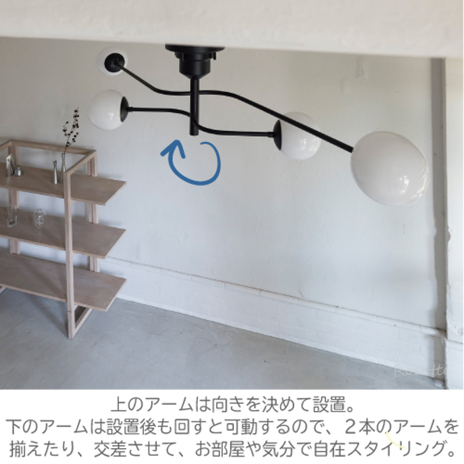 下段のアームをくるっと回転させてスタイリング。