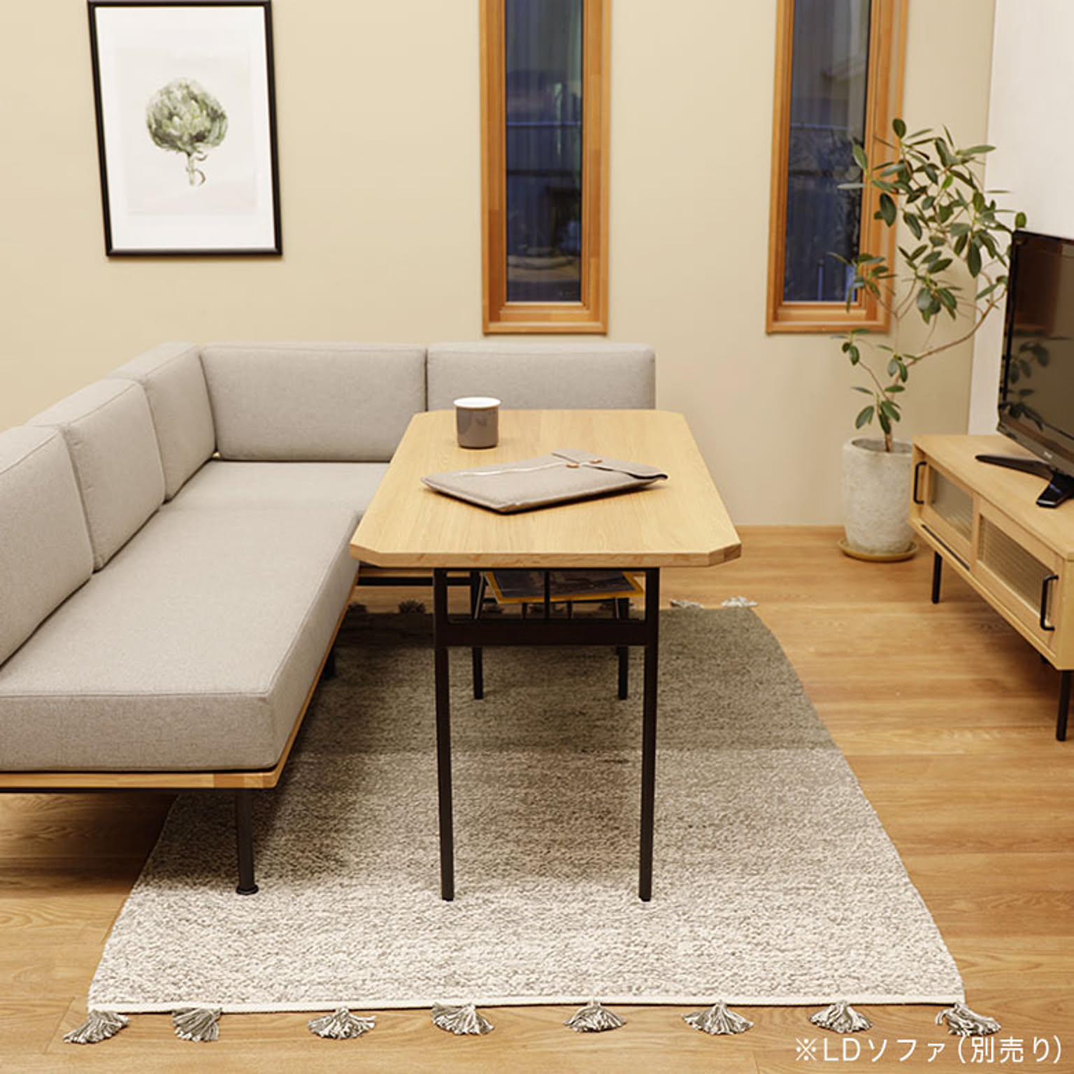 オーク天然木の美しい木目とスタイリッシュなアイアンを組み合わせた幅120cmダイニングテーブル。限りあるスペースを有効活用できるソファーダイニングスタイルにぴったりな低めの高さ設計。北欧や西海岸のカフェスタイル、ナチュラルヴィンテージテイストなど幅広いシーンに対応します。天板の角は面取り加工を施し、小さなお子さまがいる空間でも安心してお使いいただけます。