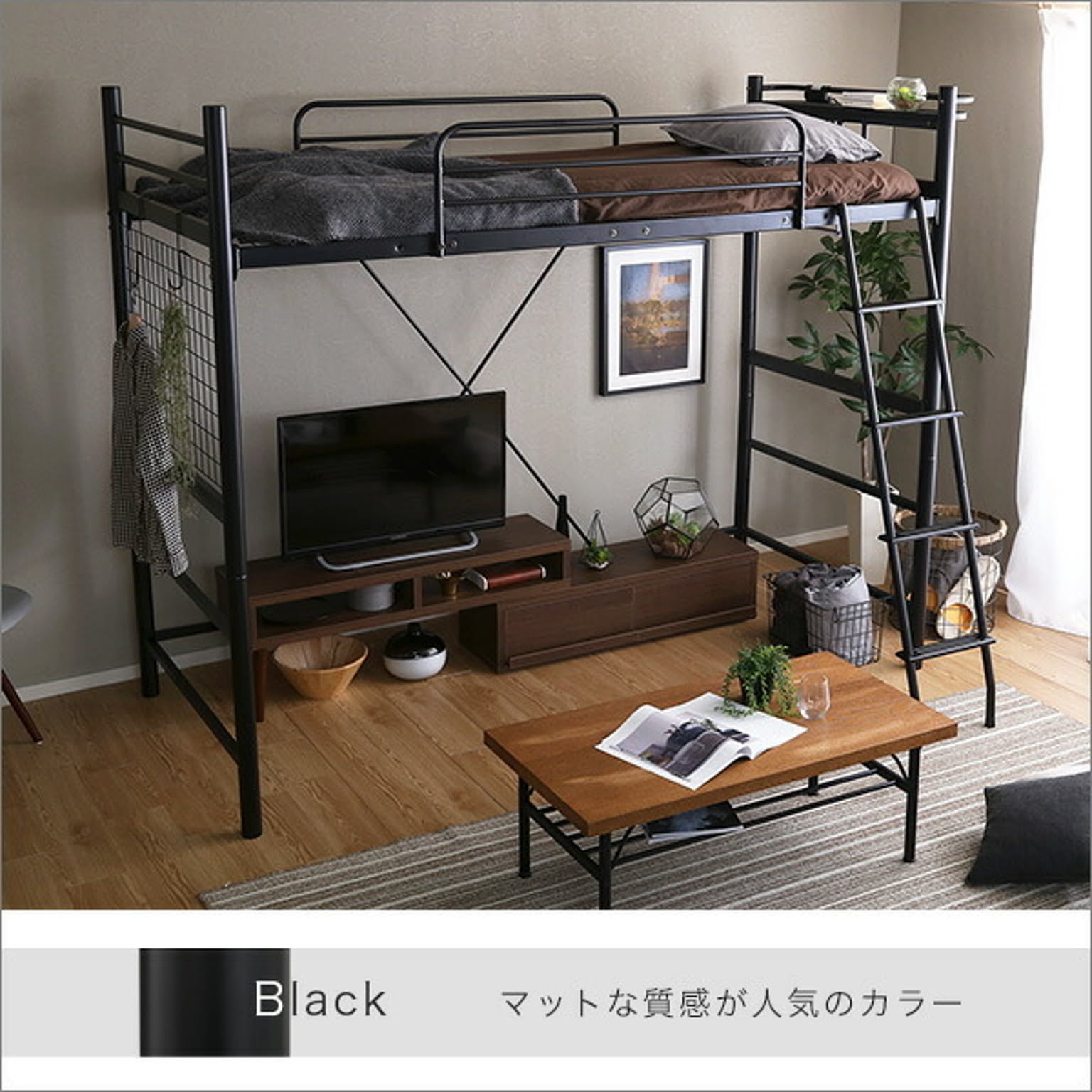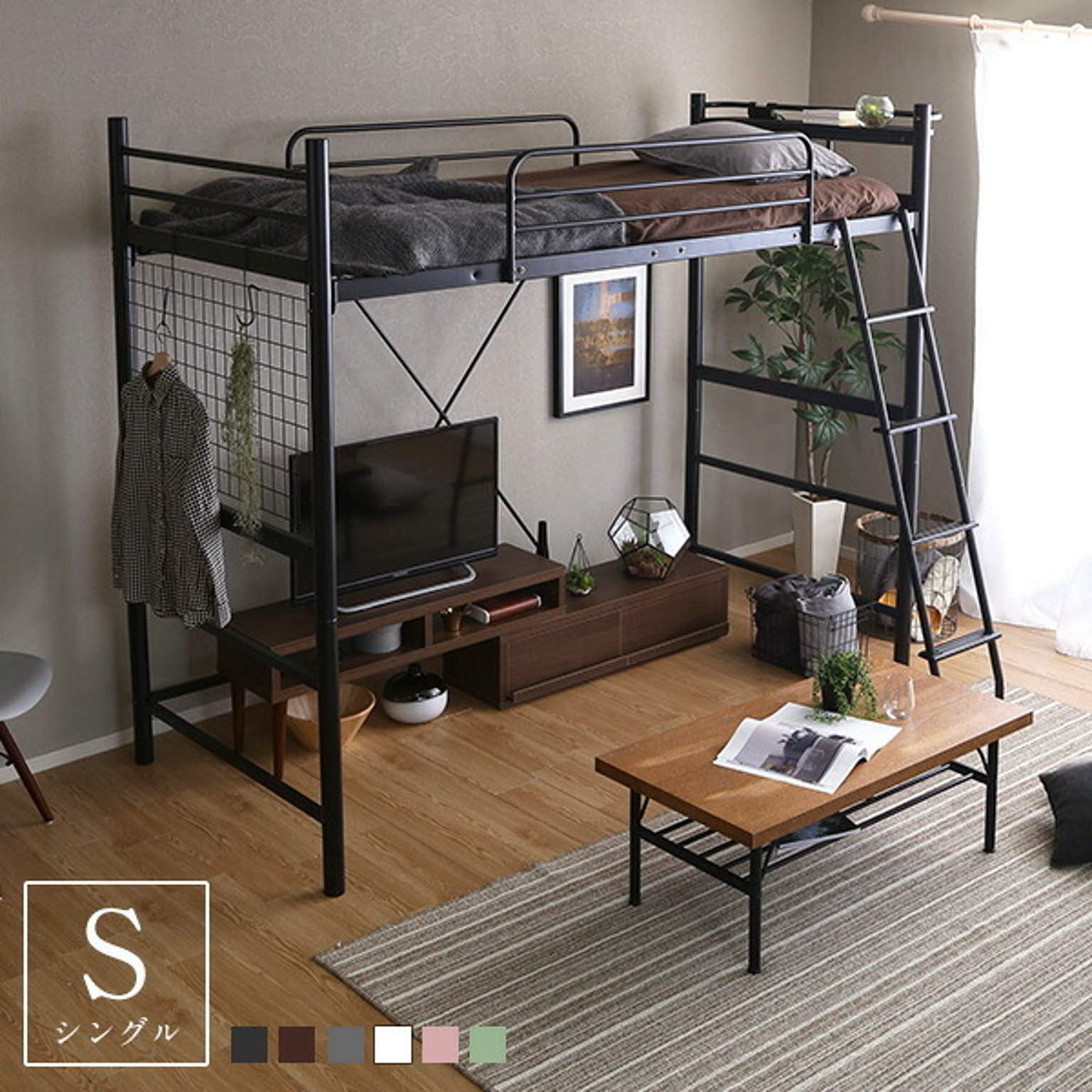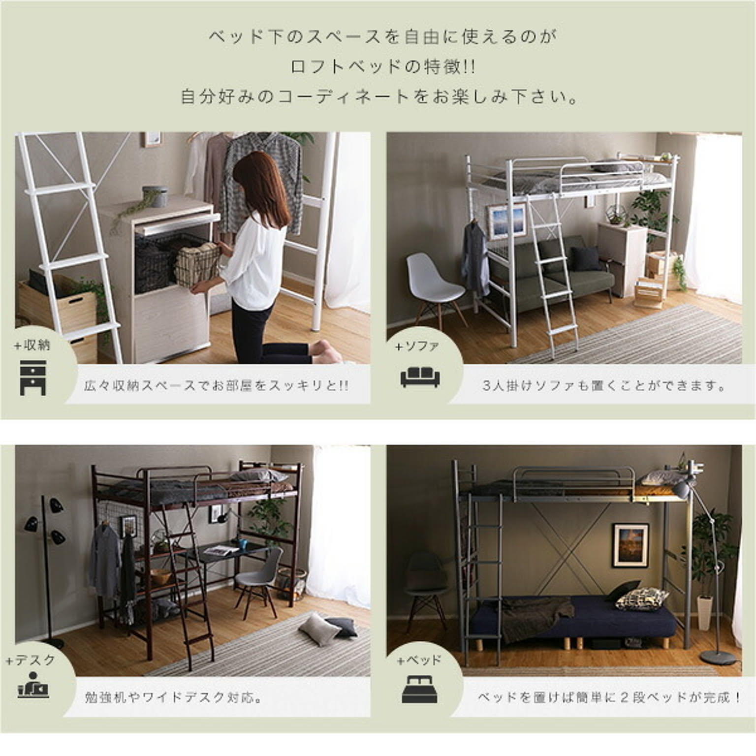 レビュー130件突破★ロフトベッド 北欧 モダン シンプル ヴィンテージ ホワイト 白 ブラック 黒 ブラウン 茶色 シルバー ピンク グリーン 緑 ワンンルーム 子供部屋 一人暮らし