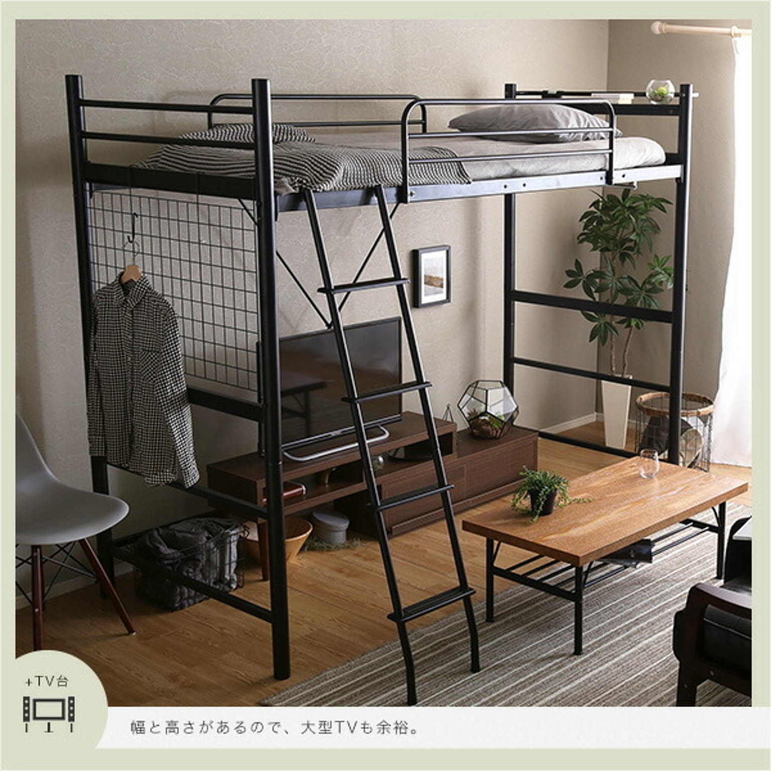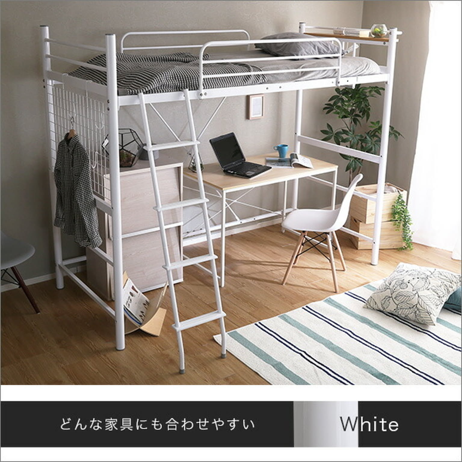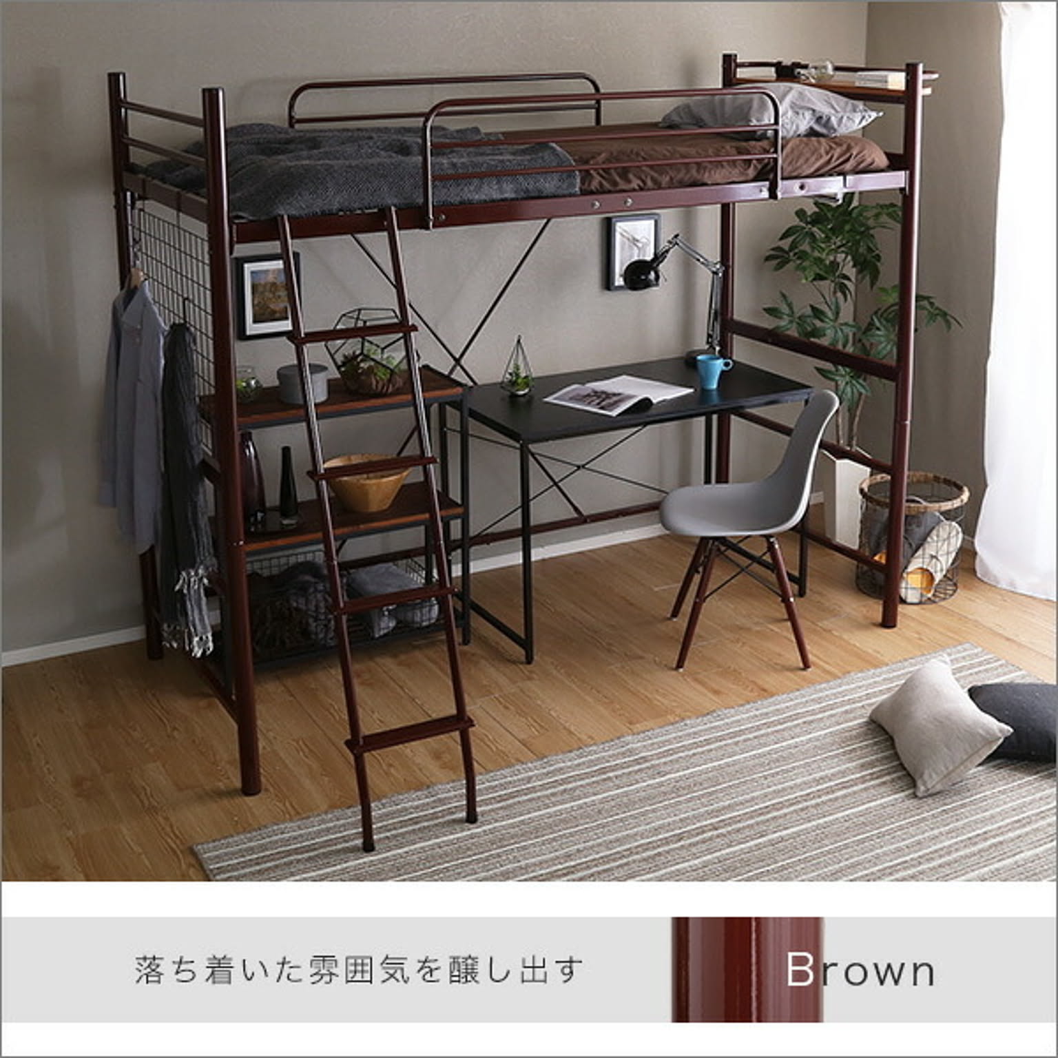 レビュー130件突破★ロフトベッド 北欧 モダン シンプル ヴィンテージ ホワイト 白 ブラック 黒 ブラウン 茶色 シルバー ピンク グリーン 緑 ワンンルーム 子供部屋 一人暮らし