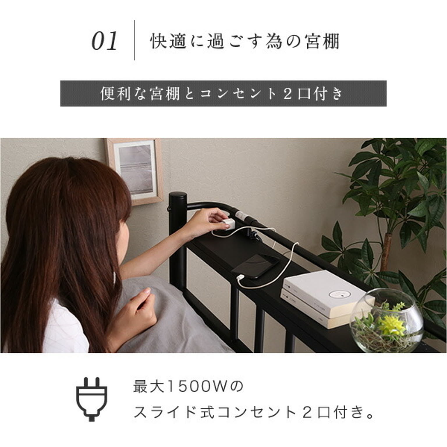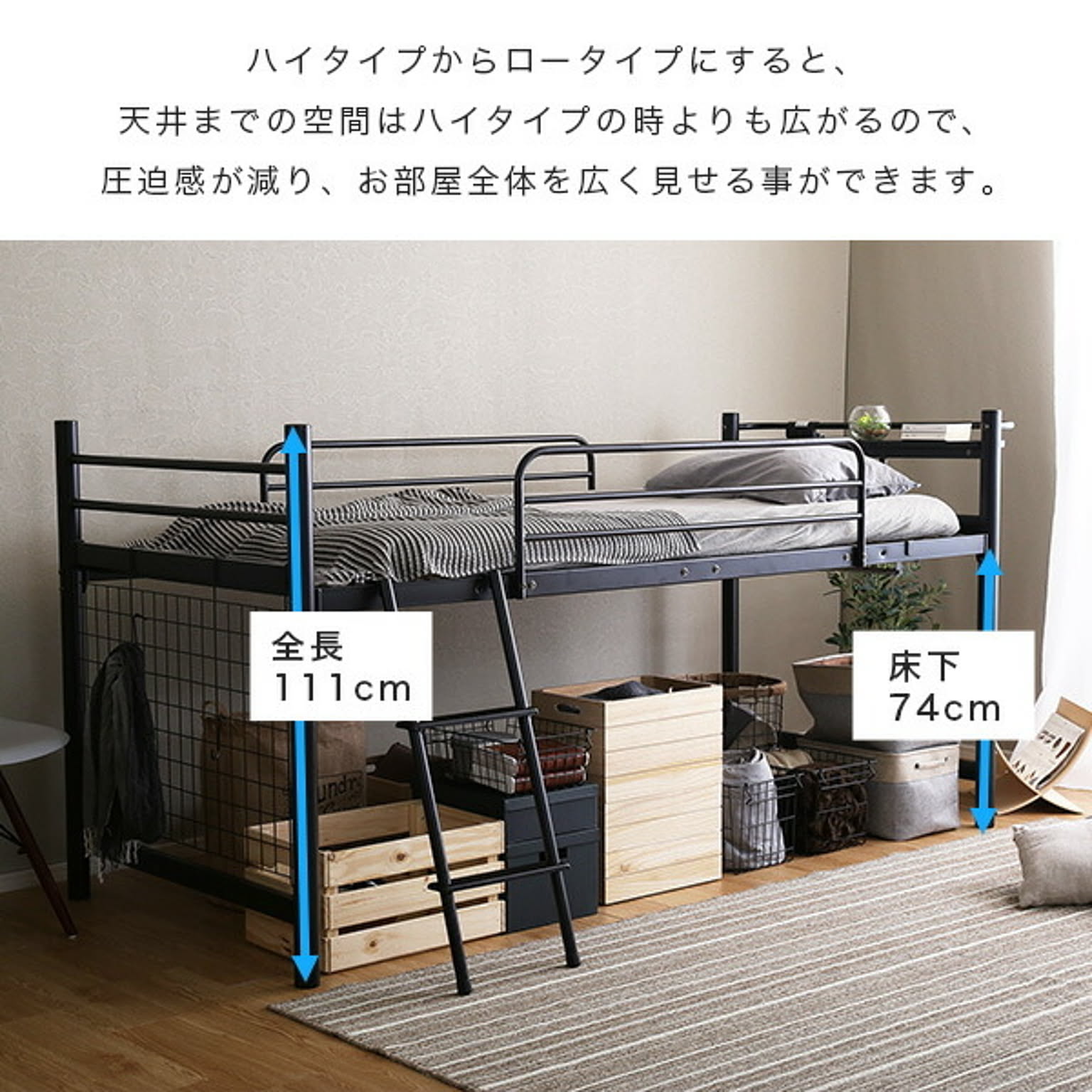 ロフトベッド 階段 ハイタイプ コンセント付き 宮付き ベッド 二段ベッド 2段ベッド パイプベッド ミドルタイプ ロータイプ シングルベッド S 耐荷重120kg 頑丈設計【OG】家具通販のグランデ