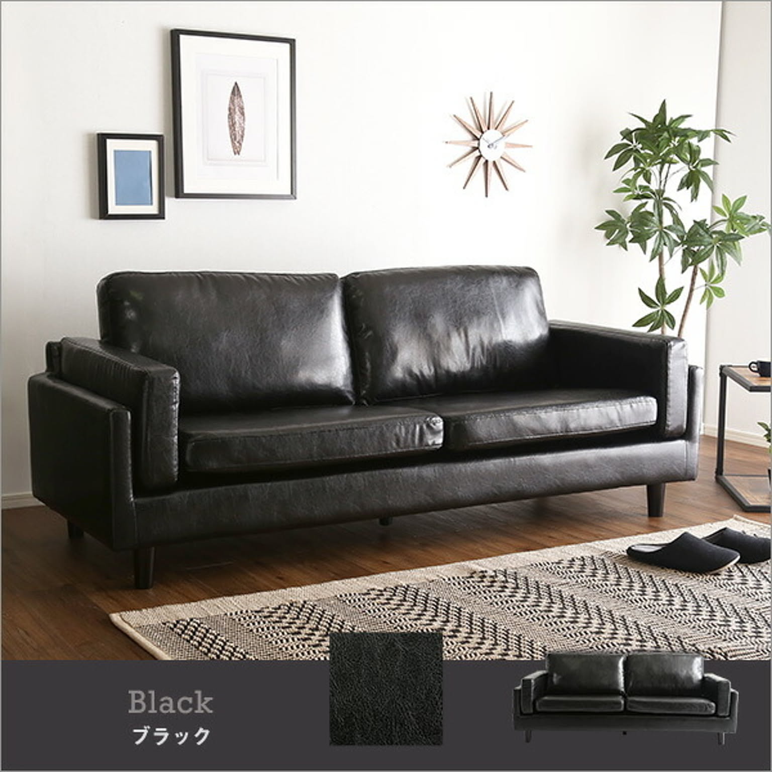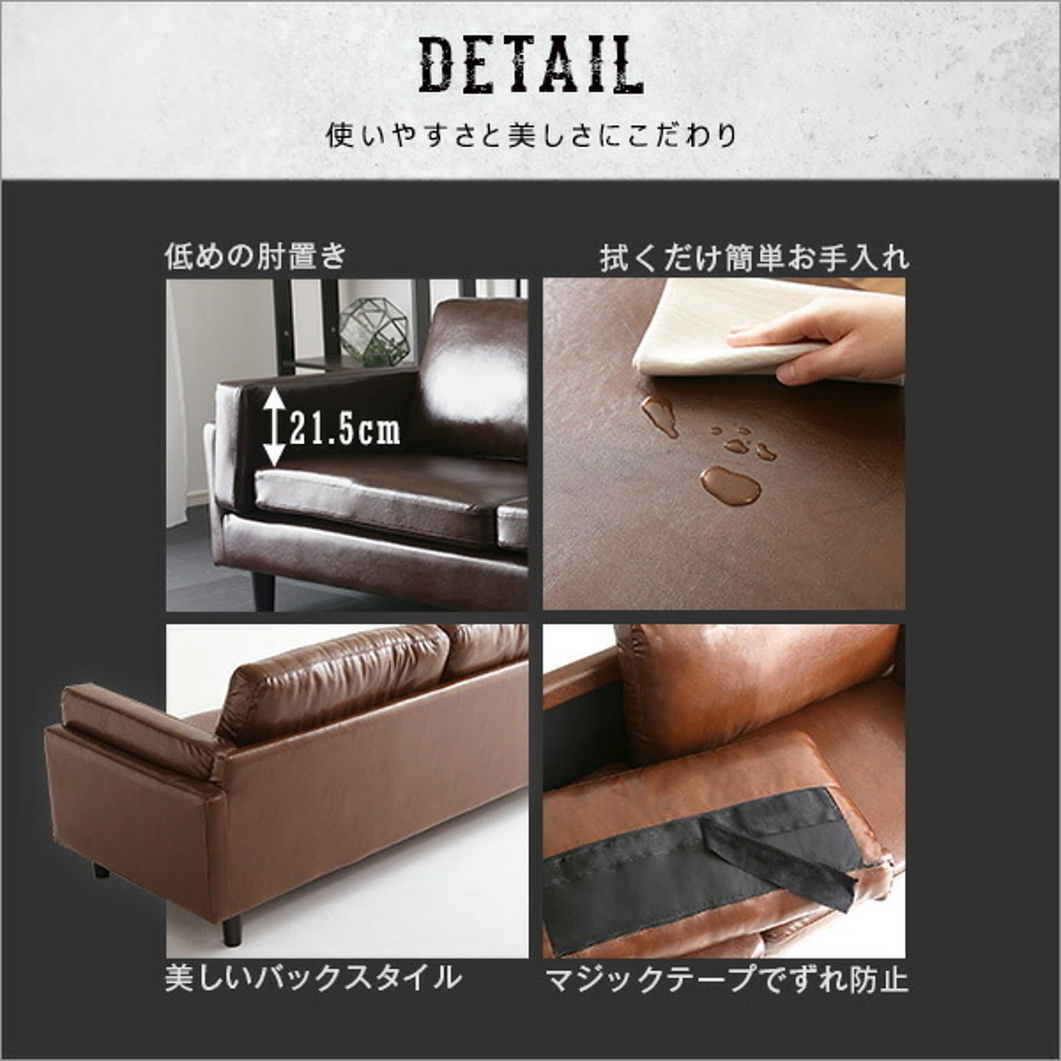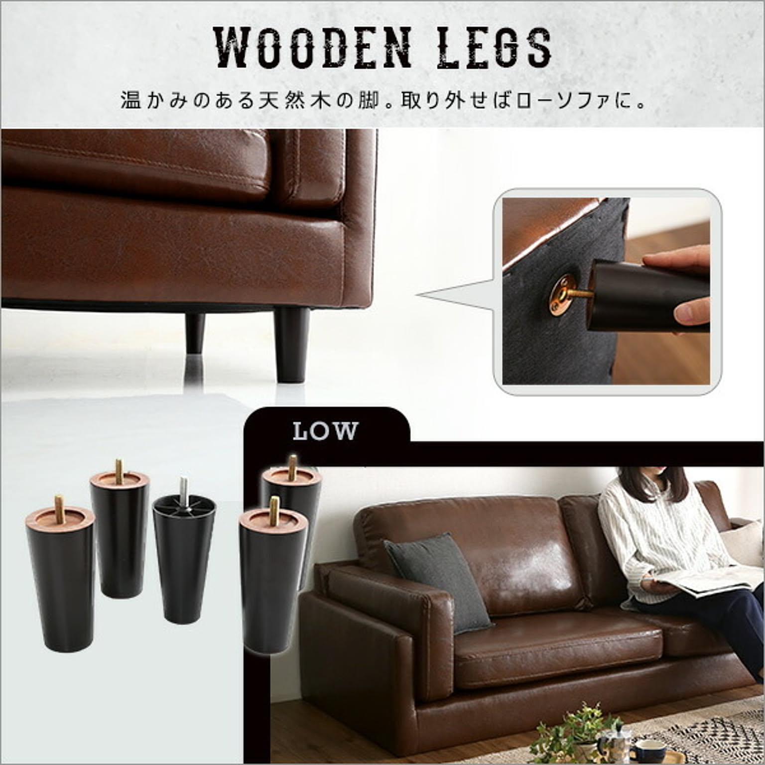 ヴィンテージソファ 3人掛け おしゃれ ソファ PVCレザー 2way セパレート 天然木 脚付き 黒 茶色 ブラック ブラウン インテリア 家具 ソファー 家具通販のグランデ Grande