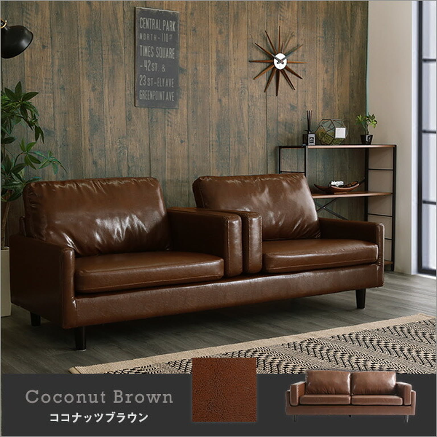 おしゃれな3人掛けヴィンテージソファ PVCレザーでお手入れ簡単♪ヴィンテージスタイル 西海岸 ブルックリン モダン クール シンプル ファミリー 男性