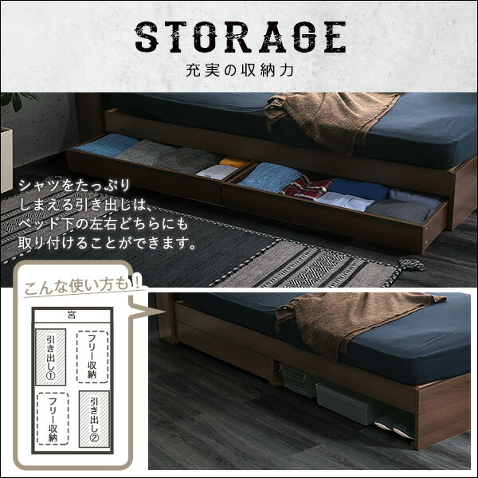 インテリア 家具 ベッド チェストベッド コンセント付き ヴィンテージ シングルサイズ 収納 引き出し S おしゃれ 携帯充電可能 宮付き BROOK