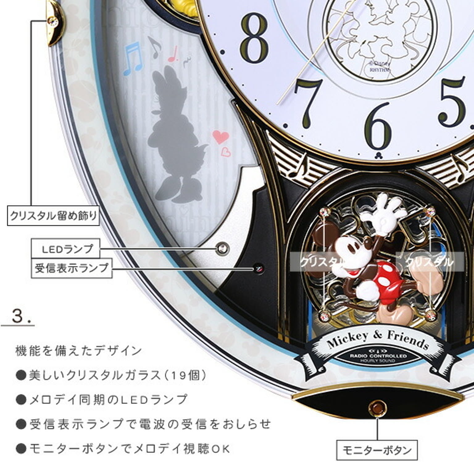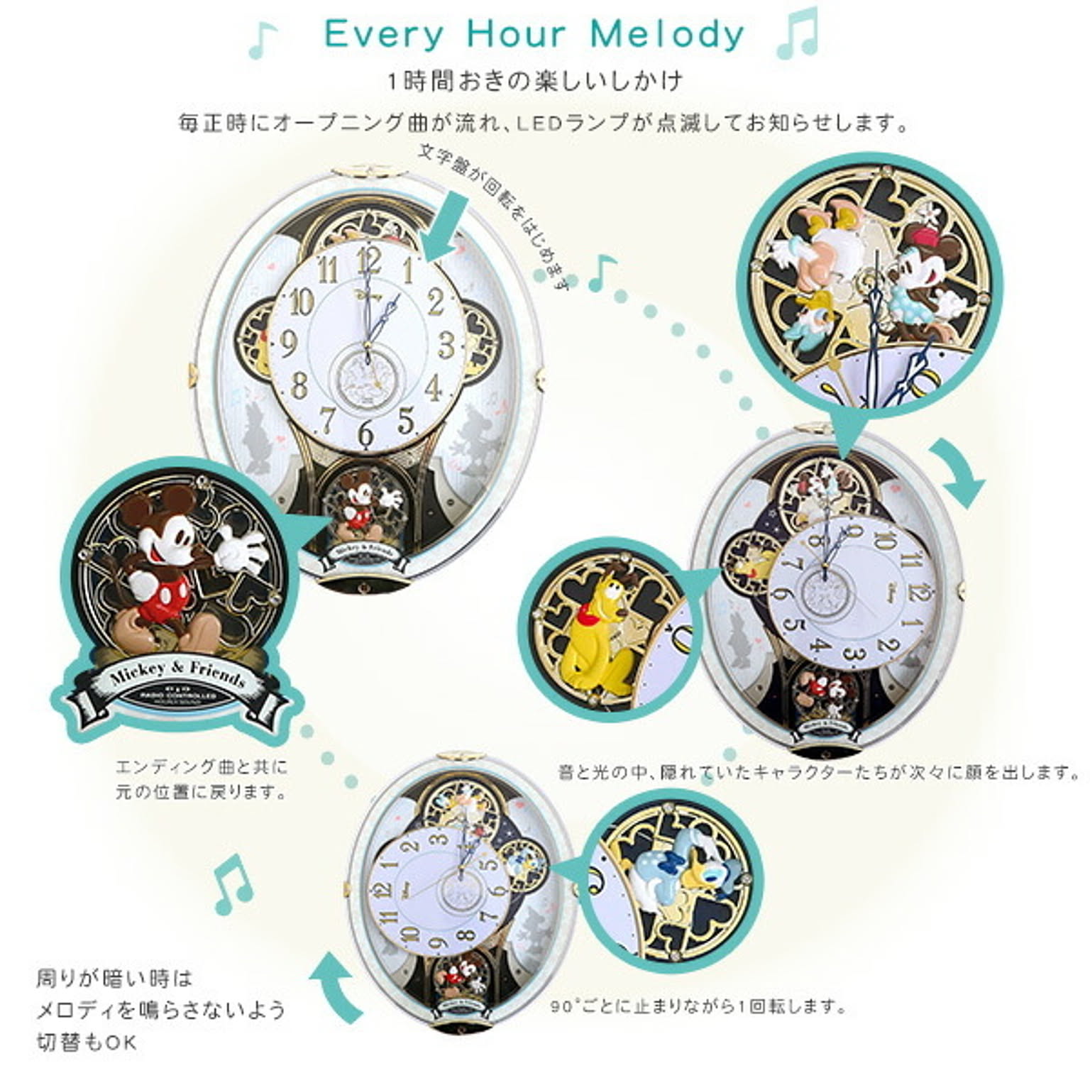 ミッキーアンドフレンズ 掛け時計 からくり時計 28曲の選べるオーロラサウンド