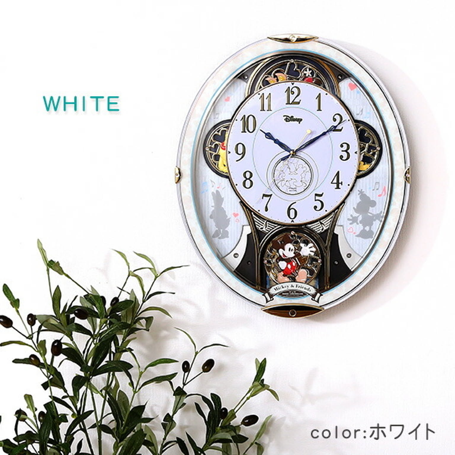 ミッキー&フレンズ 時計 からくり かわいい ミッキー ミニー ディズニー 電波時計 キッズ 子供 壁掛け ミュージック 音楽 曲 リビング 家族 ホワイト 白 プレゼント 贈り物 ギフト