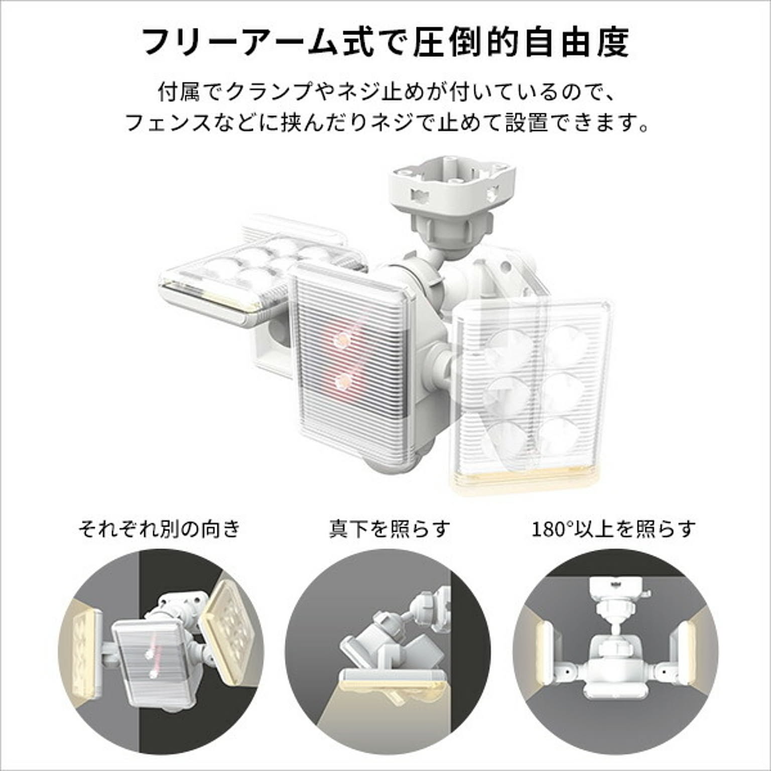 9W 2灯 フリーアーム センサーライト 人感センサー 白色光 暖灯灯 防犯グッズ 遠隔操作 コンセント式 ルーメン 屋外 防雨
