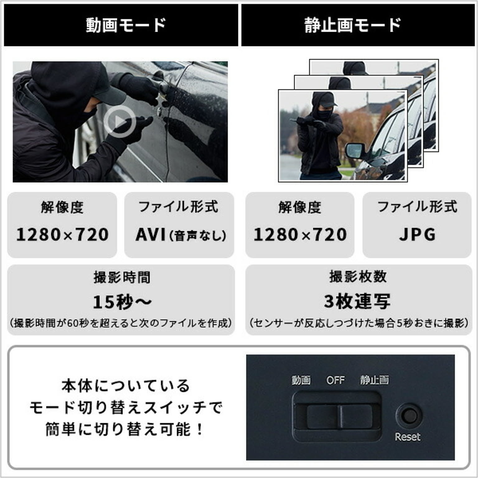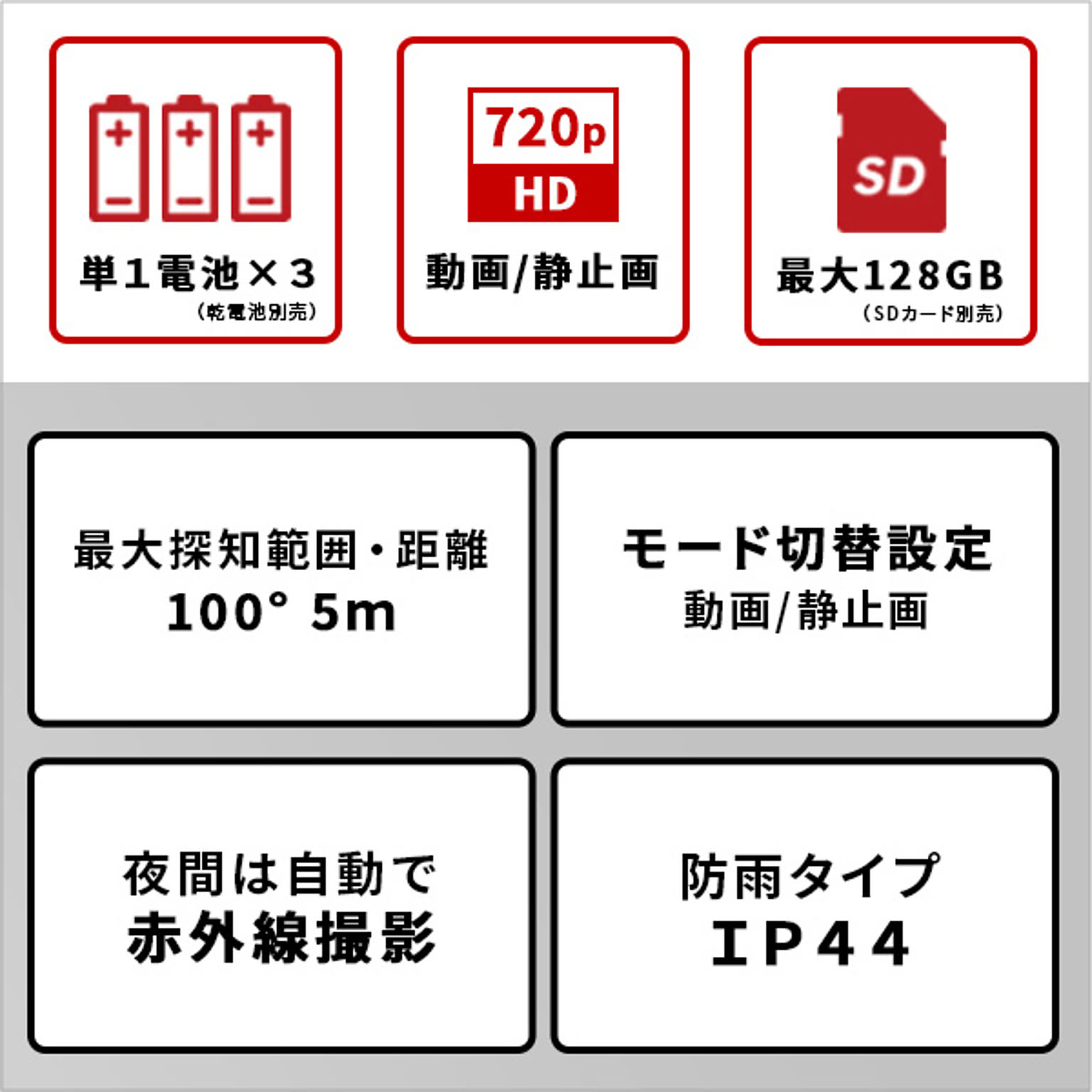 カメラ 防犯カメラ センサーカメラ 動画 静止画 防水 防塵 夜間 どこでも設置 マグネット取り付け モード切り替え 高性能 使いやすい 乾電池 SDカード ゴリラポッド