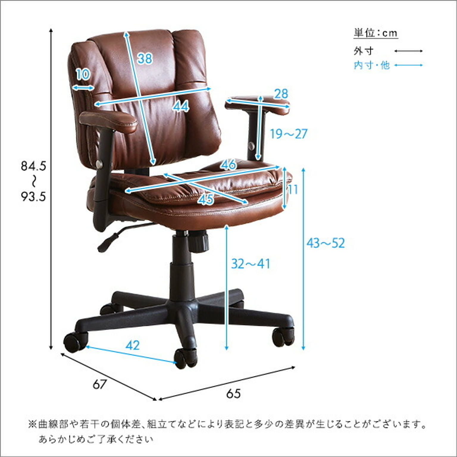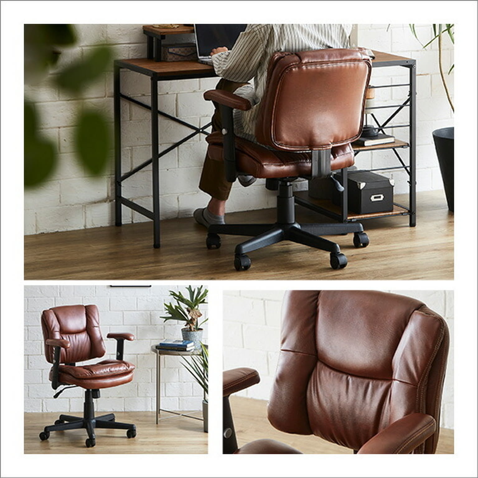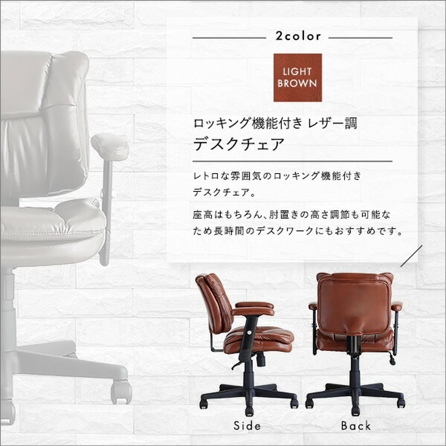ロッキング機能付き レザー調デスクチェア