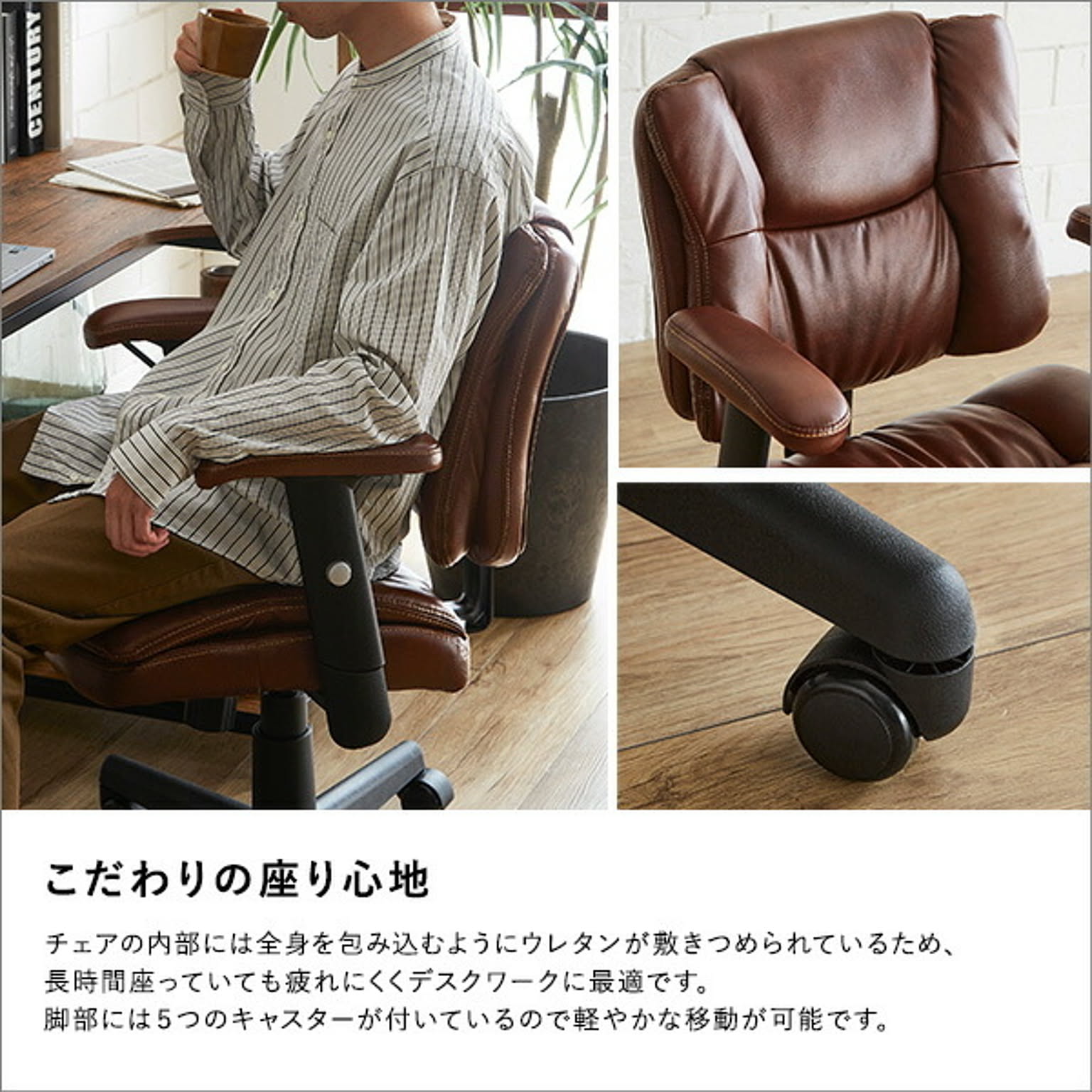 デスクチェア 1脚 おしゃれ ヴィンテージ 椅子 イス レザー ウッド 木 合皮 チェア モダン PCデスク テレワーク シンプル 回転式 昇降式 ガス圧昇降 キャスター 鉄脚 チェア