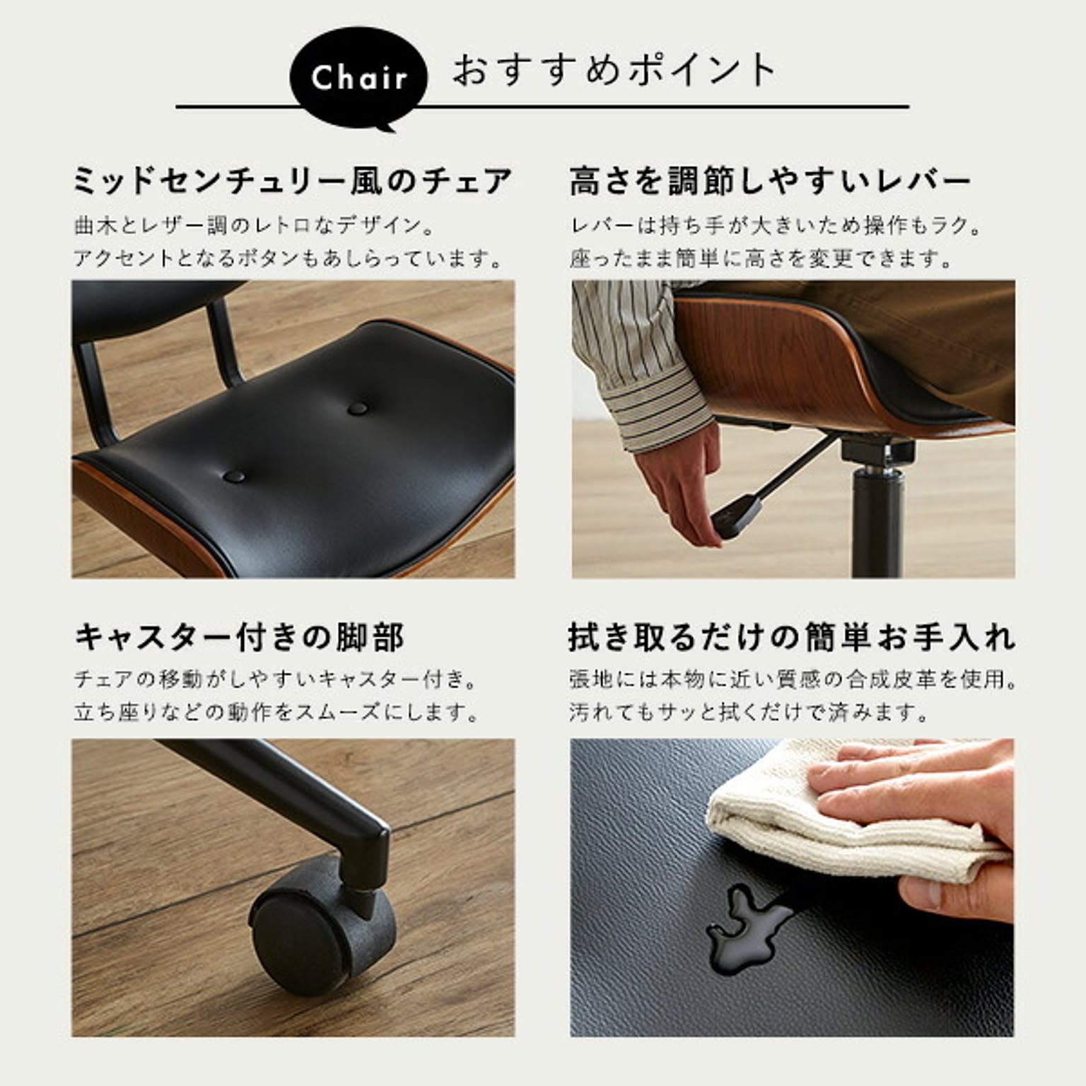 ゆるやかなカーブが美しいデスクチェア 2点セット【Gwyn×Lubbock】