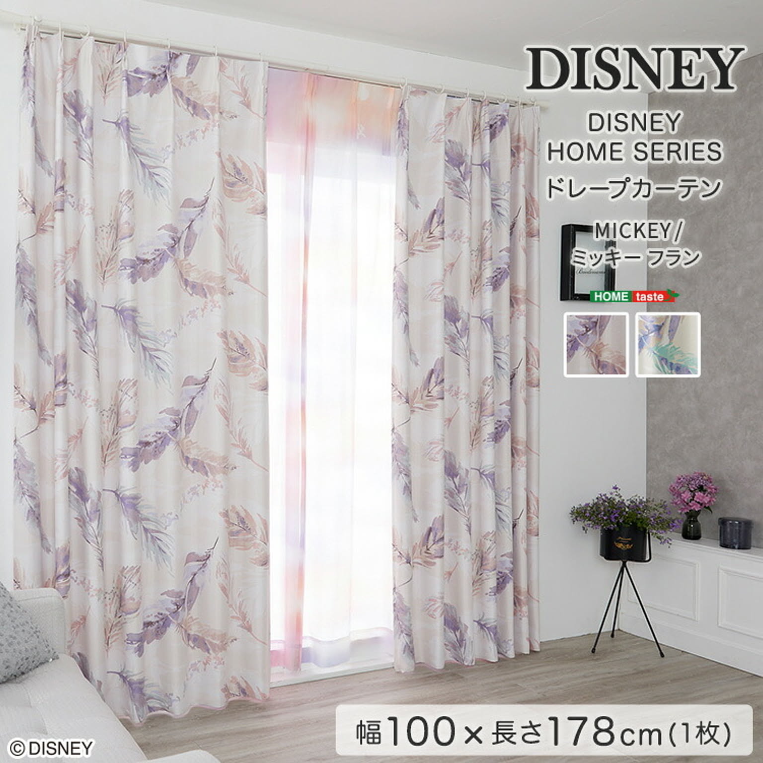 DISNEY ディズニー ドレープカーテン ミッキー フラン 100×178cm 1枚 遮光2級 日本製 洗える 形状記憶 MICKEY Fran