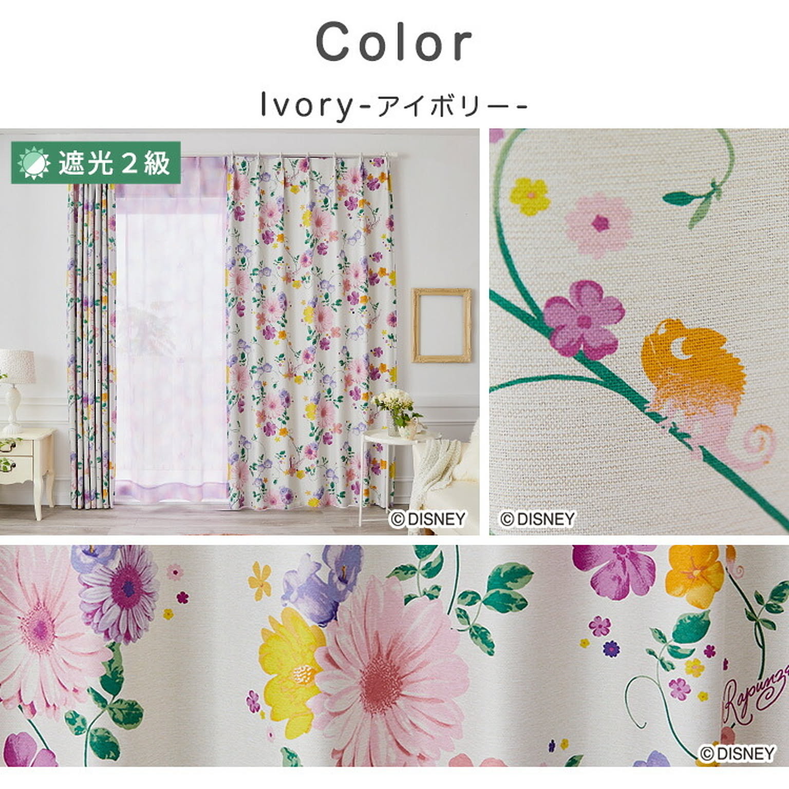 DISNEY ディズニー ドレープカーテン タングルド 100×200cm 1枚 ブルーグリーン 遮光1級 アイボリー 遮光2級 日本製 洗える 形状記憶 PRINCESS Tangled