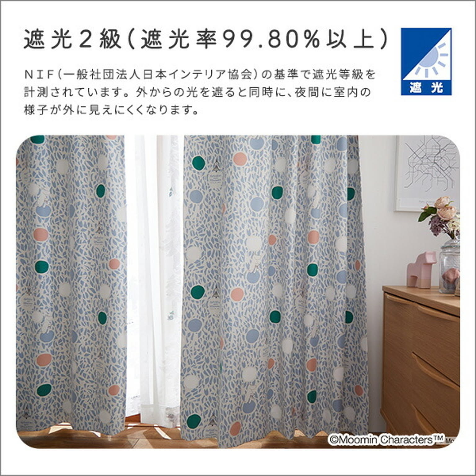 カーテン 遮光 ドレープ 100×178cm 1枚 MOOMIN ムーミン 北欧 おしゃれ 日本製 遮光カーテン 洗える ブルー グレー リビング 大人