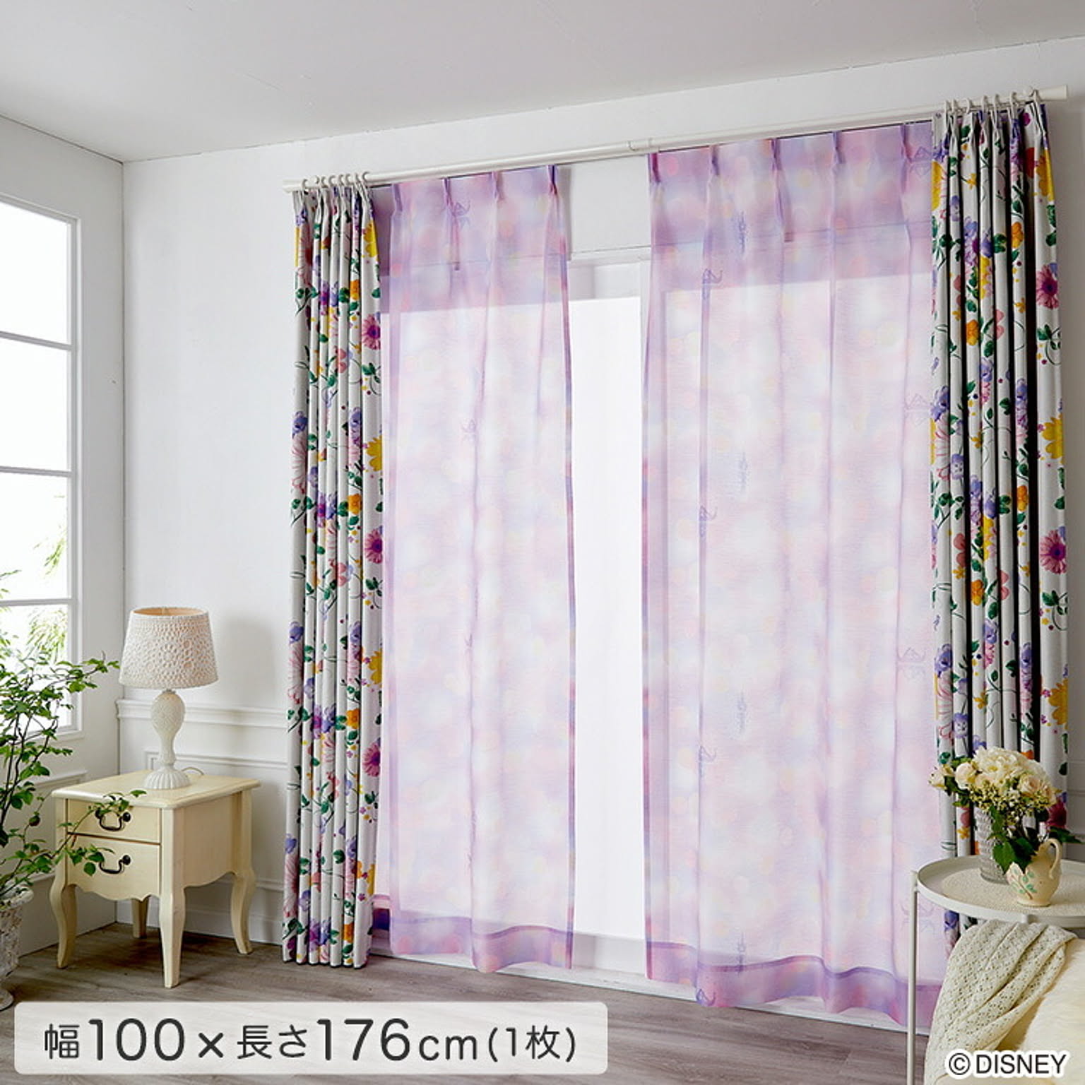 DISNEY ディズニー シアーカーテン プリンセス 100×176cm 1枚 日本製 洗える ボイルカーテン PRINCESS See the light voile シーザライトボイル