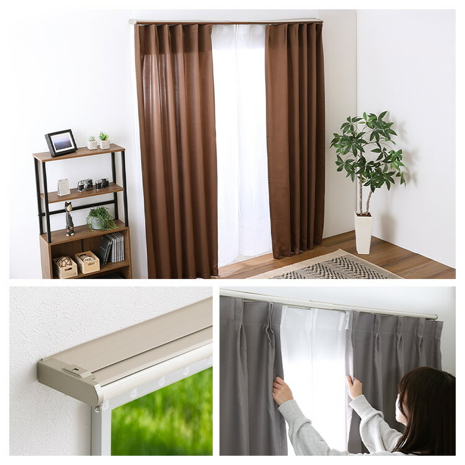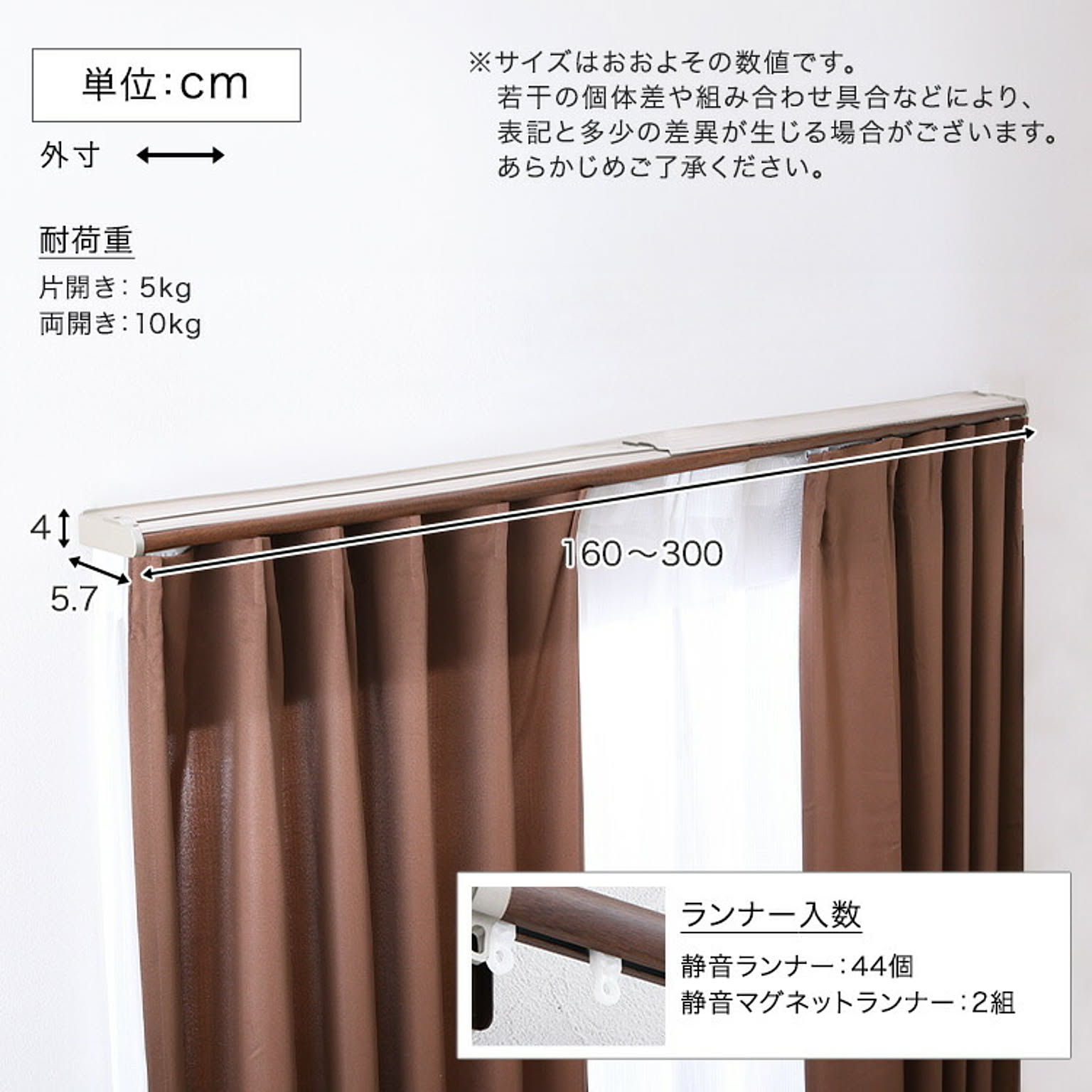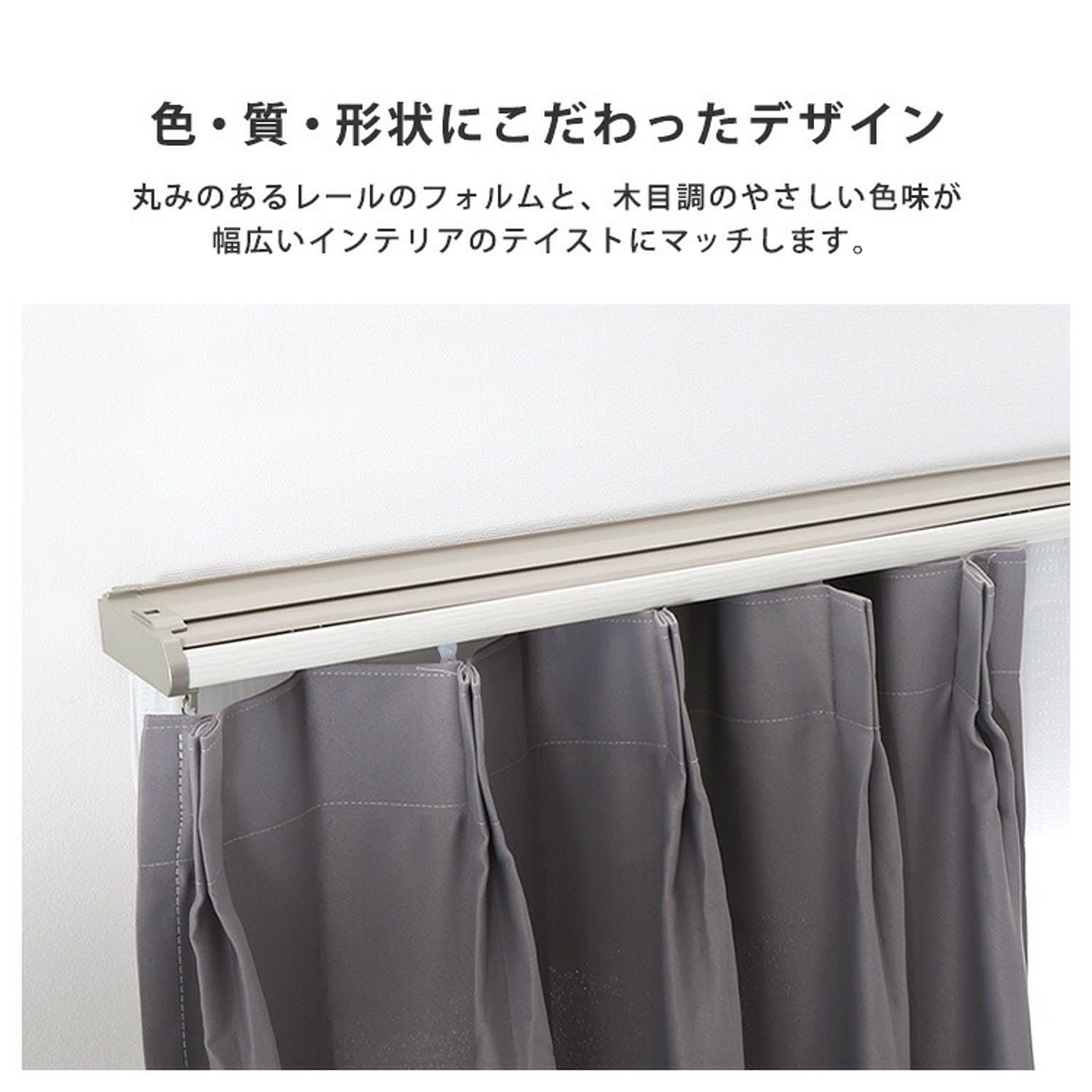 カーテンレール ダブル 伸縮機能カーテンレール 伸縮幅 1.3〜3m 木目 ホワイト ブラウン 日本製 マンション リビング 省エネ サイドキャップ カバートップ