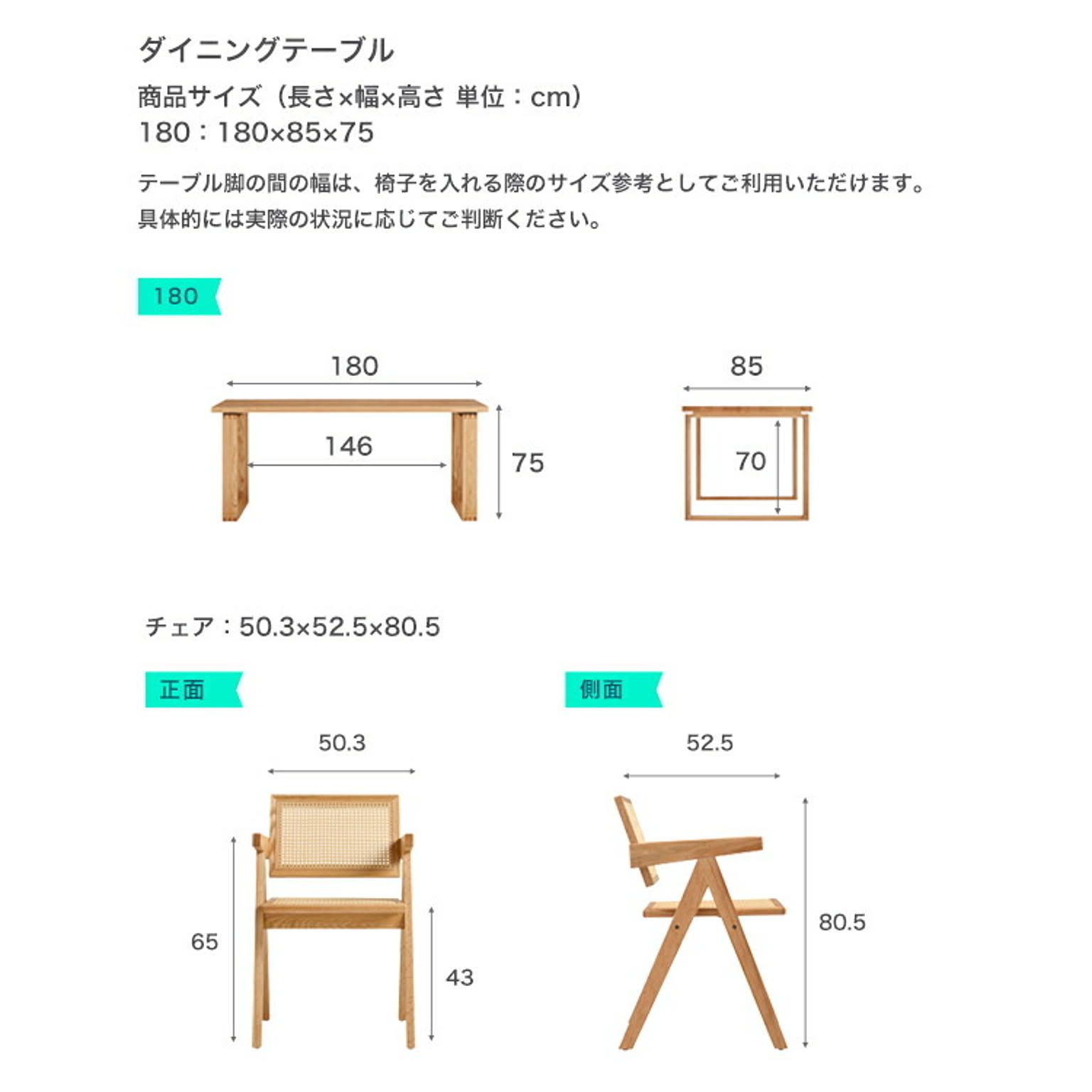 北米産オーク無垢材ダイニング5点セット 1.8m