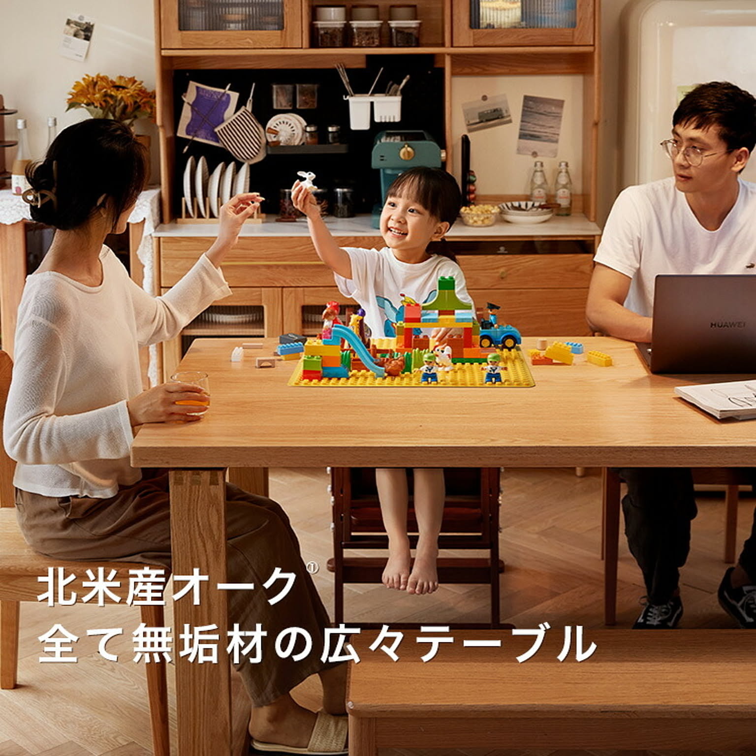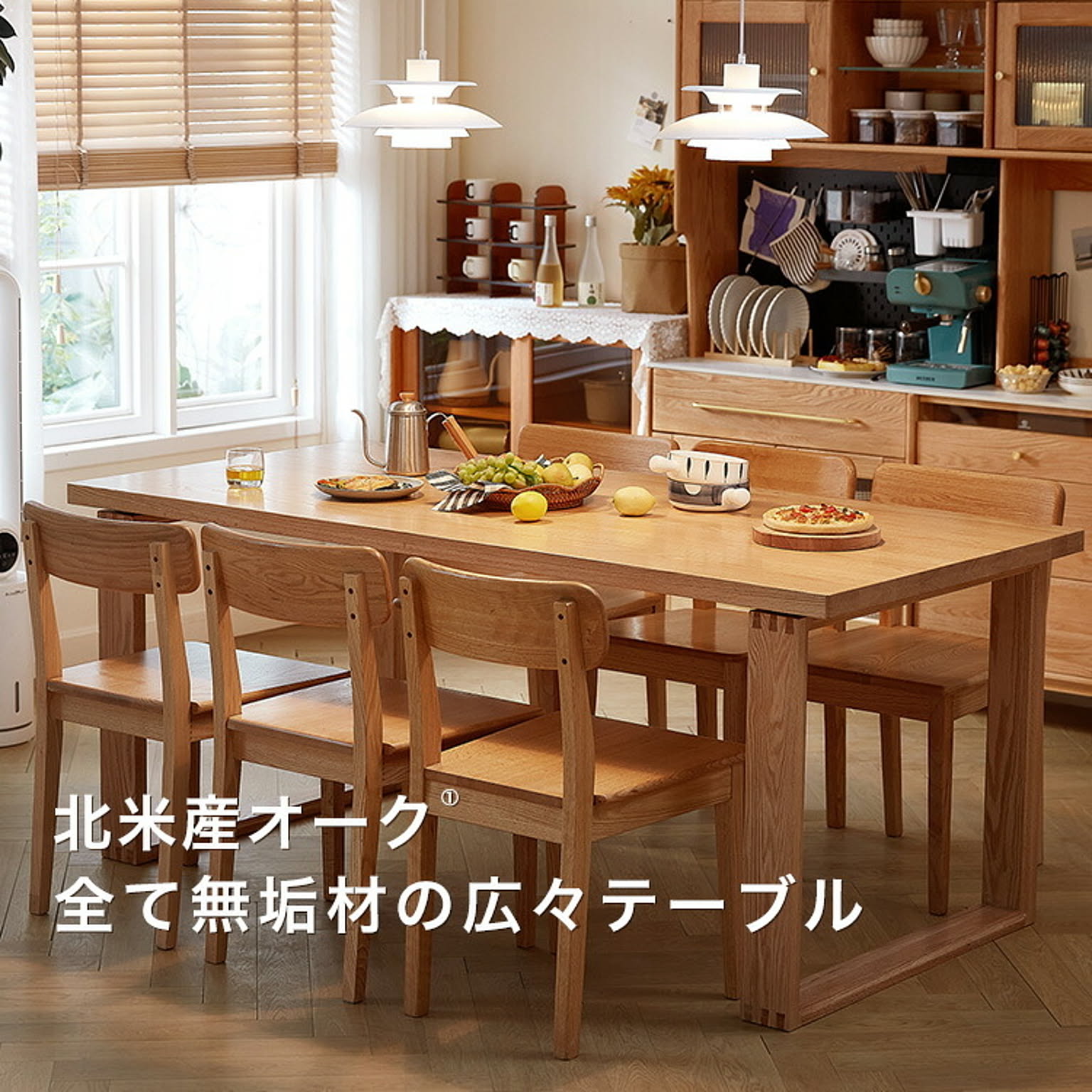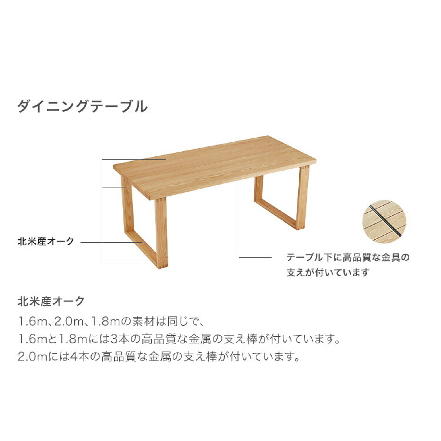 北米産オーク 無垢材 金属支え棒 高品質金具 ダイニングテーブル 1.8m ナチュラル シンプル 安定感 高耐久