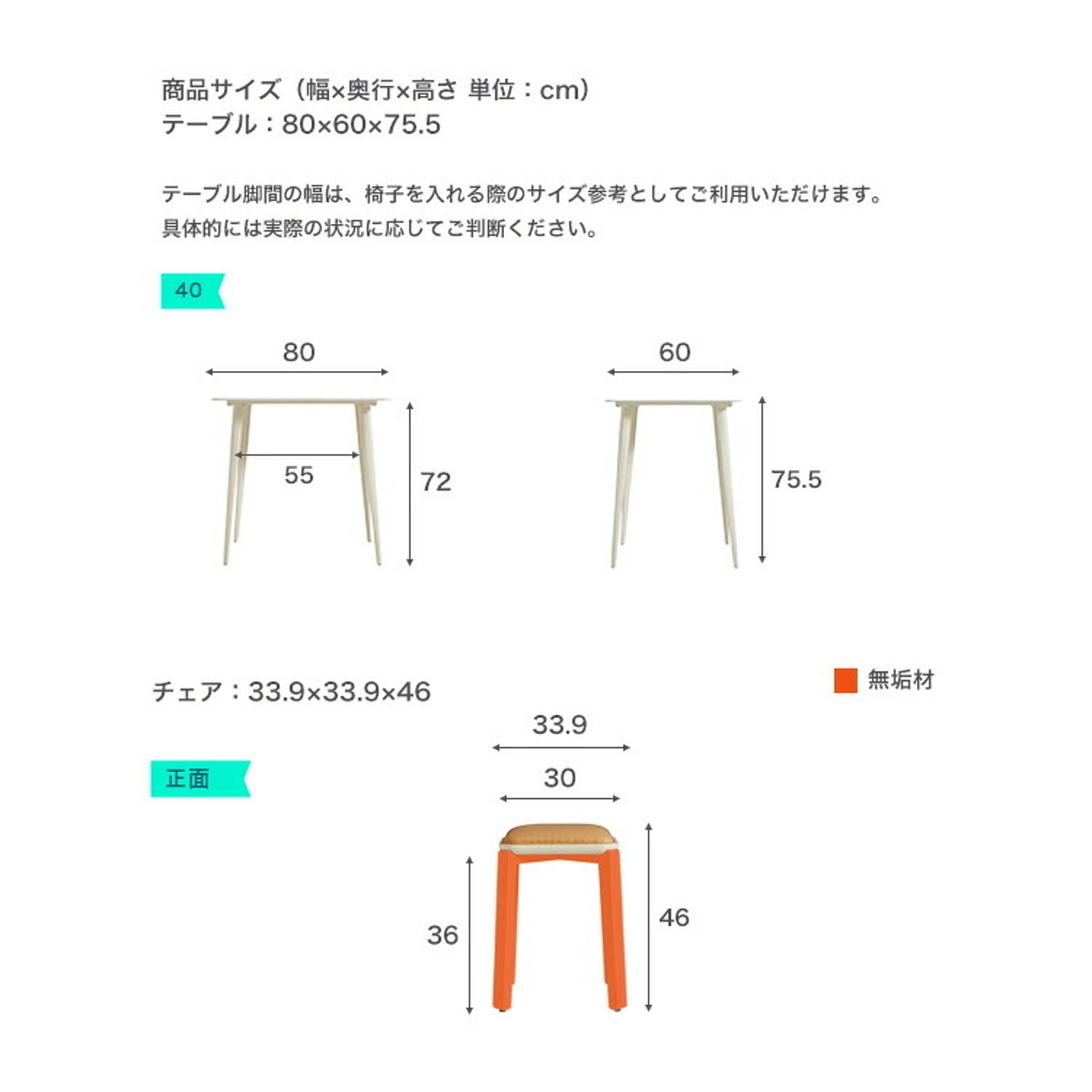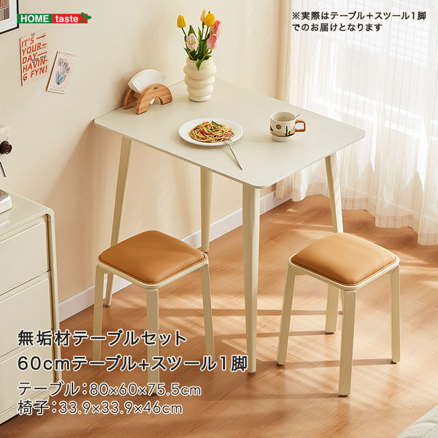 無垢材テーブル 60cm幅 テーブル スツール 天板 合皮クッション アイボリー ウレタンクッション お手入れ簡単 安定構造 コンパクト