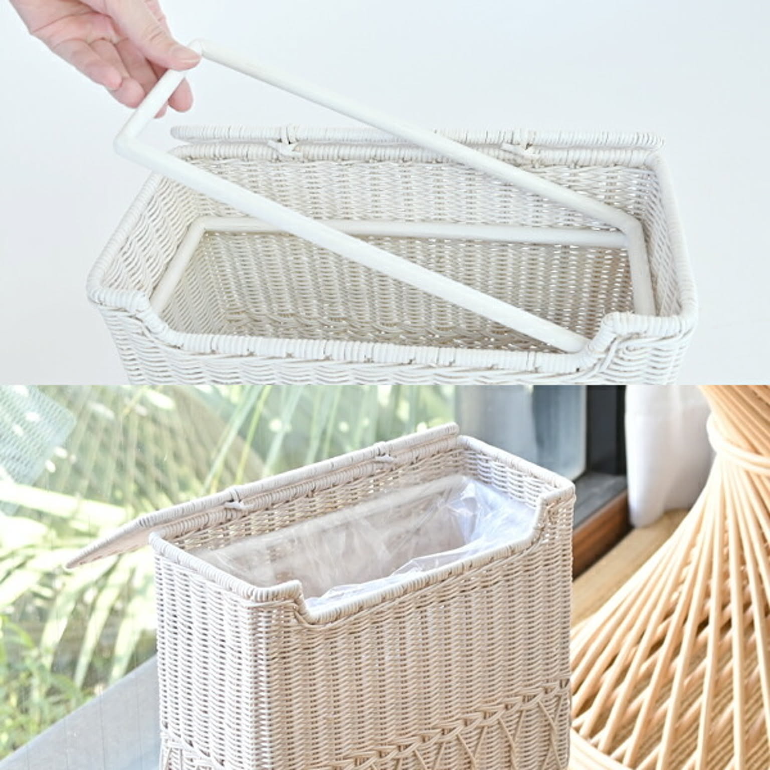 ホワイトラタン ダストボックス ゴミ箱 蓋付き ホワイト 白 ホワイトインテリア 韓国インテリア 雑貨 かわいい おとな可愛い おしゃれ