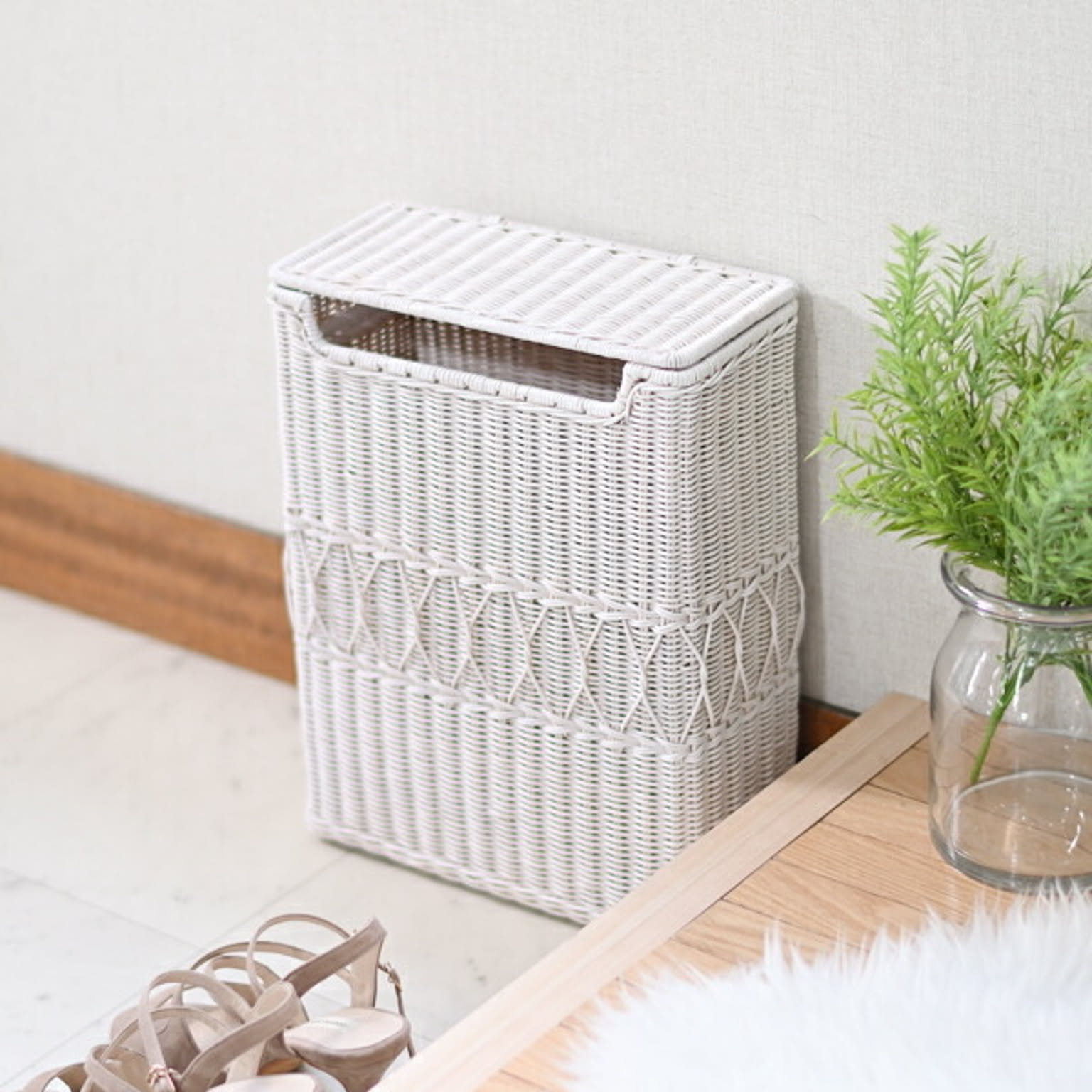 ホワイトラタン ダストボックス ホワイト 白 ホワイトインテリア 韓国インテリア 雑貨 かわいい おとな可愛い おしゃれ ゴミ箱 蓋付き スリム 家具 ゴミ箱 おしゃれなごみ箱【OG】