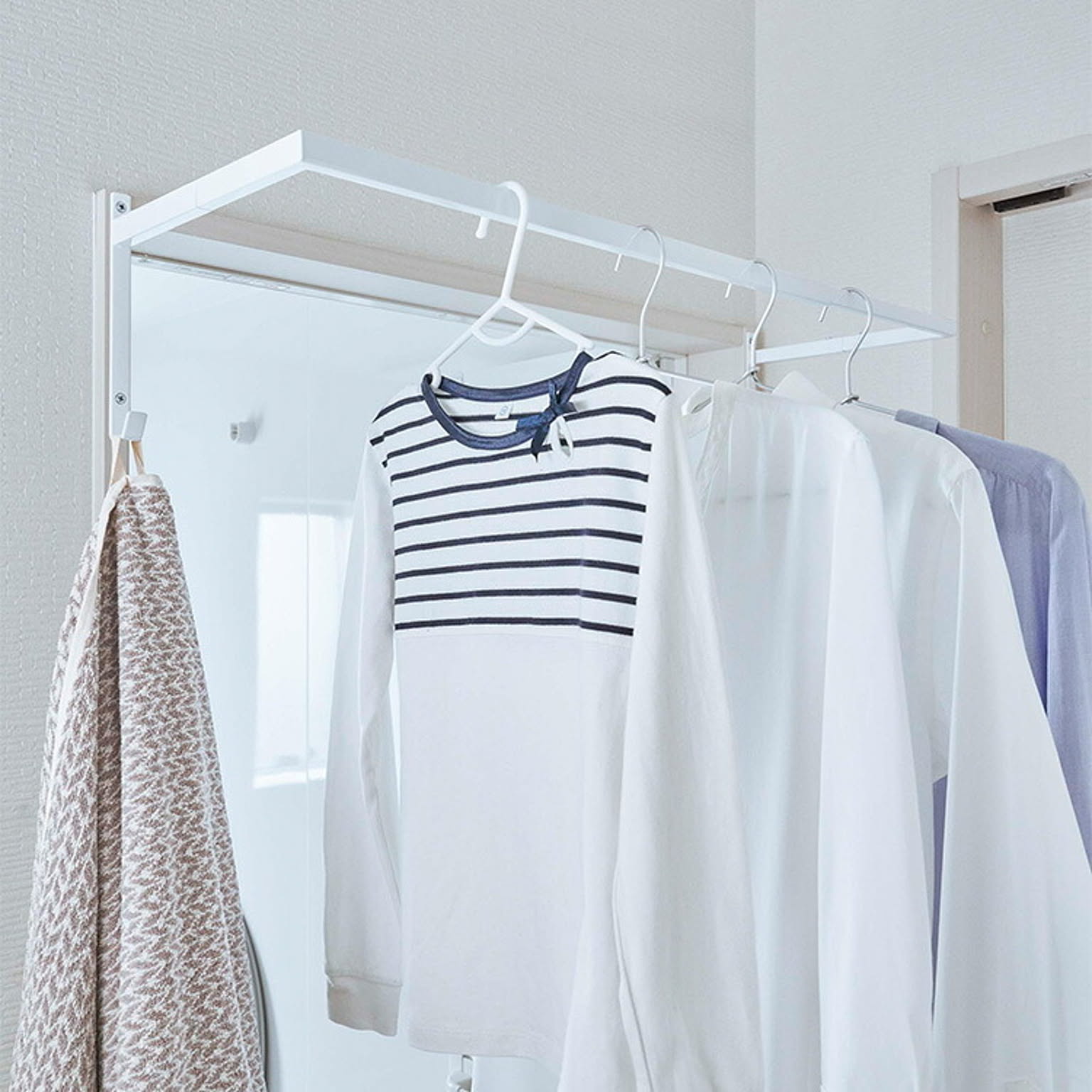 伸縮浴室扉前物干しハンガー タワー 伸縮 浴室 お風呂 風呂 バス ハンガー 扉前 物干し 物干しハンガー 収納ハンガー ランドリー ランドリールーム 壁 お部屋 フック 引っかけ収納 収納 壁付け