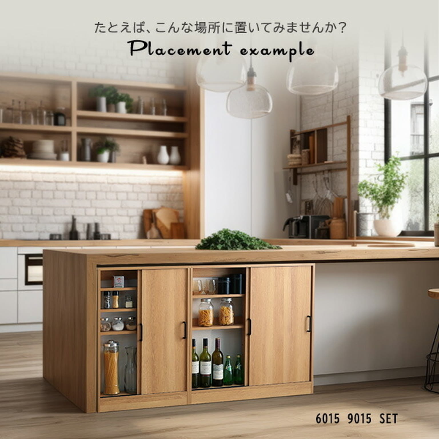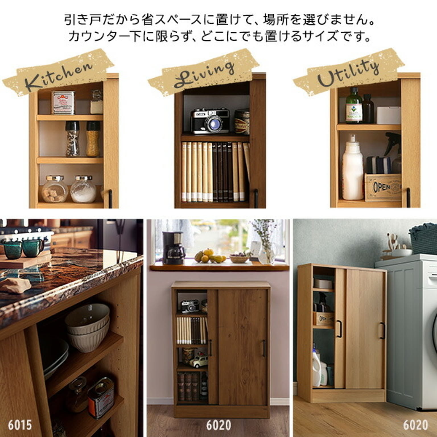 カウンター下収納 引き戸 薄型 幅60cm 奥行15cm キッチン カウンター下 収納 スリム 食器棚 ミニ食器棚 ロータイプ カウンター収納 薄型収納 ラック 台所 棚