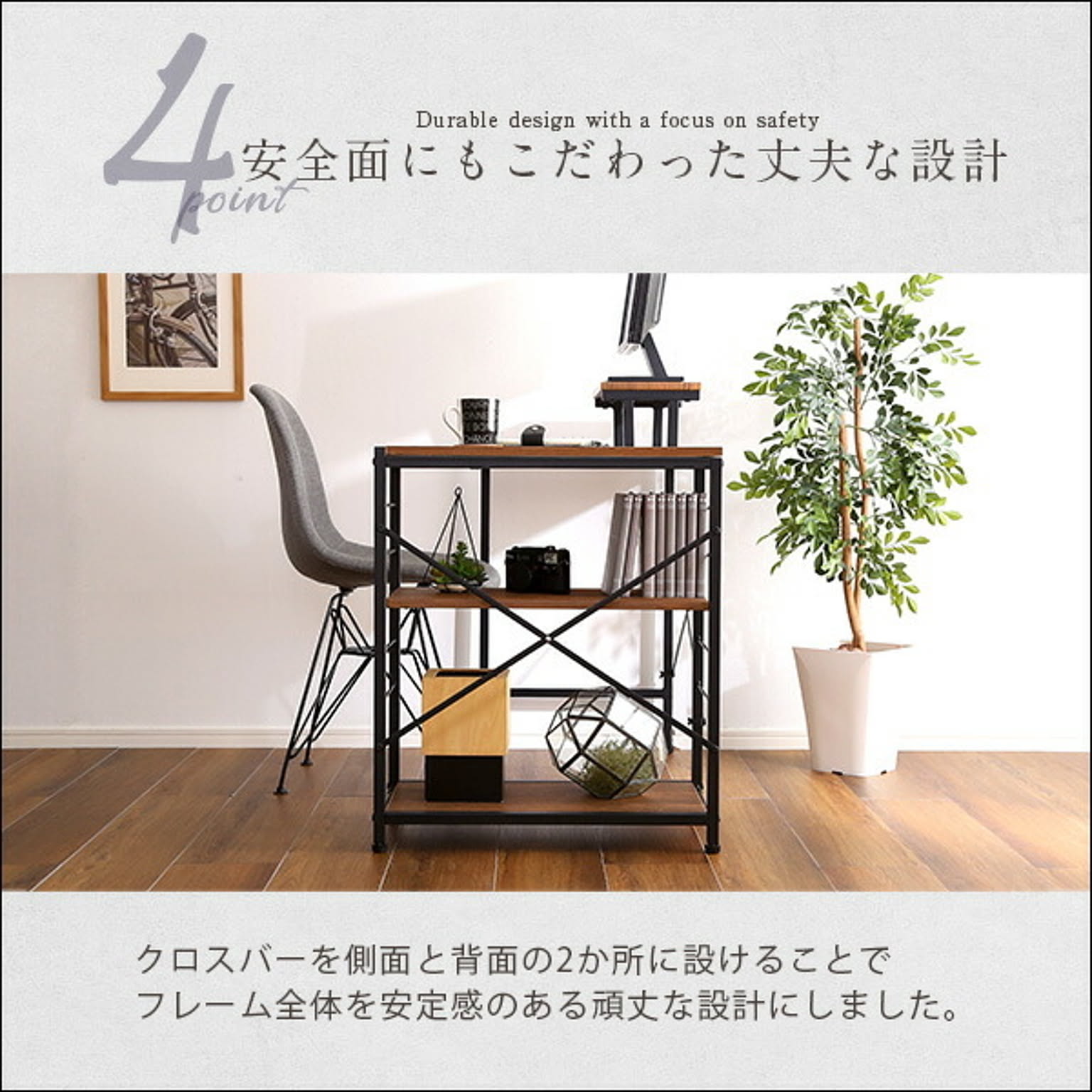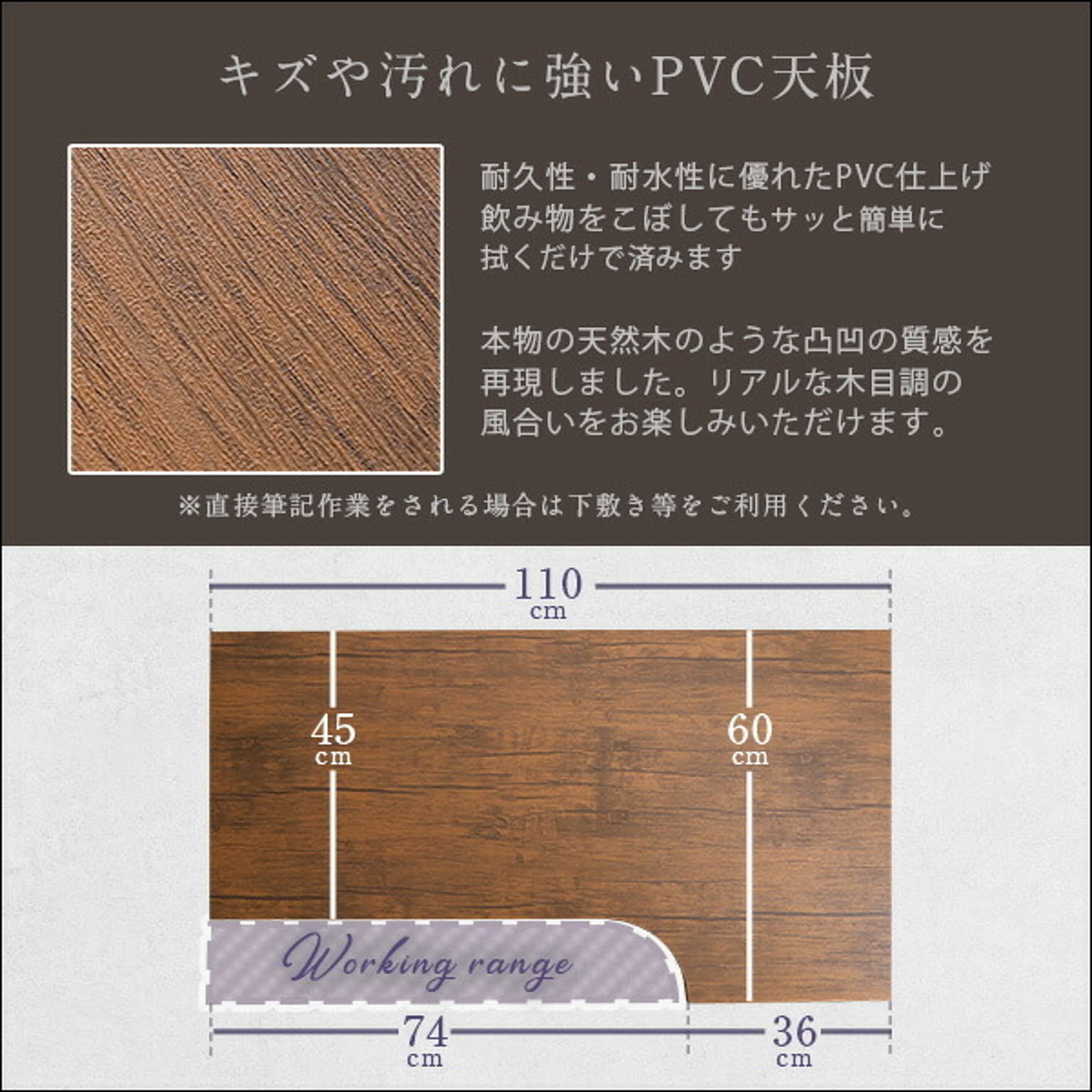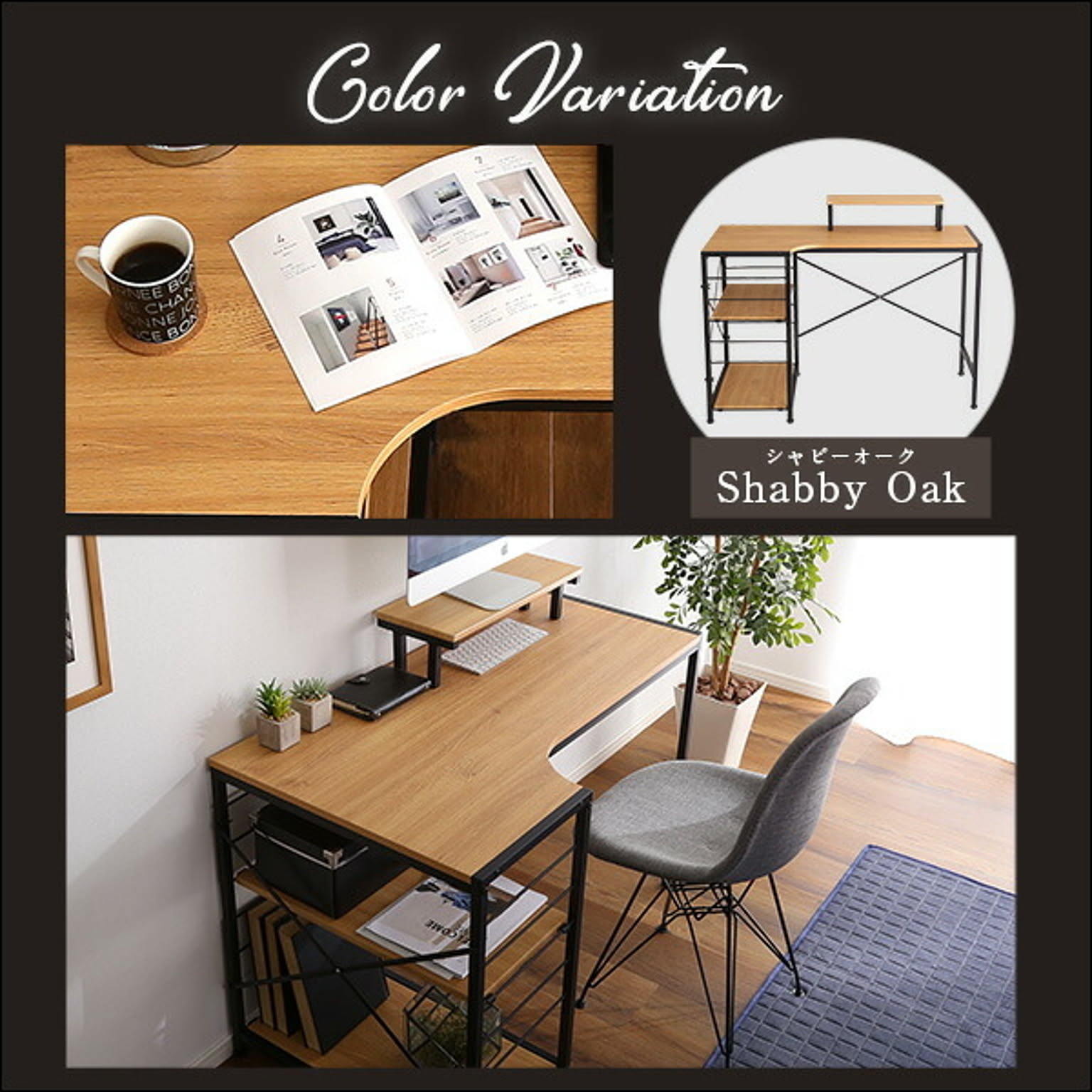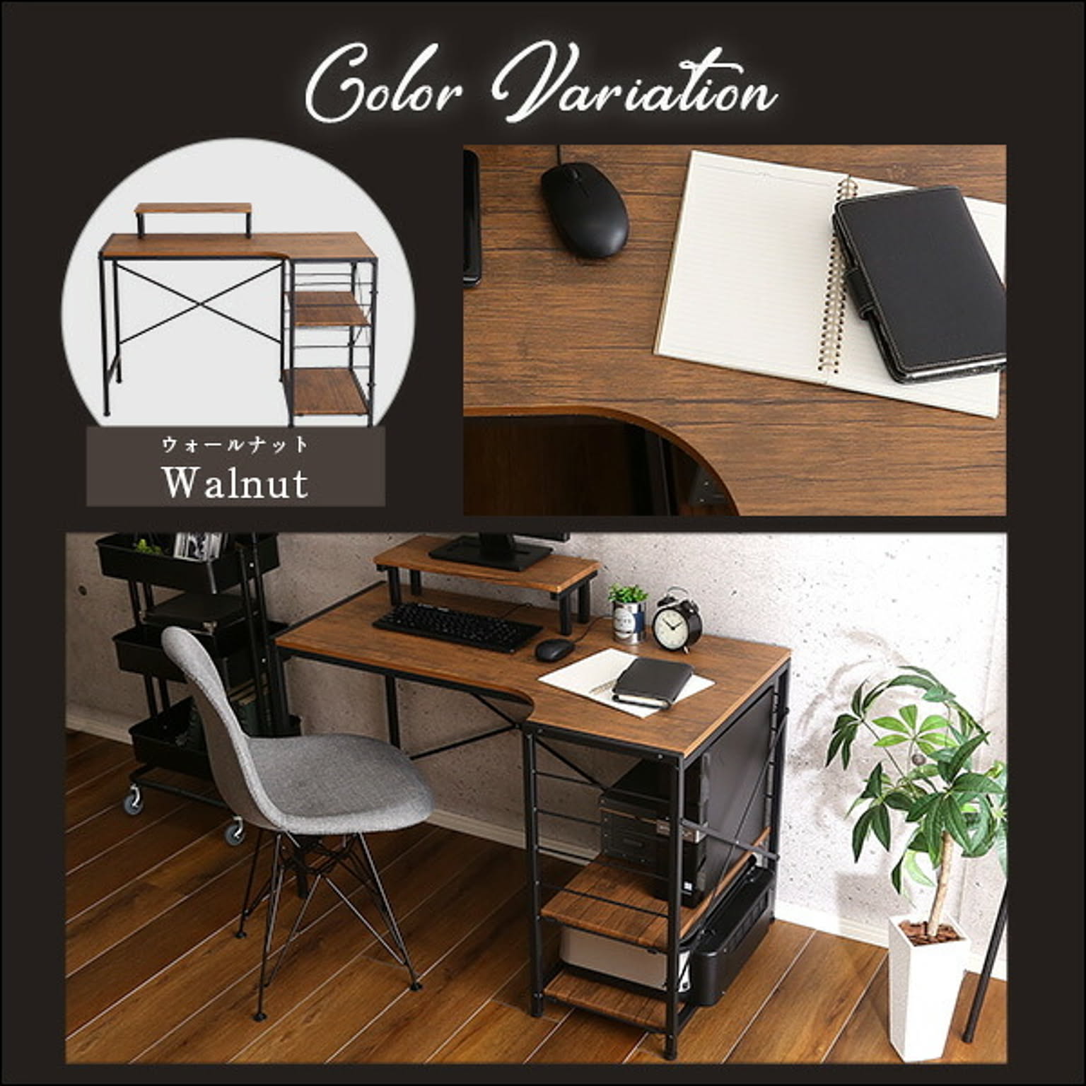 ヴィンテージ風 L字 パソコンデスク 110cm幅 奥行60cmデスク 収納付き ラック ワークテーブル 作業台 PCデスク テレワーク コンパクト 勉強机 収納棚 鉄脚 スチール脚 卓上棚付き
