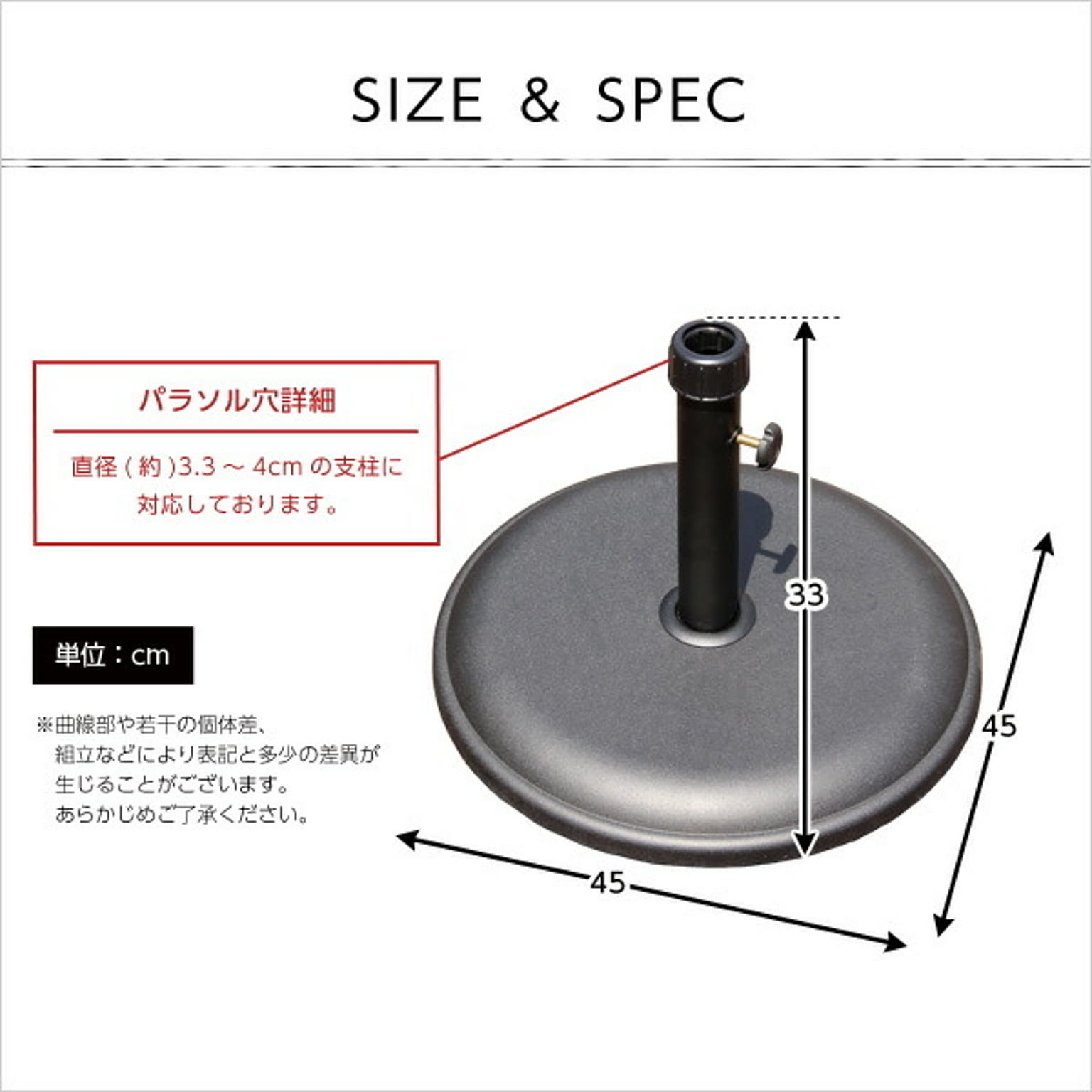 パラソル使用時の必需品【パラソルベース-15kg-】(パラソル ベース)パラソルベース パラソルスタンド 丸型 15kg ガーデン パラソル 円形 ガーデンファニチャー ベース 重り ベランダ テラス