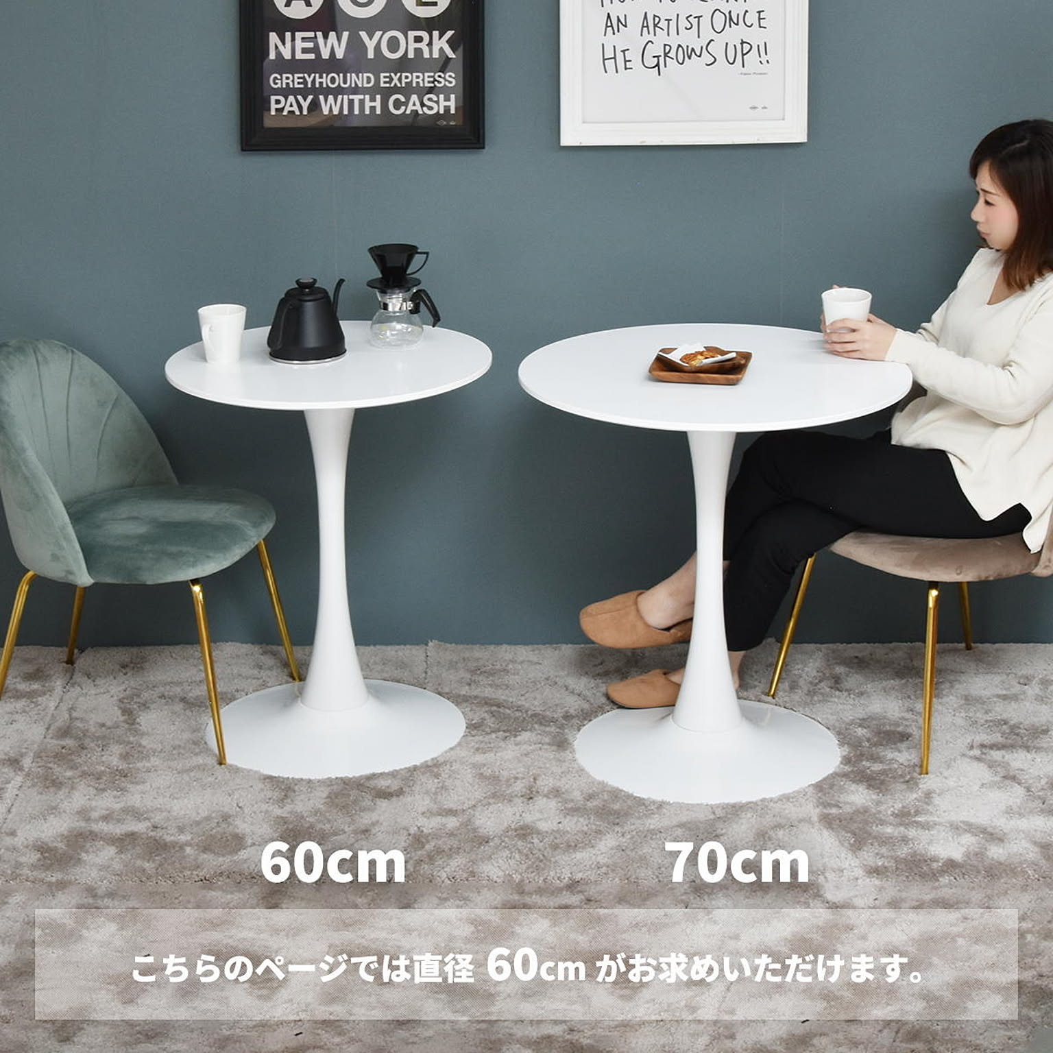 ラウンジ ダイニング リビング 机 テーブル カフェテーブル バーテーブル 丸テーブル スチール脚 シンプル 丸形 ラウンド カフェ おしゃれ バー ホワイト 白 モノトーン 60サイズ 60cm