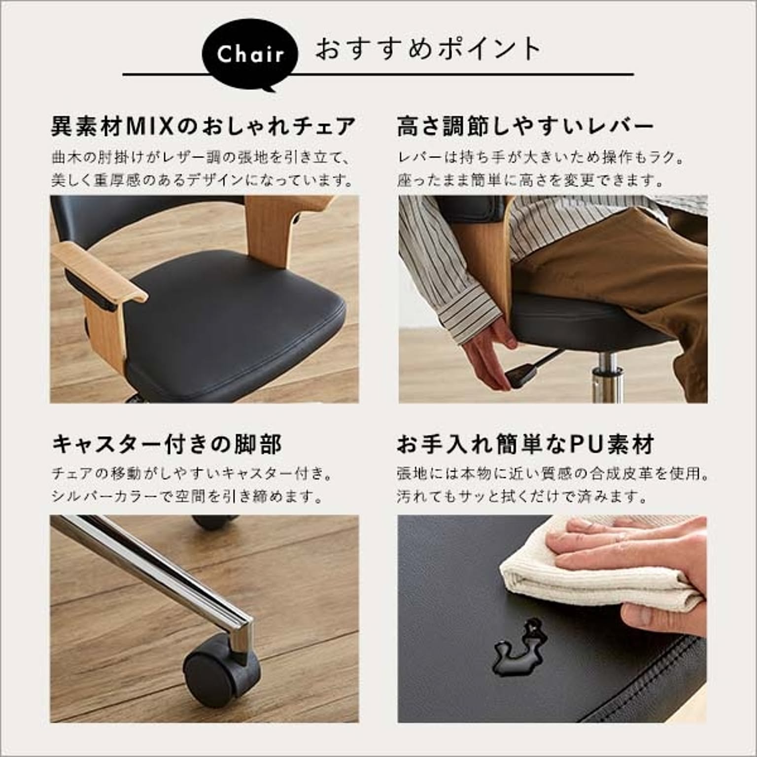 レザー調チェア PCチェア セット デスク 机 椅子 イス セット パソコンデスク オフィスチェア チェアセット オフィス ワークデスク デスクチェア 学習机 pcデスク