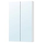 GODMORGON グモロン ミラーキャビネット 扉2枚付き, ミラーガラス,\n幅: 60 cm\n奥行き: 14 cm\n高さ: 96 cm\n壁面スペースを効率よく活用できる奥行きの浅いキャビネット。内側と外側の両方にミラーが付いているので、さまざまな角度から身だしなみをチェックできます。ご家庭で使用した場合に、材質または加工の不良に対して10年間の品質保証を行っています\n10年品質保証。詳しくは「品質保証のご案内」をご覧ください\n内側のバックパネルもミラーになっています\n扉は最後の数センチになると自動的に閉まります\n可動棚は強化ガラス製。熱や衝撃に強く、耐荷重性に優れています\nアクセサリーやメーク用品をすっきり収納できます\nミラーの裏面に飛散防止フィルムを貼ってあります。万が一割れても広範囲に破片が飛び散りません