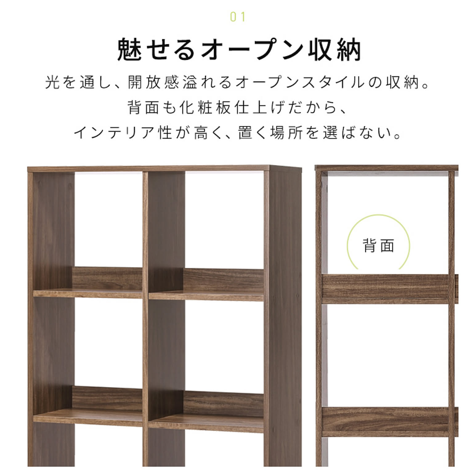 背面も化粧板仕上げだから、インテリア性が高く、置く場所を選ばない。