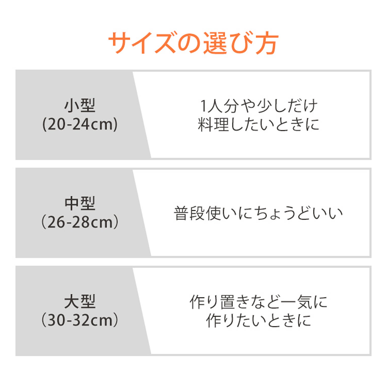 小型(20-24cm):1人分や少しだけ料理したいときに!